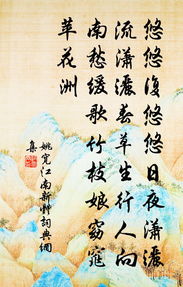 詩詞名句歷史字典書法欣賞書法字典國語詞典說文解字康熙字典古漢語字典標 題 作 者 詩 句 江南新體作者:姚寬 朝代:宋代江南新體原文悠悠復悠悠,日夜瀟灑流。瀟灑春草生,行人向南愁。緩歌竹枝娘,窈窕苹花洲。詩詞問答問:江南新體的作者是誰?答:姚寬問:江南新體寫於哪個朝代?答:宋代姚寬江南新體書法欣賞江南新體書法作品詩詞推薦歲莫二首蘇轍〔宋代〕嶺南萬里歸來客,潁上六年多病身。未死誰言猶有命,長閒豈復更尤人。眼看世事知難了,手注遺編近一新。點檢贈楚州郭使君白居易〔唐代〕淮水東南第一州,山圍雉堞月當樓。黃金印綬懸腰底,白雪歌詩落筆頭。笑看兒童騎竹馬,醉攜賓客上仙舟。當家用陳和你太博韻題江州高遠亭四首袁說友〔宋代〕潯陽名郡敢言支,最近江山左右之。松蓋前傾渾似故,詩兵捷出愈稱奇。案頭朱墨無多事,亭面東風足四時。相與西湖樂柯氏〔宋代〕雪花滿衣香欲融,王孫白馬金蟠胸。山南山北晚霞紅,須臾直下明珠宮。一樣越羅天水碧,亂插寶花長一尺。王孫送徐仲洪尉南安八首彭龜年〔宋代〕血氣誰無未免爭,腰牛公牘角蝸情。半非半是先須識,但要吾心似水平。秋夕不寐二首楊萬里〔宋代〕每到炎天只願秋,如何秋到卻成愁。官居也有寒蛩語,不似山間聽得幽。呈莫信州障二首趙蕃〔宋代〕公為州牧我州民,敢敘當年半面親。故喜來歸逢稔歲,況於游倦得閒身。無功良醞不可戀,仲叔豬肝猶累人。最是訪曲江胡處士劉得仁〔唐代〕何況歸山後,而今已似仙。卜居天苑畔,閒步禁樓前。落日明沙岸,微風上紙鳶。靜還林石下,坐讀養生篇。送陸懷祖之官丹陽蘇泂〔宋代〕放翁去作水中仙,有子生平在眼前。鍾愛甚於賢伯仲,傳家仍自好詩篇。肯為筦庫官無小,會復公侯澤更綿。我亦春日田園雜興二首何鳴鳳〔宋代〕東風轉矚又東阜,久賦將蕪力未薅。古木陰深巢燕弱,荒陂水淺怒蛙豪。兒廢方擬半栽秫,身隱尚嫌全種桃。何許絕句黃庭堅〔宋代〕春風一曲花十八,拼得百醉玉東西。露葉煙叢見紅藥,猶似舞餘和汗啼。雨過黃庚〔宋代〕雨過山頭雲氣濕,潮生渡口岸痕深。一聲短笛斜陽外,知有漁舟泊柳陰。贈新昌王藍田三子姚勉〔宋代〕太原曾有三珠樹,花萼一團光彩聚。清晨肯挾三鳳來,真是王家兒可譽。乃翁喔詩松竹陰,三兒吾伊玉應金。不須瑤台汪遵〔唐代〕仙夢香魂不久留,滿川雲雨滿宮愁。直須待得荊王死,始向瑤台一處游。夏夜姚合〔唐代〕閒齋深夜靜,獨坐又閒行。密樹月籠影,疏籬水隔聲。斷猿時叫谷,棲鳥每搖檉。寂寞求名士,誰知此夕情。題軫師房二首張耒〔宋代〕銅瓶布衲出塵埃,疏瘦風標日一齋。門徑蕭然更無事,出螢飛鴿及時來。陳宣卿為予作雕圖陳造〔宋代〕吾宗灑畫墨,似我詩得趣。未至心手忘,敢議江山助。東絹十幅圍,中有千尺樹。窮冬萬蟲蟄,拆地雙虬怒。仿佛酬周開祖示長調見索詩集張先〔宋代〕辯玉當看破石詩,泥沙有實即山輝。都廛往往無真璞,誤使人憑鼠臘歸。求黃家紫竹杖蘇轍〔宋代〕曾家紫竹君家種,曾園竹與荒藤共。藤驕竹瘁如畏人,不似君家竹森聳。我來買宅非為宅,愛此風梢時一弄。磨刀游龍門詩十二首石樓韓維〔宋代〕索回陟雲根,結構出石面。河傾八灘惡,野豁兩崖斷。曠然懷抱開,舉酒臨壯觀。名句推薦仁義禮善之於人也,辟之若貨財粟米之於家也。荀子《荀子·大略》 斜風細雨作春寒。對尊前。朱淑真《江城子·賞春》 拼將一死酬知己,致令千秋仰義名。羅貫中《三國演義·第五十回》 秋空明月懸,光彩露沾濕。孟浩然《秋宵月下有懷》 寒隨一夜去,春逐五更來。史青《應詔賦得除夜》 人有賢愚,任人勿求過己。來俊臣《羅織經·固榮卷第六》 永豐西角荒園裡,盡日無人屬阿誰。白居易《楊柳枝二首》 春風得意馬蹄疾,一日看盡長安花。孟郊《登科後》 權者,人莫離也。來俊臣《羅織經·控權卷第四》 胡風吹代馬,北擁魯陽關。李白《豫章行》