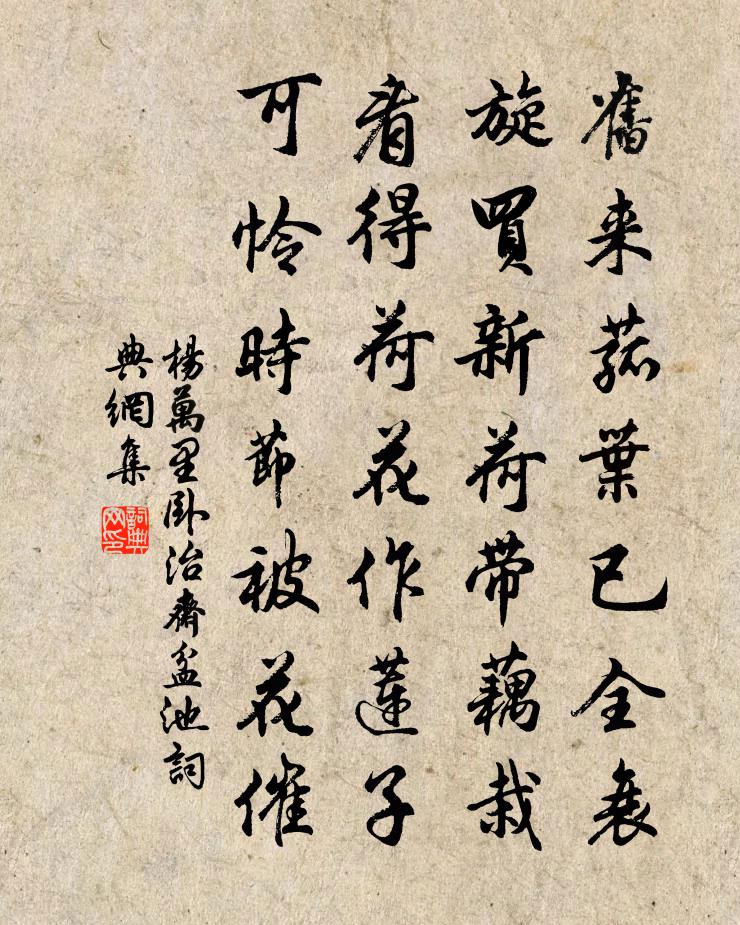 舊來菰葉已全衰,旋買新荷帶藕栽。看得荷花作蓮子,可憐時節被花催。