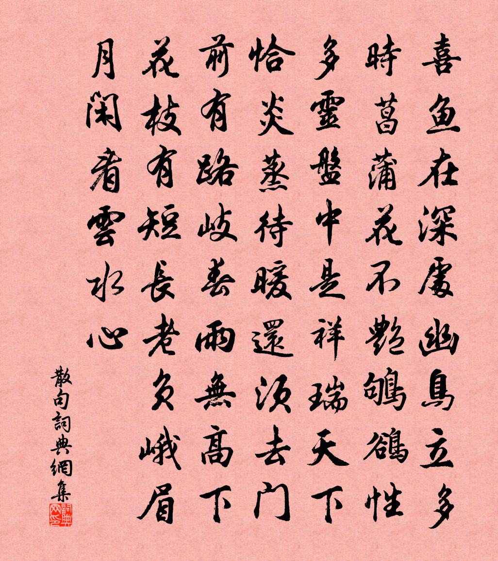 喜魚在深處,幽鳥立多時。(《馬侍中池亭》,《紀事》)