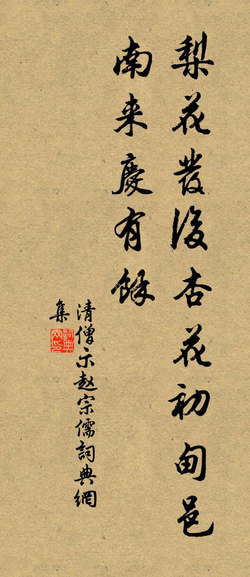 詩詞名句歷史字典書法欣賞書法字典國語詞典說文解字康熙字典古漢語字典標 題 作 者 詩 句 清僧示趙宗儒作者:佚名 朝代:唐代清僧示趙宗儒原文梨花發後杏花初,甸邑南來慶有餘。詩詞問答問:清僧示趙宗儒的作者是誰?答:佚名問:清僧示趙宗儒寫於哪個朝代?答:唐代問:佚名的名句有哪些?答:佚名名句大全佚名清僧示趙宗儒書法欣賞清僧示趙宗儒書法作品詩詞推薦歲寒緩步錢時〔宋代〕千葉梅花雪滿堤,都將春付海棠枝。幽禽飛上欄乾立,此意人間幾個知。無題陸游〔宋代〕金鞭朱彈憶春遊,萬里橋東罨畫樓。夢倩曉風吹不去,書憑春雁寄無由。鏡中顏鬢今如此,幕下朋儔好在不?篋有又次韻答克修鄧深〔宋代〕前回藜杖繞芳郊,底處梅花出好梢。野彴低楓盈尺水,竹籬深護數家茅。春風桃李成生客,臘雪松筠是故交。剩欲南鄉子趙師俠〔宋代〕元夜景尤殊。萬斛金蓮照九衢。錘拍豉湯都賣得,爭如。甘露杯中萬顆珠。應是著功夫。腦麝濃薰費小廚。不比七殘年陸游〔宋代〕殘年迫鍾漏,病骨怯風霜。投幘早當去,強顏徒自傷。文符紛似雨,訟訴進如牆。笑殺滄浪客,微官有許忙!同王十三維哭殷遙儲光羲〔唐代〕生理無不盡,念君在中年。游道雖未深,舉世莫能賢。筮仕苦貧賤,為客少田園。膏腴不可求,乃在許西偏。四鄰留別周參政詩二首趙蕃〔宋代〕故意還叨累十觴,諸家所歷信逾常。黃塵倦馬久非地,野水白鷗終是鄉。勾漏不惟兼採藥,長沙更欲訪沉湘。憑虛再至洛中寒食梅堯臣〔宋代〕西洛逢寒食,依依似昔年。千門方禁火,九野自生煙。飄泊梨花雨,追隨杏葉韉。遊人莫惜醉,風景滿伊川。武陵春王吉昌〔元代〕心樂澄澄時靜應,陰里媾陽精。颯颯和風海底生。六腑九宮盈。一氣混挑罡斗轉,天谷至神迎。慮念俱無淨德成。暑夕泛次王令君韻史彌寧〔宋代〕趁涼延客早,待月放船遲。河朔一尊酒,湘乾六月時。鶯喉翻白佇,兔穎掃烏絲。羨殺王明府,長城五字詩。十一月十五日忽苦舌瘍甚不能飲食憊臥一榻戲岳珂〔宋代〕君不見東坡昔步虎溪月,夜聽溪聲廣長舌。溪聲不斷流不枯,此段磊落真丈夫。一生吾伊換喑嗚,嗟哉三寸予豈無秋夜寄遠張耒〔宋代〕秋晚蕭條風露清,星河耿耿漏丁丁。只應新月頻相見,長向玉樓東畔生。草亭遠望鄭剛中〔宋代〕村舍無樓可望遠,茅亭遠望似登樓。飽看聚散雲無住,最愛縈迴水自由。詩思已隨芳草動,春寒少為好山留。誰將答羅天驥劉克莊〔宋代〕乃祖曾吞鳳,郎君豈後身。頗聞精選理,何必慕唐人。玉麈王夷甫,烏絛呂洞賓。客談溪墅勝,終擬卜比鄰。贈冰月相士陳杰〔宋代〕十年已往如冰冷,千載方來似月明。唐許何嘗關世事,人間正有一書生。送友人下第歸揚州覲省劉得仁〔唐代〕新柳間花垂,東西京路岐。園林知自到,寢食計相思。雨斷淮山出,帆揚楚樹移。晨昏心已泰,蟬發是回時。閒居自遣樂雷發〔宋代〕雨積桑樞長昔邪,誰能載酒訪揚家。漢庭用少臣今老,魯俗皆冠我獨髽。憂國苦無蠲忿草,看書喜對決明花。衰頹乞如願曾豐〔宋代〕曰來紫姑,讖甘有兮松醽,糅以兮膠餳。紫姑來下肸余馨。讖辛有兮椒醁,糅以兮蔥{鞠革換飠},紫姑來下肸余偈頌二十三首釋雲岫〔宋代〕夜半金烏出,寥寥照寰宇。兩眼對青山,通身淚如雨。題虎丘次蒲章二公韻王仲敏〔宋代〕松陰嵐影翠迴環,盡在牆垣繚繞間。舟楫更無通別浦,煙霞曾不接他山。詩亡石在雲徒恨,劍去池荒水自閒。偷得名句推薦昔去雪如花,今來花似雪。范雲《別詩》 言無二貴,法不兩適。韓非及後人《韓非子·問辯》 高築牆,廣積糧張廷玉《明史·列傳·卷二十四》 千形萬象竟還空,映水藏山片復重。來鵠《雲》 春風得意馬蹄疾,一日看盡長安花。孟郊《登科後》 北窗高臥,莫教啼鳥驚著。辛棄疾《念奴嬌·賦雨岩》 事事要留個有餘不盡的意思,便造物不能忌我,鬼神不能損我。洪應明《菜根譚·概論》 日長唯鳥雀,春遠獨柴荊。杜甫《春遠 / 春運》 撩亂邊愁聽不盡,高高秋月照長城。王昌齡《從軍行七首》 辜負我,悔憐君,告天天不聞。牛嶠《更漏子·春夜闌》