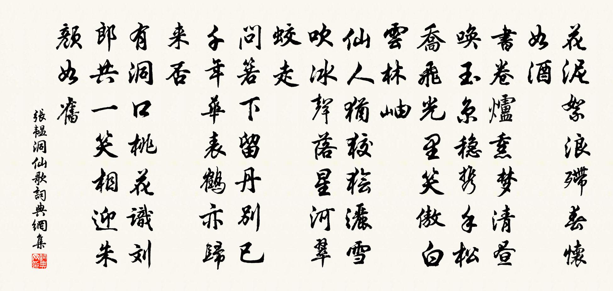 詩詞名句歷史字典書法欣賞書法字典國語詞典說文解字康熙字典古漢語字典標 題 作 者 詩 句 洞仙歌作者:張韞 朝代:宋代洞仙歌原文花泥絮浪,殢春懷如酒。書卷爐熏夢清晝。喚玉京穩攜手鬆喬,飛光里,笑傲白雲林岫。仙人猶狡獪,灑雪吹冰,聲落星河翠蛟走。問箬下留丹,別已千年,華表鶴、亦歸來否。有洞口、桃花識劉郎,共一笑相迎,朱顏如舊。詩詞問答問:洞仙歌的作者是誰?答:張韞問:洞仙歌寫於哪個朝代?答:宋代問:洞仙歌是什麼體裁?答:詞張韞洞仙歌書法欣賞洞仙歌書法作品詩詞推薦次韻馬莊父問行期之什趙蕃〔宋代〕日日言歸去,年年事遠遊。世態甘若醴,我曹和不流。殷勤枉詩問,準擬系帆留。文宣王及其弟子贊宋高宗〔宋代〕遐想子期,挾策聖帷。涉道是嗜,惟士可縻。在德既賢,在名乃垂。洋洋之風,逮今四馳。贈別晏成績懋父太祝王令〔宋代〕懋甫相門兒,家世踏纓紞。早年綴官簿,青衫蔚於菼。本宜多驕矜,不謂銳意敢。意貪英雄交,一手欲四攬。偶來丙申泊東流縣黃庭堅〔宋代〕前日發大雷,真成料虎頭。今日伐鼓出,棹歌傲陽侯。滄江百折來,及此始東流。東流會賓客,建德椎羊牛。野語旅舍劉應時〔宋代〕草市欲黃昏,吾行恰到門。僕夫思憩息,燈火喜溫存。一夜催花雨,數家臨水村。征途雖得句,默坐與誰論。金剛隨機無盡頌究竟無我分第十七釋印肅〔宋代〕承佛記堪任,情忘境自沉。解吹無孔笛,彈得沒弦琴。寄贈藍田韋少府先輩鄭谷〔唐代〕王畿第一縣,縣尉是詞人。館殿非初意,圖書是舊貧。斫冰泉竇響,賽雪廟松春。自此升通籍,清華日近身。聚蚊梅堯臣〔宋代〕日落月復昏,飛蚊稍離隙。聚空雷殷殷,舞庭煙冪冪。蛛網徒爾施,螗斧詎能磔。猛蠍亦助惡,腹毒將肆螫。不能頌古五十五首釋紹曇〔宋代〕濁酒松醪吃兩鍾,醉拖長袖舞春風。天崩地裂誰能管,幾見落花堆亂紅。桂椿堂袁說友〔宋代〕欈李於門伯仲佳,聲名籍籍到天涯。一經早已傳韋氏,五桂今重說竇家。滿眼衣冠真盛事,幾年棠棣看聯華。蘭台與至能夜話方岳〔宋代〕吾生如征鴻,歲月如脫兔。江上煙雨寒。花老春已暮。肯辭白髮親,我蓋坐貧故。文章未得力,儒冠豈余誤。至能望江南/憶江南康與之〔宋代〕重陽日,四面雨垂垂。戲馬台前泥拍肚,龍山路上水平臍。淹浸倒東籬。茱萸胖, * 濕齏齏。落帽孟嘉尋箬笠,宦轍曾由基〔宋代〕宦轍馳驅塵滿襟,解鞍呼酒小登臨。天垂碧處秋江淨,山弄紫時西日沉。韓記合還渠老手,王詩似不要新吟。撐天滿江紅·代王夫人作文天祥〔宋代〕試問琵琶,胡沙外、怎生風色。最苦是、姚黃一朵,移根仙闕。王母歡闌瓊宴罷,仙人淚滿金盤側。聽行宮、半夜太常樂章三十首其二皇帝行奏隆安之曲楊億〔宋代〕祼鬯溥將,賓屍在位。玄德升聞,孝思光被。公卿庶政,傳御師氏。至誠感神,福祿來暨。慧心近空心王梵志〔唐代〕慧心近空心,非關髑髏[1]孔。對面說不識,饒你母信董。答趙景猷曹攄〔魏晉〕古人罔極。今我不爽。願言所欽。唯子靡兩。情存口詠。心憶目想。形游神還。身去意往。佇立不見。瞻望佛仿。尋補闕舊宅王建〔唐代〕知得清名二十年,登山上坂乞新篇。除書近拜侍臣去,空院鳥啼風竹前。家園賞花陸游〔宋代〕白首扁舟返舊邦,逢春直欲倒千缸。紅雲夾路薔薇障,翠羽成層薜荔幢。鶯語枝頭常盡日,蝶迷棄底不成雙。閒人皮襲美見留小宴次韻羊昭業〔唐代〕澤國春來少遇晴,有花開日且飛觥。王戎似電休推病,周顗才醒眾卻驚。芳景漸濃偏屬酒,暖風初暢欲調鶯。知君名句推薦淒涼寶劍篇,羈泊欲窮年。李商隱《風雨》 記得去年今夕,釃酒溪亭,淡月雲來去。文徵明《念奴嬌·中秋對月》 愁顏與衰鬢,明日又逢春。戴叔倫《除夜宿石頭驛》 昨夜更闌酒醒,春愁過卻病。李璟《應天長·一鉤初月臨妝鏡》 彩線輕纏紅玉臂,小符斜掛綠雲鬟。蘇軾《浣溪沙·端午》 何處望神州?滿眼風光北固樓。辛棄疾《南鄉子·登京口北固亭有懷》 欲覺聞晨鐘,令人發深省杜甫《游龍門奉先寺》 萬里赴戎機,關山度若飛佚名《木蘭詩/木蘭辭》 寒氣先侵玉女扉,清光旋透省郎闈。李商隱《對雪二首》 芝蘭生於深林,不以無人而不芳,君子修道立德,不謂窮困而改節。佚名《孔子家語·在厄》