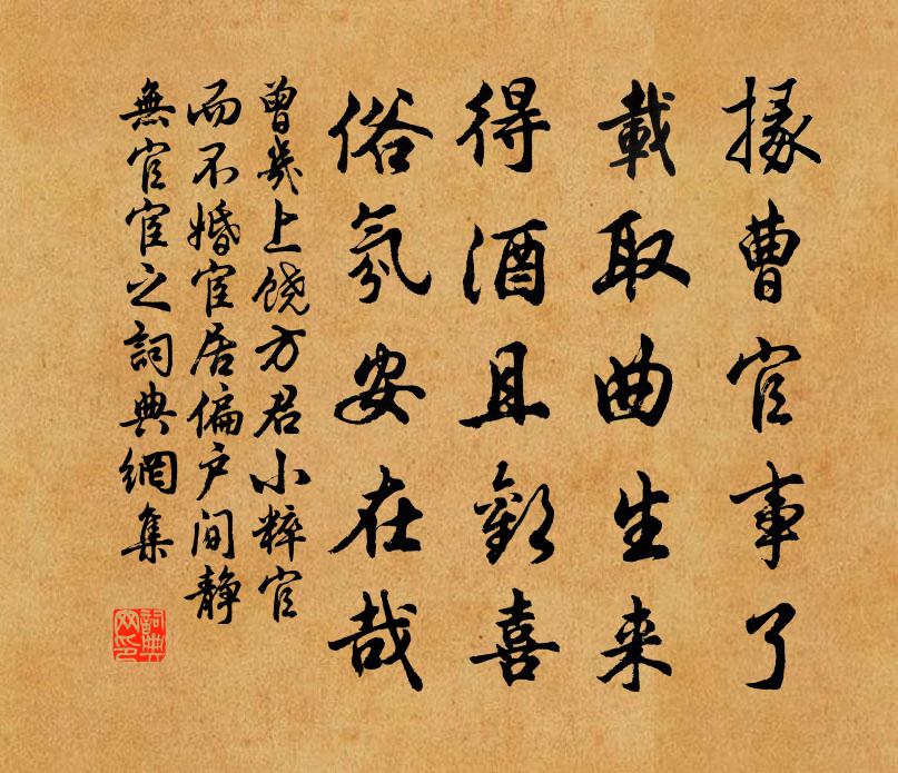 掾曹官事了,載取曲生來。得酒且歡喜,俗氛安在哉。