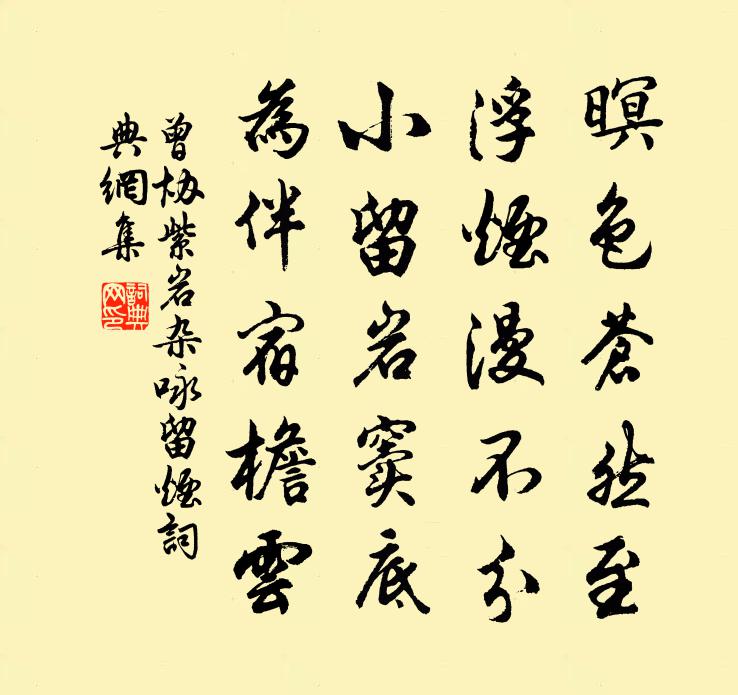 詩詞名句歷史字典書法欣賞書法字典國語詞典說文解字康熙字典古漢語字典標 題 作 者 詩 句 紫岩雜詠留煙作者:曾協 朝代:宋代紫岩雜詠留煙原文暝色蒼然至,浮煙漫不分。小留岩竇底,為伴宿檐雲。詩詞問答問:紫岩雜詠留煙的作者是誰?答:曾協問:紫岩雜詠留煙寫於哪個朝代?答:宋代曾協紫岩雜詠留煙書法欣賞紫岩雜詠留煙書法作品詩詞推薦十用喜雨韻三首吳潛〔宋代〕喜極夫何恨不禁,五更霜角夜聲沈。滴殘塞北征夫淚,點碎江南遊子心。久客情懷愁似織,休官時候夢非簪。寶陀怪夢十首方回〔宋代〕休官二十載,絲髮不身謀。肯顧江淹恨,焉知庾信愁。但當思反魯,何必望封留。閉目常危坐,胸中百尺樓。閒居寄太學盧景博士陳陶〔唐代〕無路青冥奪錦袍,恥隨黃雀住蓬蒿。碧雲夢後山風起,珠樹詩成海月高。久滯鼎書求羽翼,未忘龍闕致波濤。閒來謝居簡送茶麵陳著〔宋代〕銀絲餅熟筍供臛,玉糝羹香花嗽芽。食粥案頭添雅供,不知此味更誰家。次韻集津兄會群從王敦素宿王立之園明日西征晃沖之〔宋代〕秋高訪幽居,風急桑未落。天寒雞犬靜,地僻門巷闊。主人避世賢,自說久棲泊。呼兒出樽罍,梨栗亦不惡。賓客西江月 新秋寫興劉辰翁〔宋代〕天上低昂似舊,人間兒女成狂。夜來處處試新妝。卻是人間天上。不覺新涼似水,相思兩鬢如霜。夢從海底跨枯桑枕上聞蛩有感舒岳祥〔宋代〕桑鳥催耕緣底事,草蟲促織竟何成。春風秋月祗垂淚,北斗南箕空得名。有客悲歌持築擊,何時至治以韶鳴。吾儕顏徒貧樂齋二首黃庭堅〔宋代〕衡門低首過,環堵容膝坐。四旁無給侍,百衲自纏裹。論事直如弦,觀書曲肱臥。飢來或乞食,有道無不可。張尚書輓詩王炎〔宋代〕細數青雲士,如公有幾人。登龍心不遂。烹鯉字猶新。後進思高誼,中朝念信臣。百年喬木折,有識共酸辛。六用喜雪韻二首吳潛〔宋代〕白戰從來號令難,不知此令孰抽端。開倉自有齊相國,排戶何煩漢縣官。坐覺閻浮塵世隔,便同佛度化成看。遙思新愁晁說之〔宋代〕宿悵故難遣,新愁豈易安。囷空鼠號擲,庭靜鳥喑寒。月盛中秋色,人虧上國歡。灣頭十二衛,泣涕乞同鑾。同王右丞送瑗公南歸崔興宗〔唐代〕行苦神亦秀,泠然谿上松。銅瓶與竹杖,來自祝融峰。常願入靈岳,藏經訪遺蹤。南歸見長老,且為說心胸。塞上王建〔唐代〕漫漫復淒淒,黃沙暮漸迷。人當故鄉立,馬過舊營嘶。斷雁逢冰磧,回軍占雪溪。夜來山下哭,應是送降奚。挽張雅州李流謙〔宋代〕酣飽風煙德有芽,從來三戟是張家。翩翩群從同時貴,落落高門一世華。人自不欺華用忍,身如可贖但空嗟。路人錢伯同新創明暉閣韓元吉〔宋代〕使君談笑兩橋成,人向晴虹鏡里行。更辟軒窗待遊覽,要看山水倍澄明。波寬十頃知魚樂,歲熟千家響碓聲。收拾家人生朝吳芾〔宋代〕相從四十年,於今成二老。向來苦宦遊,頗恨歸不早。我家枕湖山,仿佛如蓬島。今始得歸來,方喜開懷抱。復值和樂天柘枝劉禹錫〔唐代〕柘枝本出楚王家,玉面添嬌舞態奢。松鬢改梳鸞鳳髻,新衫別織鬥雞紗。鼓催殘拍腰身軟,汗透羅衣雨點花。畫筵石壁釋紹曇〔宋代〕一方峭峻絕安排,立處還同萬仞崖。盧老倩人書不得,春日濈濈長莓苔。武昌南樓懷古章采〔宋代〕青虬修士去遒遒,黃鶴飛仙苒苒游。北望日邊秦樹遠,西來雪外蜀江浮。吳時宮殿千年夢,晉國風塵萬里愁。今古水調歌頭李曾伯〔宋代〕一番花蓼花雨,花幾陣桂枝風。杖藜多暇,準擬同醉小山重。底事阮郎清致,苦托休文瘦損,咫尺阻西東。秋色浩名句推薦我與我周旋久,寧作我。劉義慶《世說新語·品藻》 翠輦不來金殿閉,宮鶯銜出上陽花雍陶《天津橋望春》 白頭太守真愚甚,滿插茱萸望辟邪。宋祁《九日置酒》 是以動則必陷,為則必辱,是偏傷之患也。荀子《荀子·不苟》 牽牛織女遙相望,爾獨何辜限河梁。曹丕《燕歌行二首·其一》 千虛不如一實。馮夢龍《警世通言·卷三》 故鄉歸去千里,佳處輒遲留。蘇軾《水調歌頭·安石在東海》 看蓬門秋草,年年破巷,疏窗細雨,夜夜孤燈。鄭燮《沁園春·恨》 莫避春陰上馬遲。春來未有不陰時。辛棄疾《鷓鴣天·送歐陽國瑞入吳中》 春水滿四澤,夏雲多奇峰。陶淵明《四時》