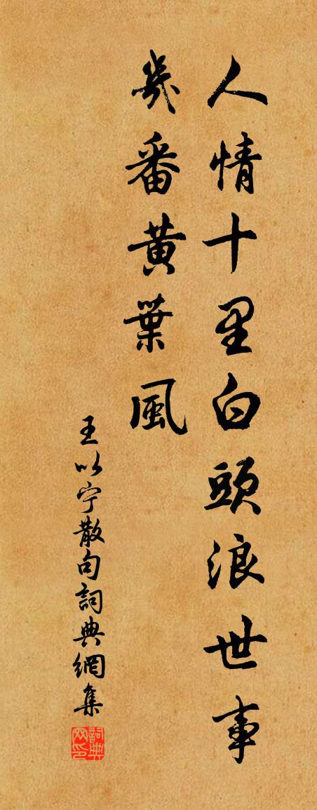 詩詞名句歷史字典書法欣賞書法字典國語詞典說文解字康熙字典古漢語字典標 題 作 者 詩 句 句作者:王以寧 朝代:宋代句原文人情十裏白頭浪,世事幾番黃葉風。詩詞問答問:句的作者是誰?答:王以寧問:句寫於哪個朝代?答:宋代王以寧句書法欣賞句書法作品詩詞推薦又題鴻佑寺王之望〔宋代〕石佛山頭日欲頹,尋僧不遇懶空回。青鞋布襪雲門路,拄杖穿林歸去來。南嶽橫龍寺白居易〔唐代〕月射冷光新殿宇,風敲清韻古杉松。問師寶額因何立,笑指橫溪有臥龍。 次韻袁憲雪二首陳造〔宋代〕天憐梅蕊怯摧殘,善後何妨小作慳。一雪應期真望外,三詩說喜想顏間。瑤花已兆食四鬴,沉炷為通天九關。卷帳春寒嘆蕭立之〔宋代〕一月春寒縮牛馬,束桂薪芻不當價。去年霜早谷蕃熟,雨爛秧青 * 曬。深山處處人夷齊,鋤荒飯蕨填朝飢。干戈回龍橋上晚望釋行海〔宋代〕回龍橋上憶龍回,營角鳴咿怨落梅。旦暮北風吹雁急,誰從沙漠寄書來。次韻公勝早梅強至〔宋代〕昨夜寒梅忽一枝,早如常歲合開時。欲冬天地恩先及,未雪園林色易知。世眼已教容易賞,曉風何用再三吹。若論李微之聞其弟貫之西歸以詩迓之劉左史和韻屬魏了翁〔宋代〕滔滔斯世我誰歸,置散投閒分亦宜。乾鵲頗驚仁鳥害,堅冰已向履霜知。宜春書事汪應辰〔宋代〕饑寒驅出故山來,俗事如麻撥不開。問我此行何所得,未嘗識面有澹臺。相和歌辭怨詩二首·其一崔國輔〔唐代〕妾有羅衣裳,秦王在時作。為舞春風多,秋來不堪著。夜夢亦好園喻良能〔宋代〕薄宦思歸切,天涯秋氣深。一番南國夢,千里故園心。歷歷湖邊路,悠悠沙上禽。橫枝清絕處,何日復追尋。書幽芳亭記黃庭堅〔宋代〕士之才德蓋一國,則曰國士;女之色蓋一國,則曰國色;蘭之香蓋一國,則曰國香。自古人知貴蘭,不待楚之逐臣述懷三首王炎〔宋代〕百指久轉食,一身今倦遊。事無非墮甑,心本是虛舟。儻不嘗艱阻,渠能寡悔尤。管城雖解語,懶賦畔牢愁。固城范成大〔宋代〕柳棬涼罐汲泉遙,味苦仍鹹似海潮。卻憶徑山龍井水,一杯洗眼洞層霄。大仙廟蘇泂〔宋代〕風木哀鳴想佩環,飛鸞何在古祠閒。無端牢落悲秋客,剛把人間比夢間。喜夢得自馮翊歸洛兼呈令公白居易〔唐代〕上客新從左輔回,高陽興助洛陽才。已將四海聲名去,又占三春風景來。甲子等頭憐共老,文章敵手莫相猜。鄒枚奉陪黃帥機訪問元夕戰場歸途見人家園池花木曹彥約〔宋代〕謾捐儋耳非長策,便戮先零亦少恩,整了六師須禁暴,本朝地氣要長存。宜春東湖呈趙使君戴復古〔宋代〕東園有佳趣,五馬共登臨。介石見古意,月台延賞心。雖然近城郭,元不遠山林。能使一州潤,秀江秋水深。臨江王節士歌李白〔唐代〕洞庭白波木葉稀,燕鴻始入吳雲飛。吳雲寒,燕鴻苦。風號沙宿瀟湘浦,節士悲秋淚如雨。白日當天心,照之可以題清淮樓蘇軾〔宋代〕觀魚惠子台蕪沒,夢蝶莊生冢木秋。惟有清淮供四望,年年依舊背城流。仁宗皇帝輓詞五首王珪〔唐代〕 * 青嵩道,千秋豈復晨。皇圖先與子,廟號獨稱仁。二帝衣裳舊,三王禮樂新。茂陵書奏晚,不及議東巡。名句推薦財以成者,扶而埋之;後得生者,而久禁之。墨子《墨子·22章 節用(下)》 篇之彪炳,章無疵也;章之明靡,句無玷也;句之清英,字不妄也。劉勰《文心雕龍·章句》 樓上黃昏欲望休,玉梯橫絕月中鉤李商隱《代贈二首》 撥雪尋春,燒燈續晝。毛滂《踏莎行·元夕》 啼時驚妾夢,不得到遼西。金昌緒《春怨 / 伊州歌》 還背垂虹秋去,四橋煙雨,一宵歌酒。吳文英《瑞龍吟·送梅津》 驚沙獵獵風成陣,白雁一聲霜有信。元好問《玉樓春·驚沙獵獵風成陣》 塞北梅花羌笛吹,淮南桂樹小山詞。劉禹錫《楊柳枝詞九首·其一》 同穴窅冥何所望,他生緣會更難期。元稹《遣悲懷三首·其三》 從極迷處識迷,則到處醒;將難放懷一放,則萬境寬。陳繼儒《小窗幽記·集醒篇》