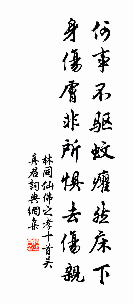 詩詞名句歷史字典書法欣賞書法字典國語詞典說文解字康熙字典古漢語字典標 題 作 者 詩 句 仙佛之孝十首吳真君作者:林同 朝代:宋代仙佛之孝十首吳真君原文何事不驅蚊,癯然床下身。傷膚非所懼去傷親。詩詞問答問:仙佛之孝十首吳真君的作者是誰?答:林同問:仙佛之孝十首吳真君寫於哪個朝代?答:宋代林同仙佛之孝十首吳真君書法欣賞仙佛之孝十首吳真君書法作品詩詞推薦洞仙歌晁補之〔宋代〕江陵種橘,尚比封侯貴。何況江濤轉千里。帶天香,含洞乳,宜入春盤,紅荔子,馳驛風流僅比。齒疏潘令老,怯登山方岳〔宋代〕一番雨過長莓苔,乘興登臨倦眼開。花落無聲春取去,社寒有信燕將來。人間事已不啻足,海上翁今莫見猜。負郭交廉布書事三首呈郎中機宜詩韻吳說〔宋代〕區宇半荊棘,干戈猶未休。屢空無計奈,多病不禁愁。農具應須辦,朝簪便合投。全家耕谷口,一飽更何憂。與富樞密張元乾〔宋代〕和氣從容一笑春,如公今是暫閒身。伊蒲饌設無多客,薝蔔花繁正惱人。已遣爐熏通鼻觀,更分茗碗瀹心塵。僧房離建鞏豐〔宋代〕旅中多得早朝晴,野潤衣襟苦未清。時時數點雨猶落,隱隱一聲雷不驚。山入夏來差覺老,花從春去久無情。長汀右陳宓〔宋代〕詩跨唐人未數錢,定應妙思入風煙。才堪 * 華寧老,句得驚人即是仙。世事但將酬一醉,侯封那可敵千篇。天葩次子自越來見省曹勛〔宋代〕江分吳越寄寒溫,賴有飛鴻旦夕聞。作別增年常入夢,相望百里嘆離群。庭萱雪已侵寒綠,梅萼春回耿暮雲。喜汝登垂虹亭二首張元乾〔宋代〕一別三吳地,重來二十年。瘡痍兵火後,花石穩粱先。山暗松江雨,波吞震澤天。扁舟莫浪發,蛟鱷正垂涎。送孫著作赴考城兼寄錢醇老李邦直二君於孫處蘇軾〔宋代〕使君閒如雲,欲出誰肯伴。清風獨無事,一嘯亦可喚。來從白苹洲,吹我明月觀。門前遠行客,青衫流白汗。問子買陂塘(兵後過舊遊)劉塤〔宋代〕倚樓西、西風驚鬢,吹回塵思蕭瑟。碧桃花下驂鸞夢,十載雨沈雲隔。空自憶。漫紅蠟香箋,難寫舊悽惻。煙村水余邦英惠小山新芽作小詩三首以謝陸游〔宋代〕平時共語不成些,痴坐空雕藜莧腸。誰遣春風入牙頰,詩成忽帶小山香。好事近辛棄疾〔宋代〕醫者索酬勞,那得許多錢物。只有一個整整,也盒盤盛得。下官歌舞轉悽惶,剩得幾枝笛。覷著這般火色,告媽媽修胥山路方岳〔宋代〕兩山壁立束微行,石齒參差半已傾。莫等危時扶使穩,但逢險處放教平。一毫以上諸人力,半月之間樂事成。安得秋懹陸游〔宋代〕昨者風雨過,浩然天地秋。年光雙雪鬢,生計一漁舟。賣藥來查浦,聽猿到沃洲。平生畏暑毒,八月記初游。五月間與正仲立耕養堂前見石榴一花吐初因以舒岳祥〔宋代〕石屏溪上晚風柔,深念沉思註易樓。好酒自能和性氣,閒愁何必上眉頭。十風五雨天常順,萬綠一紅春更留。灶婢贈英德風和尚敖陶孫〔宋代〕風師風狂無是處,文采成龍或成虎。向來打橛釘虛空,今日入山還削鋸。晴窗洗出煙岩秋,休嗟李廣不封侯。見說正月三日立春方回〔宋代〕曾戴金幡勝,如今有幾人。尚能容白髮,屢得見青春。定力忘寒燠,冥懷任屈伸。遙知殘雪地,即復化為塵。次韻陽孝本游翟家灣書院二首又一絕蘇頌〔宋代〕淮上陂陁百畝岡,誰言形勢占高強。郊居擬卜東陽宅,屋壁將營闕里堂。四面松篁分種藝,百家圖籍待收藏。何人秋日古蘭花十首方回〔宋代〕遠聞香淡近聞濃,紫穗絲絲吐雪茸。不識幽人殢姝子,兒曹方醉木芙蓉。過永州道間李曾伯〔宋代〕雨欠農憂燥,風多客苦埃。猶寒鶯未出,將社燕還來。桃放紅凝臉,梅飄粉褪腮。春山如舊識,一笑病顏開。名句推薦雪裡溫柔,水邊明秀,不借春工力。辛棄疾《念奴嬌·梅》 驪山四顧,阿房一炬,當時奢侈今何處?張養浩《山坡羊·驪山懷古》 長恨此身非我有,何時忘卻營營。蘇軾《臨江仙·夜飲東坡醒復醉》 若教眼底無離恨,不信人間有白頭。辛棄疾《鷓鴣天·晚日寒鴉一片愁》 憐君片雲思,一棹去瀟湘。杜牧《送薛種游湖南》 善御性者,不違金水之質;善為器者,不易方圓之用。姚察、姚思廉《梁書·列傳·卷二十一》 不親仁,無限害,小人進,百事壞。李毓秀《弟子規·親仁》 城中桃李愁風雨,春在溪頭薺菜花。辛棄疾《鷓鴣天·陌上柔桑破嫩芽》 以近知遠,以一知萬,以微知明。荀子《荀子·非相》 天下皆知美之為美,斯惡已。皆知善之為善,斯不善已。老子《老子·道經·第二章》