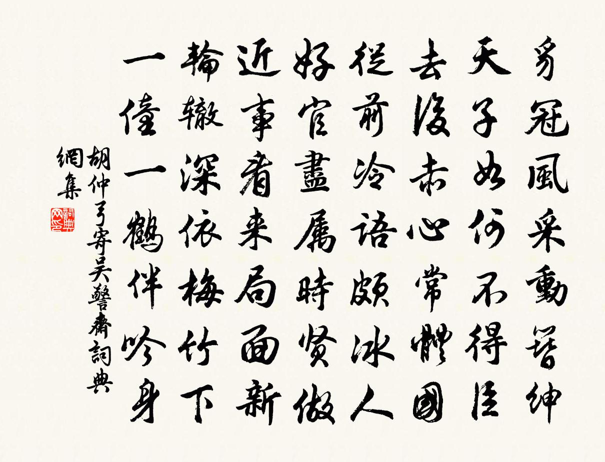 詩詞名句歷史字典書法欣賞書法字典國語詞典說文解字康熙字典古漢語字典標 題 作 者 詩 句 寄吳警齋作者:胡仲弓 朝代:宋代寄吳警齋原文豸冠風采動簪紳,天子如何不得臣。去後赤心常體國,從前冷語頗冰人。好官盡屬時賢做,近事看來局面新。輪轍深依梅竹下,一僮一鶴伴吟身。詩詞問答問:寄吳警齋的作者是誰?答:胡仲弓問:寄吳警齋寫於哪個朝代?答:宋代胡仲弓寄吳警齋書法欣賞寄吳警齋書法作品詩詞推薦雲門大師贊釋慧遠〔宋代〕倒著睦州破蒲鞵,輥雪峰爛球子。鴆鳥飛空草不生,毒龍入水魚皆死。單提獨掇驗人關,逆順雙行絕往還。遺烈尚答吳王上將顧處微詩陸雲〔魏晉〕一邈矣大昧。造化明明。物以曲全。人以直生。類聚百族。羣分萬形。員淵挺隋。方川吐瓊。二藹藹洪族。天祿攸乾寧三年丙辰在奉天重圍作韓偓〔唐代〕仗劍夜巡城,衣襟滿霜霰。賊火遍郊坰,飛焰侵星漢。積雪似空江,長林如斷岸。獨憑女牆頭,思家起長嘆。袁本初二首陳造〔宋代〕入門偶藉移韓馥,健者何曾抗董公。須信阿瞞人物論,但言玄德是英雄。寄趙景周撫乾二首洪咨夔〔宋代〕楊柳青已絮,芍藥紅方葩。詩隨去帆東,春風屬誰家。音疏日月駃,目短天宇賒。小德最憐渠,丹頰三髻丫。始生七章章八句上皇子嘉王生辰陳傅良〔宋代〕王看松柏萌,未貝葉與枝。衝然一點春,其大可十圍。雲胡間不茂,為失雨露滋。乃知生意同,其異各所罹。滿江紅(用韻烏朔齋)李曾伯〔宋代〕把繡成吟,真壓倒、古之元白。佳句有、雪車冰柱,曾無衿色。一點不留煙火氣,時脾時有清風入。更嶺邊、多少泛湖十絕句陳造〔宋代〕玉人罷浴試梅妝,詩客揮毫落夜光。因病覆觴今破戒,為渠豪飲為君狂。菩薩蠻 為王太利夫壽劉因〔元代〕吾鄉先友今誰健。西鄰王老時相見。每見憶先公。音容在眼中。今朝故人子。為壽無多事。惟願歲長豐。年年社酒和程刑部三首碧鮮亭王周〔唐代〕飋飋籠清籟,蕭蕭鎖翠陰。向高思盡節,從直美虛心。迥砌滋蒼蘚,幽窗伴素琴。公餘時引步,一徑靜中深。晁二家有海棠去歲花開晁二呼杜卿家小娃歌舞張耒〔宋代〕頗疑蜂蝶過鄰家,知是東牆去歲花。駿馬無因迎小妾,鴟夷何用強隨車。觀三皇吟邵雍〔宋代〕許大乾坤自我宣,乾坤之外復何言。初分大道非常道,才有先天未後天。作法極微難看蹟,收功最久不知年。若教菩薩蠻 回文李晏〔元代〕斷腸人去春將半。半將春去人腸斷。歸客倦花飛。飛花倦客歸。小窗寒夢曉。曉夢寒窗小。誰與畫愁眉。眉愁畫與肅簡魯公輓詞四首宋祁〔宋代〕拂世謨謀盛,端朝載采熙。上前推汲直,天下詠曹隨。密啟多焚草,加餐饜嗜葵。不圖霜露疾,奄忽喪元龜。和薛仲止漁村雜詩十首劉黻〔宋代〕情性常嗤俗者勞,世間何處免風濤。小舟泊向荷花盪,一個漁翁熟睡高。次劉伯益三詠韻方竹劉學箕〔宋代〕煙梢修矗畫檐低,春曉業疏綠玉枝。節立孤高虛靜處,身持敬義直方時。清風戛玉聲搖佩,明月篩金影散墀。寄語哭盧仝賈島〔唐代〕賢人無官死,不親者亦悲。空令古鬼哭,更得新鄰比。平生四十年,惟著白布衣。天子未辟召,地府誰來追。長安和韓欽聖學士襄陽聞喜亭梅堯臣〔宋代〕亭欄下望漢江水,浮綠無風寫鏡明。日腳穿雲射洲影,槎頭擺子出潭聲。檣帆落處遠鄉思,砧處動時歸客情。使者聞舂趙蕃〔宋代〕我居田野間,糴米如賃傭。晴天得曬暴,雨日還燎烘。晝役薪水事,故嘗多夜舂。簸之有餘谷,再以瓶罍充。時時戲妙德二偈曹勛〔宋代〕穩得身心常坦坦,此事從來高著眼。山河大地遍遊行,只是雨下不借傘。名句推薦蜂須輕惹百花心,蕙風蘭思寄清琴。薛昭蘊《浣溪沙·握手河橋柳似金》 柳葉雙眉久不描,殘妝和淚污紅綃。江采萍《謝賜珍珠》 強中自有強中手,用詐還逢識詐人。羅貫中《三國演義·第十七回》 玉皇開碧落,銀界失黃昏。毛滂《臨江仙·都城元夕》 春日宴,綠酒一杯歌一遍。馮延巳《長命女·春日宴》 玉人垂釣理纖鉤。月明池閣夜來秋。吳文英《浣溪沙·秋情》 為奏薰琴唱,仍題寶劍名。張九齡《奉和聖制送尚書燕國公赴朔方》 存為善之心,不必邀為善之名。王永彬《圍爐夜話·第五五則》 二人同心,其利斷金。同心之言,其臭如蘭。佚名《易傳·繫辭傳上·第八章》 知其雄,守其雌,為天下谿。老子《老子·道經·第二十八章》