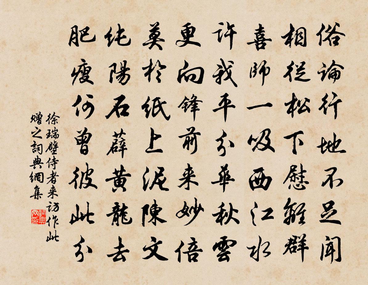 詩詞名句歷史字典書法欣賞書法字典國語詞典說文解字康熙字典古漢語字典標 題 作 者 詩 句 壁侍者來訪作此贈之作者:徐瑞 朝代:宋代壁侍者來訪作此贈之原文俗論行地不足聞,相從松下慰離群。喜師一吸西江水,許我平分華秋雲。更向鋒前來妙倍,莫於紙上泥陳文。純陽石薜黃龍去,肥瘦何曾彼此分。詩詞問答問:壁侍者來訪作此贈之的作者是誰?答:徐瑞問:壁侍者來訪作此贈之寫於哪個朝代?答:宋代徐瑞壁侍者來訪作此贈之書法欣賞壁侍者來訪作此贈之書法作品詩詞推薦梵天寺閒居書事釋智圓〔宋代〕松杉圍靜室,蹤跡遠人群。抱疾添華發,看山羨白雲。苔痕經雨長。蟬韻帶風聞。獨坐無來客,西軒日又曛。慶羅氏祖母百歲文天祥〔宋代〕麗日萱花照五雲,升堂風采見乾淳。蓬萊會上逢王母,婺女光中見老人。雨露一門華發潤,江山滿座彩衣新。只將灞上閒居王昌齡〔唐代〕鴻都有歸客,偃臥滋陽村。軒冕無枉顧,清川照我門。空林網夕陽,寒鳥赴荒園。廓落時得意,懷哉莫與言。庭前柳梢青(生日)趙彥端〔宋代〕衰翁自謫。堪笑忘了,山林閒適。一歲花黃,一秋酒綠,一番頭白。浮生似醉如客。問底事、歸來未得。但願長年次韻明仲幽居春來十首劉子翬〔宋代〕醉毫叵我落烏絲,況是桃源乍入時。祗恐昇平要華藻,賜箋春動萬年枝。張巨山賦蠟梅因成四首劉子翬〔宋代〕今日尋此梅,危行石澗東。花神欲宣令,萬鐸懸春風。偕康子雍州季子東所游虔州通天岩伍餘乾〔宋代〕山靈不為紅塵掃,仙竇玲瓏自天巧。或開或合誰主張,元氣淋漓出蓬島。壓服坡陀萬象高,平鋪練帶三江繞。水西高國正約飯素淨慈遂至劉寺酌茗於鳳凰泉同游喻良能〔宋代〕三亥並游真盛矣,二禪入社亦佳哉。鳳池一段風流事,不欠支郎與辯才。用楊誠齋韻再題歐陽長老墨梅袁說友〔宋代〕玉容曾浥麝,仿佛帶香開。不比真花怯,斕斑怕雨來。烈女秋陳普〔宋代〕陽台春夢逐浮雲,燈影西風獨閉門。一點清心霜六月,半簾紅葉雨黃昏。守符終古漸台水,墜血經今金谷園。何事溪橋梅方蒙仲〔宋代〕一陣曉風寒,驚飛點去鞍。行人易愁絕,便作柳花看。春雪韓愈〔唐代〕片片驅鴻急,紛紛逐吹斜。到江還作水,著樹漸成花。越喜飛排瘴,胡愁厚蓋砂。兼雲封洞口,助月照天涯。暝見客枕王大受〔宋代〕山居猿狖最多情,嘯月旋風伴醉醒。昨夜靈敏聲霜外,元來不比在家聽。雜詩絕句十七首梅堯臣〔宋代〕前時雙鴛鴦,失雌鳴不已。今更作雙來,還悲舊流水。田國博見示石炭詩有鑄劍斬佞臣之句次韻答之蘇軾〔宋代〕楚山鐵炭皆奇物,知君欲斫奸邪窟。屬鏤無眼不識人,楚國何曾斬無極。玉川狂直古遺民,救月裁詩語最真。千里戲贈家安國黃庭堅〔宋代〕家侯口吃善著書,常願執戈王前驅。朱紱蹉跎晚監郡,吟弄風月思天衢。二蘇平生親且舊,少年筆硯老杯酒。但使招義驛朱子恭〔宋代〕霜林紅葉趁桐花,路轉崖根百遲斜。霽日斷雲成徙倚,湘南秋盡未還家。送客至湖州市陸游〔宋代〕偶駕雞棲送客行,迢迢十里出關城。誰知小市蕭條處,剩有豐年笑語聲。聊借野風吹醉頰,更憑陂水濯麈纓。故廬和毛秀才江墅幽居好十首穆修〔宋代〕江墅幽居好,人間晚最孤。魚臨谿樹釣,鳥隔水煙呼。野竹掛薜荔,山花睡鷓鴣。畫工能狀出,羞殺輞川圖。送淮陰孫令之官溫庭筠〔唐代〕隋堤楊柳煙,孤棹正悠然。蕭寺通淮戍,蕪城枕楚壖。魚鹽橋上市,燈火雨中船。故老青葭岸,先知儒子賢。名句推薦大堤欲上誰相伴,馬踏春泥半是花。竇鞏《襄陽寒食寄宇文籍》 爭渡,爭渡,驚起一灘鷗鷺。李清照《如夢令·常記溪亭日暮》 憂民之憂者,民亦憂其憂。孟子《孟子·梁惠王章句下·第四節》 憶君迢迢隔青天,昔日橫波目,今作流淚泉。李白《長相思·其二》 堪怨王孫,不記歸期早。梅堯臣《蘇幕遮·草》 亂則國危,治則國安。荀子《荀子·王霸》 出不入兮往不反,平原忽兮路超遠。屈原《國殤》 春無主!杜鵑啼處,淚灑胭脂雨陳子龍《點絳唇·春日風雨有感》 胡雁哀鳴夜夜飛,胡兒眼淚雙雙落。李頎《古從軍行》 有過則改之,未萌則戒之馮夢龍《警世通言·卷三十八》