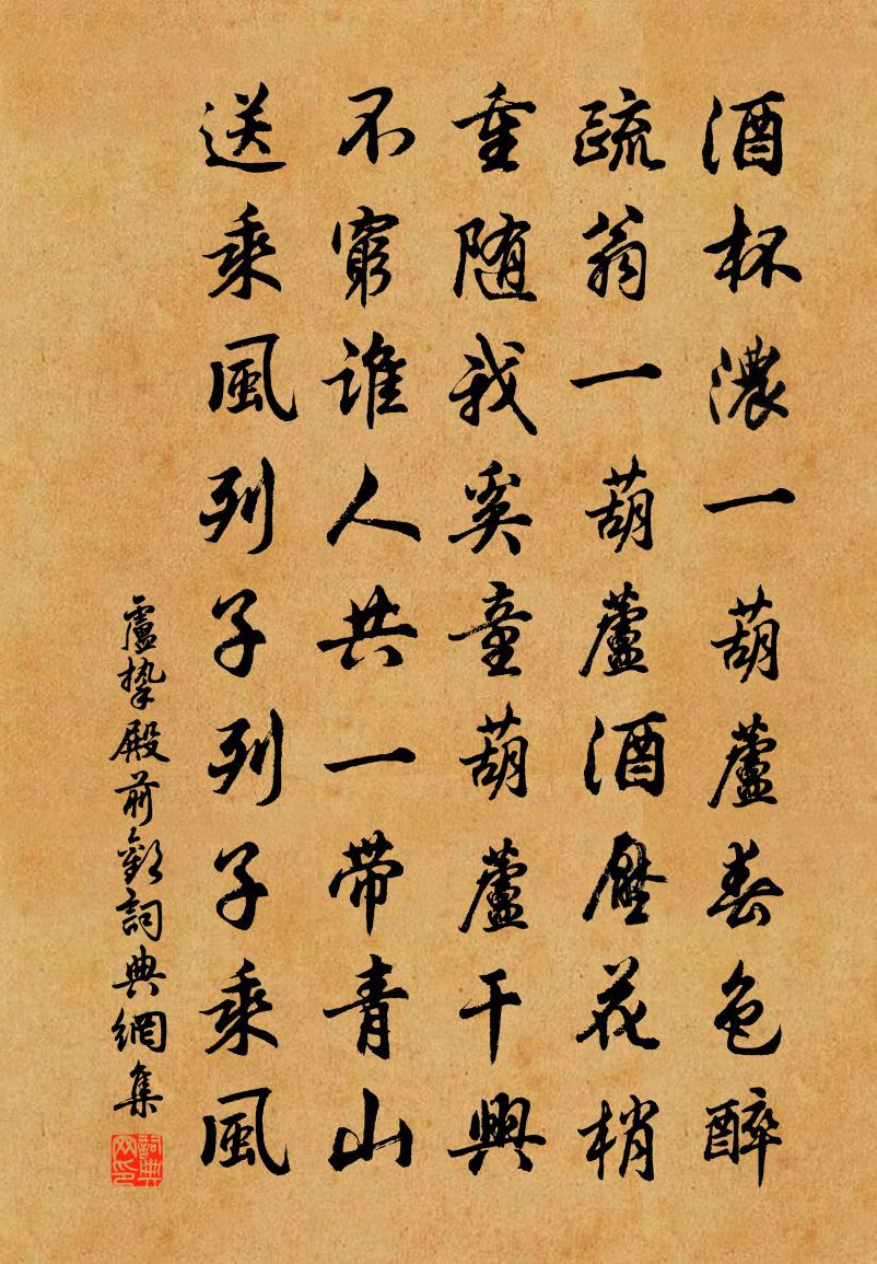 酒杯濃,一葫蘆春色醉疏翁,一葫蘆酒壓花梢重。隨我奚童,葫蘆乾興不窮。