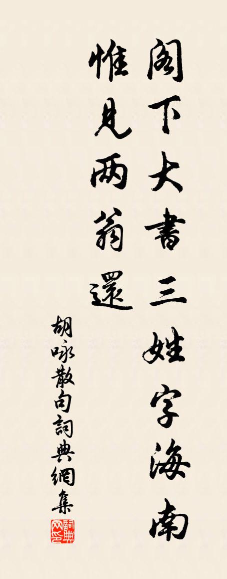 詩詞名句歷史字典書法欣賞書法字典國語詞典說文解字康熙字典古漢語字典標 題 作 者 詩 句 句作者:胡詠 朝代:宋代句原文閣下大書三姓字,海南惟見兩翁還。詩詞問答問:句的作者是誰?答:胡詠問:句寫於哪個朝代?答:宋代胡詠句書法欣賞句書法作品詩詞推薦約劉良叔觀苔梅方岳〔宋代〕黃昏疏影橫斜月,說似詩人仔細看,蘚樹臥龍鱗甲老,霜橋立馬骨毛寒。共尋雪句心猶苦,只嚼冰須齒亦酸。涪老送郭贊府歸淮南韓翃〔唐代〕駿馬淮南客,歸時引望新。江聲六合暮,楚色萬家春。白薴歌西曲,黃苞寄北人。不知心賞後,早晚見行塵。春日二首晁沖之〔宋代〕陰陰溪曲綠交加,小雨翻萍上淺沙。鵝鴨不知春去盡,爭隨流水趁桃花。後谷春晚釋永頤〔宋代〕煙冷雲深燕不歸,徑多松葉少花枝。春風過盡無行客,白書山獐飲石池。送鄭少卿景望知建寧陳傅良〔宋代〕清廟圖書寶,熙朝雅頌音。頻繁炻節召,荏苒二毛侵。衣飯家才足,丘園意亦深。臥聽床下士,時作武侯吟。辛未元日上樓參政攻愧齋先生戴復古〔宋代〕東風入仗慶雲翔,百辟朝元奉玉皇。一代安危寄黃髮,群生枯瘁轉青陽。梅花結果調勛鼎,柏葉宜年上壽觴。宰相送畢彥祖先之京師賀鑄〔宋代〕日日東風吹旱雲,弄鞭低帽送西曛。客亭五里復十里,春物三分今二分。但解征衣平酒債,莫隨肥馬作塵紛。扁舟元符二年十一月十六日趙德麟檢校諸邑……寄晁說之〔宋代〕佳人諒誠素,鳴佩若可取。王孫忘情事,不學鄭交甫。六言詩孔融〔兩漢〕從洛到許巍巍。曹公憂國無私。減去廚膳甘肥。羣僚率從祁祁。雖得俸祿常飢。念我苦寒心悲。和參寥見寄一作:奉和參寥離彭門至淮上見蘇軾〔宋代〕黃樓南畔馬台宮,雲月娟娟正點空。欲共幽人洗筆硯,要傳流水入絲桐。且隨侍者尋西谷,莫學山僧老祝融。待我偈頌一百二十三首釋祖欽〔宋代〕一棒打不殺,千古阿剌剌。是阿誰兮名悉達,更問如何兮四月八。句佚名〔唐代〕棧踏猿聲暮,江看劍影秋。(送人游蜀)僧老白雲上,磬寒高鳥邊。心已同猿狖,不聞人是非。行人渡流水,白馬織女圖薩都剌〔元代〕蘭閨織錦秦川女,大姬啞啞弄機杼。小姬織倦何所思?簾幕無人燕雙語。成都花發江水春,門前馬嘶車轔轔。髻鬟文宣王及其弟子贊宋高宗〔宋代〕孔父秦父,相尚以力。俱生賢嗣,相與以德。是父是子,致詰疇克。會弁儒林,令名無極。鷓鴣天·枝上流鶯和淚聞秦觀〔宋代〕枝上流鶯和淚聞。新啼痕間舊啼痕。一春魚鳥無訊息,千里關山勞夢魂。無一語,對芳尊。安排腸斷到黃昏。甫能刑部廳海棠見贈依韻答永叔二首梅堯臣〔宋代〕搖搖牆頭花,蒨蒨有好色。高枝笑粲粲,低枝明皪皪。但與風相撩,不與風相得。風吹莫苦急,遊子漢日昃。彭祖戊辰雪孔武仲〔宋代〕初臘氣亦佳,窮冬雪還虐。晚風淅瀝音,暮勢聯翩作。余寒逼觥斝,遠景明池閣。想像山陰人,扁舟在寥廓。南安試院無酒飲周道輔自贛上攜一榼時時對酌黃庭堅〔宋代〕聞說君家好弟兄,窮鄉相見眼俱青。偶同一飯論三益,頗為諸生醉六經。山吧已催乘傳馬,曉窗猶共讀書螢。霜花送王鍊師赴王屋洞權德輿〔唐代〕稔歲在芝田,歸程入洞天。白雲辭上國,青鳥會群仙。自以棋銷日,寧資藥駐年。相看話離合,風馭忽泠然。次林庭植留別韻胡仲參〔宋代〕麴生皆可醉,何必問醇醨。浩氣長看劍,愁腸半貯詩。歸舟無麥載,去路有梅隨。瘴海風波惡,此行君自知。名句推薦彩線輕纏紅玉臂,小符斜掛綠雲鬟。蘇軾《浣溪沙·端午》 明月幾時有?把酒問青天。蘇軾《水調歌頭·丙辰中秋》 那堪好風景,獨上洛陽橋。李益《上洛橋》 江涵雁影梅花瘦,四無塵、雪飛雲起,夜窗如晝。盧祖皋《賀新郎·挽住風前柳》 戎馬關山北,憑軒涕泗流。杜甫《登岳陽樓》 因病得閒殊不惡,安心是藥更無方。蘇軾《病中游祖塔院》 李杜詩篇萬口傳,至今已覺不新鮮。趙翼《論詩五首》 霰雪紛其無垠兮,雲霏霏而承宇。屈原《九章》 燕子歸來依舊忙。憶君王,月破黃昏人斷腸。謝克家《憶君王·依依宮柳拂宮牆》 桑柘影斜春社散,家家扶得醉人歸。王駕《社日》