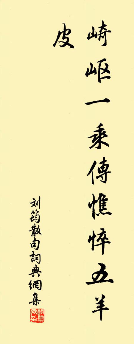 詩詞名句歷史字典書法欣賞書法字典國語詞典說文解字康熙字典古漢語字典標 題 作 者 詩 句 句作者:劉筠 朝代:宋代句原文崎嶇一乘傳,憔悴五羊皮。詩詞問答問:句的作者是誰?答:劉筠問:句寫於哪個朝代?答:宋代劉筠句書法欣賞句書法作品詩詞推薦八月十四至十六日無月二首郭印〔宋代〕秋中景色正蕭森,月色超然重古今。要使萬方傾素采,那知三日翳重陰。晦冥欲害天公眼,想像難忘海宇心。決斷送姚先生歸宜山三首陳師道〔宋代〕老逢熙運乞前官,病遇先生得內丹。一飽有期吾事了,千年不死後人看。朝中措(帥生日)洪适〔宋代〕斗南樓閣舞祥雲。為壽幾多人。有酒恰如東海,年年為滿金尊。無雙治行,兒童詠德,草木沾仁。只把空虛三院,郊廟歌辭。德明興聖廟樂章。迎俎李紓〔唐代〕盛牲實俎,涓選休成。鼎煁陽燧,玉盥 * 。有飶嘉豆,既和大羹。侑以清樂,細齊人情。薌岩山居孟夏二十絕舒岳祥〔宋代〕珍禽好毛羽,高飛不啄粟。路旁挾彈兒,何自規其肉。中秋近願晴陳普〔宋代〕浩蕩無邊及物心,孔顏堯舜共弘深。柴荊一壑蒼苔合,惟幸寒蟾夜夜臨。舟發清江釋紹嵩〔宋代〕穩泛一船東,生涯真轉蓬。煙浮平野碧,波軟夕陽紅。蒲樹家家異,風光處處同。回看蒼木杪,眼界入雲中。黃鐘樂魏承班〔唐代〕池塘煙暖草萋萋,惆悵閒宵含恨,愁坐思堪迷。遙想玉人情事遠,音容渾似隔桃溪。偏記同歡秋月低,簾外論心花含雲晚歸寄真師楊時〔宋代〕每扣禪關即晚歸,塵中回首萬緣非。不愁幻翳迷心地,且聽潮音振祖衣。歸路往來無別徑,夜光清徹有餘輝。虎溪桐柏碑胡融〔宋代〕韓公在大曆,高名懸日月。遊戲翰墨場,八分獨奇絕。遙嗤程邈鈍,近鄙伯喈拙。我來桐柏巔,洗眼見碑碣。峍屼鄰山縣范成大〔宋代〕山頂噓雲黑似煙,修篁高柳共昏然。鳥啼一夜勸歸去,誰道東川無杜鵑?明皇祀圜丘樂章。太和佚名〔唐代〕郊壇齋帝,禮樂祀天。丹青寰宇,宮徵山川。神祇畢降,行止重旋。融融穆穆,納祉洪延。雨中看花胡仲弓〔宋代〕頑雲痴雨霸春寒,李白桃紅總失歡。試問東君因底事,卻來花上作艱難。更漏子黃大輿〔宋代〕憐宋玉、許王昌。東西鄰短牆。丙戌五日京師作二首王安石〔宋代〕浮雲離披久不合,太陽獨行乾萬物。誰令昨夜雨霶沱,北風蕭蕭寒到骨。和蕭判官東夫韻寄之楊萬里〔宋代〕湘江曉月照離裾。目送車塵至欲脯。歸路新詩合千首,幾時乘興更三吾。眼邊俗物只添睡,別後故人何似臞。尚策三皇吟邵雍〔宋代〕三皇之世正熙熙,鳥鵲之巢俯可窺。當日一般情味好,初春天氣早晨時。隱者劉克莊〔宋代〕寧采箕山釣潁濱,放勛天大不能臣。漁郎未必知年代,先有逃堯次避秦。三衢效周雅作鹿鳴宴詩三章袁甫〔宋代〕鹿鳴鹿鳴,惠我好音。我有嘉賓,言獻其琛。雖則軒裳,不改山林。我有十箴,以淑我心。和丁大卿韻姜特立〔宋代〕久回俗駕向山中,無復詩騷見古風。方喜故人千里至,更容清夜一尊同。賓筵談笑知無敵,筆力追陪愧未工。自古名句推薦與君別。相思一夜梅花發。房舜卿《憶秦娥·與君別》 歸雁橫秋,倦客思家。張可久《折桂令·九日》 女慕貞潔,男效才良。周興嗣《千字文·全文》 詩言志,歌永言佚名《尚書·虞書·舜典》 悵恨不逢如意酒。尋思難值有情人。晏幾道《浣溪沙·閒弄箏弦懶系裙》 尊長前,聲要低。低不聞,卻非宜。李毓秀《弟子規·出則弟》 憶昔花間相見後,只憑縴手,暗拋紅豆。歐陽炯《賀明朝·憶昔花間相見後》 臘盡愁難盡,春歸人未歸。馮夢龍《喻世明言·卷一》 大鵬一日同風起,扶搖直上九萬里。李白《上李邕》 有過則改之,未萌則戒之馮夢龍《警世通言·卷三十八》