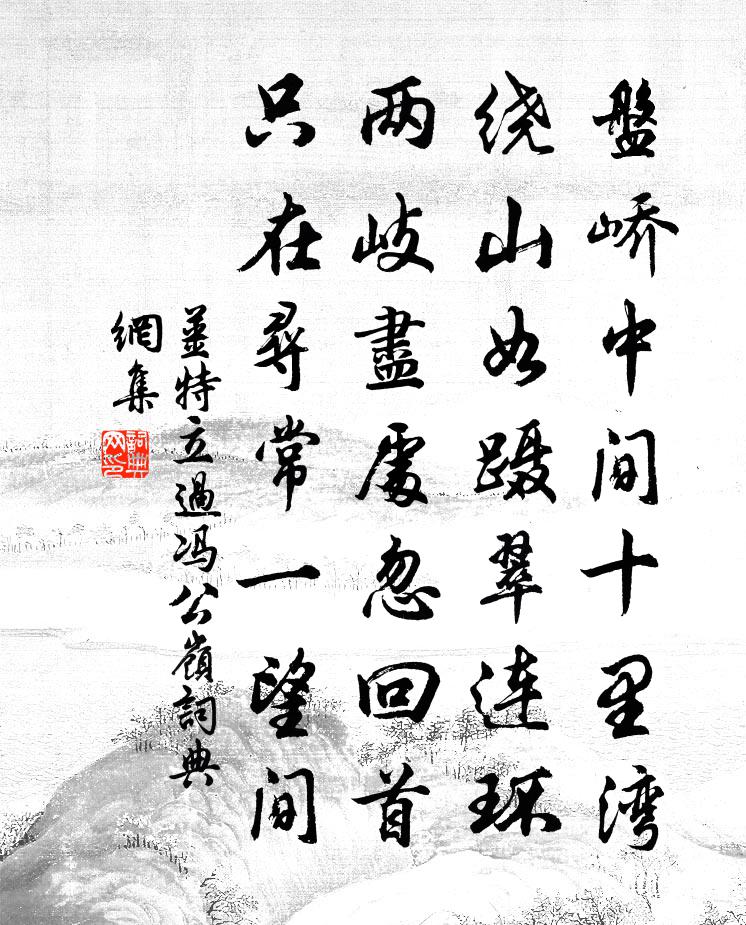 詩詞名句歷史字典書法欣賞書法字典國語詞典說文解字康熙字典古漢語字典標 題 作 者 詩 句 過馮公嶺作者:姜特立 朝代:宋代過馮公嶺原文盤嶠中間十里灣,繞山如躡翠連環。兩岐盡處忽回首,只在尋常一望間。詩詞問答問:過馮公嶺的作者是誰?答:姜特立問:過馮公嶺寫於哪個朝代?答:宋代姜特立過馮公嶺書法欣賞過馮公嶺書法作品詩詞推薦和陶始經曲阿蘇軾〔宋代〕虞人非其招,欲往畏簡書。穆生責醴酒,先見我不如。江左古弱國,強臣擅天衢。淵明墮詩酒,遂與功名疏。我生題表上人卷舒軒汪應辰〔宋代〕高軒聊自娛,俯仰稱幽居。世道有興廢,人心隨卷舒。圓機應有此,膠柱合何如。愧匪許詢輩,時來問滿虛。坐病不及赴少卿羅春伯登樓觀雪之集因成小詩曾豐〔宋代〕飽送欹眠美,寒添兀坐愁。從雄容有酒,訪戴豈無舟。怯出風前立,妨陪雪裡游。想余鹽絮句,題遍仲宣樓。寄題林憲景思雪巢趙蕃〔宋代〕雪堂竟向雪中成,四壁紛紛灑雪霙。春秋記事有成法,匪同風月徒虛名。雪巢之雪竟何許,豈角主人清且苦。長鑱和答外舅孫莘老黃庭堅〔宋代〕西風挽不來,殘暑推不去。出門厭靴帽,稅駕喜巾屨。道山鄰日月,清樾深牖戶。同舍多望郎,閒官無窘步。少監後坑茅舍利登〔宋代〕松風颯颯繞回豀,遙帶居人竹一籬。想自不知雲水好,卻令行客立多時。松江舟中四首荷葉浦時有不測末句故及之戴復古〔宋代〕垂虹五百步,太湖三萬頃。除卻岳陽樓,天下無此景。范蠡挾西施,功名付煙艇。沁園春(壽韋軒八十一歲·九月初二)佚名〔宋代〕 * 十翁,似嬰兒戲,漢司馬遷。記渭川垂釣,一年之長,龍山吹帽,七日之前。口角春風,襟期秋月,萬事從來雜記五言十首劉克莊〔宋代〕東行值伯倫,西去逢無功。不知何國土,疑是醉鄉中。游江令舊宅許渾〔唐代〕身沒南朝宅已荒,邑人猶賞舊風光。芹根生葉石池淺,桐樹落花金井香。帶暖山蜂巢畫閣,欲陰溪燕集書堂。閒愁題趙昌父山居八詠晏齋楊萬里〔宋代〕五陵槿梢花,千駟草頭露。富貴人始傳,屢空今不數。呈宜之兄八首趙蕃〔宋代〕兄昔守清江,弟亦官白下。檄書幾經過,鈴合奉閒暇。扇子詩李石〔宋代〕拙眼捫星絕漢津,只知仙跡混風塵。天衣自是非針線,此巧如何說向人。和堯夫先生安樂窩中好打乖吟王拱辰〔宋代〕安樂窩中名隱君,腹藏經笥富多聞。一廛水竹為生計,三徑琴觴混世紛。婉畫舊嘗辭幕府,少微今已應星文。了心和江陵闕乾風雨問訊虛舟韻二首李曾伯〔宋代〕使君簾幕鎖香篝,廣馬千金制一裘。好是孤燈風雨夢,夜深直度野人舟。尋白鶴岩張子容隱居孟浩然〔唐代〕白鶴青岩半,幽人有隱居。階庭空水石,林壑罷樵漁。歲月青松老,風霜苦竹疏。睹茲懷舊業,回策返吾廬。清閟閣薛紹彭〔宋代〕虛堂幽幽竹森森,直節常便靜者心。秋檻風高聲戛玉,夜庭月白影篩金。檀欒相對復何有,掛壁丹青古名手。飛泉酬張十八訪宿見贈(自此後詩為贊善大夫時所作)白居易〔唐代〕昔我為近臣,君常稀到門。今我官職冷,君君來往頻。我受狷介性,立為頑拙身。平生雖寡合,合即無緇磷。況君題欹器圖劉禹錫〔唐代〕秦國功成思稅駕,晉臣名遂嘆危機。無因上蔡牽黃犬,願作丹徒一布衣。廬山瀑布張碧〔唐代〕誰將織女機頭練,貼出青山碧雲面。造化工夫不等閒,剪破澄江凝一片。怪來洞口流嗚咽,怕見三冬晝飛雪。石鏡名句推薦沽酒清陰時系馬,招涼短檻幾留題。許德溥《西橋柳色》 王顧左右而言他。孟子《孟子·梁惠王章句下·第六節》 陌上深深,依舊年時轍。王國維《蝶戀花·滿地霜華濃似雪》 野鴉無意緒,鳴噪自紛紛。杜甫《孤雁 / 後飛雁》 野田春水碧於鏡,人影渡傍鷗不驚。汪藻《春日·一春略無十日晴》 一葉葉,一聲聲,空階滴到明。溫庭筠《更漏子·玉爐香》 雲中君不見,竟夕自悲秋。馬戴《楚江懷古三首·其一》 兵戈既未息,兒童盡東征。杜甫《羌村三首·其三》 六出飛花入戶時,坐看青竹變瓊枝。高駢《對雪》 漠漠黃雲,濕透木棉裘。蔣捷《梅花引·荊溪阻雪》