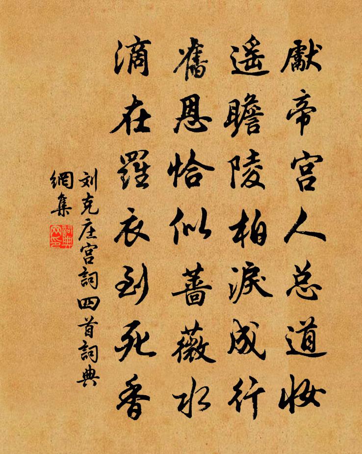 先帝宮人總道妝,遙瞻陵柏淚成行。舊恩恰似薔薇水,滴在羅衣到死香。