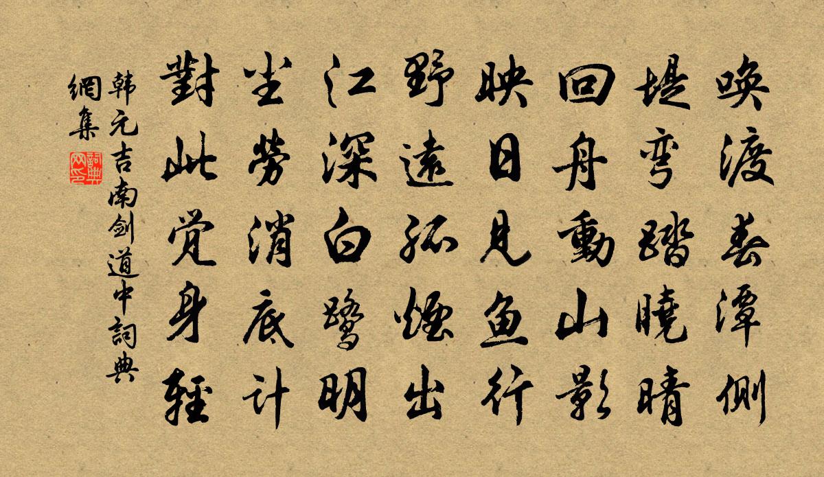 詩詞名句歷史字典書法欣賞書法字典國語詞典說文解字康熙字典古漢語字典標 題 作 者 詩 句 南劍道中作者:韓元吉 朝代:宋代南劍道中原文喚渡春潭側,堤彎踏曉晴。回舟動山影,映日見魚行。野遠孤煙出,江深白鷺明。塵勞消底計,對此覺身輕。詩詞問答問:南劍道中的作者是誰?答:韓元吉問:南劍道中寫於哪個朝代?答:宋代問:韓元吉的名句有哪些?答:韓元吉名句大全韓元吉南劍道中書法欣賞南劍道中書法作品詩詞推薦宿韋校書幽居李中〔唐代〕溪上高眠與鶴閒,開樽留我待柴關。園林月白秋霖歇,一夜泉聲似故山。九日三首張嵲〔宋代〕南國窮秋冷尚賒,隨時游矚自堪嘉。且欣一雨山爭出,休嘆重陽菊未華。佳客逢秋宜得句,道人酌酒似烹茶。人生挽梁尚書二首吳芾〔宋代〕早歲膺宸眷,迴翔老禁塗。三持周版籍,九佩漢銅符。度量包千頃,聲名滿八區。誰知成奄忽,陳跡付龜趺。閒中口占數絕濃綠中見芍藥一朵鄭清之〔宋代〕杏桃結子已成翁,稚綠中間著耄紅。階藥元來如許壽,麥秋天氣露春工。春雨詞黃庚〔宋代〕檐聲滴碎玉闌乾,開盡梨花亦懶看。燕子不歸人寂寞,深深宮殿鎖春寒。山中道士賈島〔唐代〕頭髮梳千下,休糧帶瘦容。養雛成大鶴,種子作高松。白石通宵煮,寒泉盡日舂。不曾離隱處,那得世人逢。搗衣沈宇〔唐代〕日暮遠天青,霜風入後庭。洞房寒未掩,砧杵夜泠泠。奉和九月九日登慈恩寺浮圖應制李從遠〔唐代〕九月從時豫,三乘為法開。中霄日天子,半座寶如來。摘果珠盤獻,攀萸玉輦回。願將塵 * ,遙奉光明台。頌古二十首釋了一〔宋代〕竹篦舉起成生殺,豈肯容人亂札錐。劈脊一揮如薦得,銀山鐵壁也光輝。經方乾舊居乾康〔唐代〕鏡湖中有月,處士後無人。荻筍抽高節,鱸魚躍老鱗。相書語(張璟藏論婦人相引此)佚名〔唐代〕目有四白,五夫守宅。獨游釋智圓〔宋代〕城市非無親,不見歲已深。江湖非無友,經年無來音。因知疏拙性,不合時人心。清景將誰觀,荷策祇自尋。乃登彭尉焚巢二首陳造〔宋代〕彭家柳邊堂,江色潤書畫。乃公根柢學,衣傳自心會。唾手勳業余,探妙文字外。區區青紫計,韋子豈君配。神物端午帖子詞二十首皇帝合六首歐陽修〔宋代〕楚國因讒逐屈原,終身無復入君門。願因角黍詢遺俗,可鑑前王惑巧言。玩迎春花贈楊郎中白居易〔唐代〕金英翠萼帶春寒,黃色花中有幾般?憑君與向遊人道,莫作蔓菁花眼看。九疊劉克莊〔宋代〕新詠平生陋玉台,梨園以後更堪哀。寧隨太白金鞍去,莫放花奴羯鼓來。寄成都監庫石屯田遠叔文同〔宋代〕一年同往夾城中,小圃高齋幸見容。吟盡物題春唱和,講窮人事夜過從。尋芳待去門前約,訪古邀回道上逢。別後閒居寄諸弟韋應物〔唐代〕秋草生庭白露時,故園諸弟益相思。盡日高齋無一事,芭蕉葉上獨題詩。初冬絕句陸游〔宋代〕鱸肥菰脆調羹美,蕎熟油新作餅香。自古達人輕富貴,例緣鄉味憶還鄉。柏谷詞楊維楨〔元代〕柏谷險,君勿趨。君一趨,龍為魚。槳長豈識真龍軀,賴爾老婦能挽夫。論報不賜誅,槳長本無辜。舉之羽林郎,名句推薦止戈為武。左丘明《左傳·宣公·宣公十二年》 蜀天常夜雨,江檻已朝晴。杜甫《水檻遣心二首》 會當凌絕頂,一覽眾山小。杜甫《望岳》 楊柳散和風,青山澹吾慮。韋應物《東郊》 話別情多聲欲戰,玉著痕留紅粉面。顧敻《玉樓春·拂水雙飛來去燕》 寵錫從仙禁,光華出漢京。張九齡《奉和聖制送尚書燕國公赴朔方》 漠漠水田飛白鷺,陰陰夏木囀黃鸝。王維《積雨輞川莊作 / 秋歸輞川莊作》 坐看黑雲銜猛雨,噴灑前山此獨晴。崔道融《溪上遇雨二首》 梁園日暮亂飛鴉,極目蕭條三兩家。岑參《山房春事二首》 民無廉恥,不可治也;非修禮義,廉恥不立。劉安及其門客《淮南子·泰族訓》