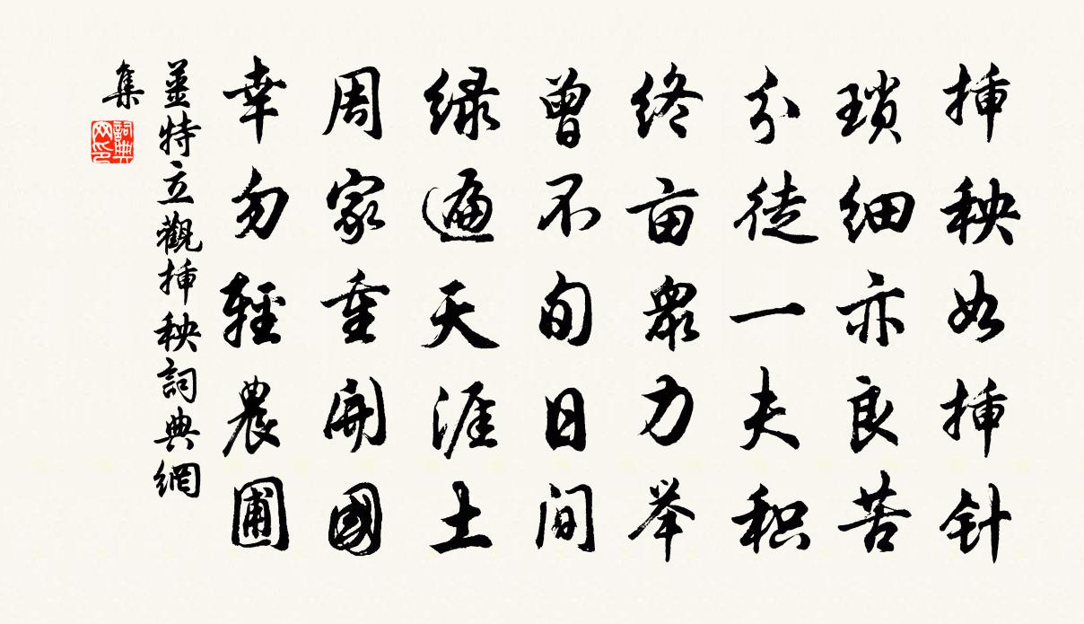 詩詞名句歷史字典書法欣賞書法字典國語詞典說文解字康熙字典古漢語字典標 題 作 者 詩 句 觀插秧作者:姜特立 朝代:宋代觀插秧原文插秧如插針,瑣細亦良苦。分徒一夫積,終畝眾力舉。曾不旬日間,綠遍天涯土。周家重開國,幸勿輕農圃。詩詞問答問:觀插秧的作者是誰?答:姜特立問:觀插秧寫於哪個朝代?答:宋代姜特立觀插秧書法欣賞觀插秧書法作品詩詞推薦送許兄還侍兼簡廣南監場二首廖行之〔宋代〕君家疇昔汝南龍,淵有驪珠自不窮。黃卷乃翁廉取位,碧梧之子秀參空。儒冠底誤資身術,鹽筴聊成富國功。莫倚京口時楚寇侵維揚釋善珍〔宋代〕河淮羽騎召兵頻,臘月花開暖似春。斗雀倚風將墜地,長鯨吸海欲生塵。燒紅天半無飛鳥,雲白山中有隱人。回首宿天慶道院陸游〔宋代〕衰病厭多事,清游諧夙心。夜深樓突兀,歲晚柏蕭森。汲井洗靈藥,焚香橫素琴。身閒境自勝,城市亦山林。春日書情贈別司空曙盧綸〔唐代〕壯志隨年盡,謀身意未安。風塵交契闊,老大別離難。,臘近晴多暖,春遲夜卻寒。誰堪少兄弟,三十又無官。留滯張弋〔宋代〕蕭條十日餘,留滯別人居。借吏抄陳作,黏碑學草書。煙清數村曉,月落一潭虛。吾自疑秋色,那甚樹木疏。諸公唱和多記經歷之事因感昔游復用元韻凡三蘇頌〔宋代〕朝鞍早過鳳樓西,雨浥輕塵未有泥。頒宴百壺人共醉,演綸雙筆客同攜。紫微舊刻蘭堂閟,朱字新牌藝院題。更識水閣鄭克已〔宋代〕水閣臨堤晚,簾鉤暖翠通。睡驚鶯去後,夢到蝶邊空。春欲從人別,花消昨日紅。多情湖上浪,拍拍巒東風。正月六日早行松山道鄭清之〔宋代〕五更河鼓尚橫陳,小立晨光漸可人。日出野雞猶唱曉,雪晴山鳥競呼春。溪筠拂袖霜花落,石路支筇蘚跡新。慚愧挽處士富公二首陳棣〔宋代〕慶曆元臣後,勛名泰華主。當年遺德澤,流裔盡英豪。繼世夸榮耀,唯公隱寂寥。潛輝傳野史,猶足見清標。晝夜樂 藏頭 重陽全真集卷之十三王哲〔元代〕金相隔休教錯。年間怎生作。前頭說甚惺惺,辰下重安手腳。被蟾光晷運交,平時從根摸索。事有神功,清強氣躍中秋望月呈諸友胡仲弓〔宋代〕長空萬里琉璃滑,冰輪碾上黃金闕,清光爍盡滿天星,桂枝搖落蟾蜍活。故雷鋒此盡翹首,望殺 * 眼瀝血。烏鵲鷓鴣天徐俯〔宋代〕綠水名園不是村。淡妝濃笑兩生春。笛中已自多愁怨,雨里因誰有淚痕。香旖旎,酒氤氳。多情生怕落紛紛。舊來夜坐池上用簡齋韻朱槔〔宋代〕落日解衣無一事,移床臨水已三回。斗沉北嶺魚方樂,月過秋河雁不來。疏翠庭前供答話,淺紅木末勸持杯。明明奉和御製讀五代漢史夏竦〔宋代〕危邦有賢哲,力戰鎮州平。革弊還疲庶,從寬悅眾情。愛人惟責己,徇節幾忘生。青史惟馨在,千年仰令名。嶼贈白雲先生王迥孟浩然〔唐代〕悠悠清水江,水落沙嶼出。回潭石下深,綠筿岸傍密。鮫人潛不見,漁父歌自逸。憶與君別時,泛舟如昨日。夕陽寄題辛氏塵外樓洪咨夔〔宋代〕羅浮三十里,樓對玉崔嵬。風卷軟紅去,雲扶飛翠來。會心須盡帙,適性莫多杯。除得翳根盡,靈光生鏡台。新安江上次程南仲韻楊公遠〔宋代〕石闌斜護崎嶇逕,村酒頻澆磊魄胸。好是黃山供望眼,白雲分出兩三峰。定翁釋惟一〔宋代〕日用千差萬別中,如如不動等虛空。春妍秋靖幾更變,此老何曾改舊容。寄呈王浩翁府判劉宰〔宋代〕天下江山推第一,多景名樓信端的。君家正占多景前,第一風光環燕席。梁邑歸來縣債了,驊騮得路乾坤小。錦衣道中即事方岳〔宋代〕晨光漏日鳥深春,況此泥行雨宿人。夜半瓦鳴驚夢覺,悔將篷笠當勞薪。名句推薦終南陰嶺秀,積雪浮雲端。祖詠《終南望余雪》 誰憐旅愁荏苒。謾長門夜悄,錦箏彈怨。張炎《解連環·孤雁》 若問相思甚了期,除非相見時。晏幾道《長相思·長相思》 聖人之治民也,先治者強,先戰者勝。韓非及後人《韓非子·心度》 後其身而身先,外其身而身存。老子《老子·道經·第七章》 鳥向檐上飛,雲從窗里出。吳均《山中雜詩》 若非群玉山頭見,會向瑤台月下逢李白《清平調·其一》 時不可再,機不可失魏徵《隋書·列傳·卷三》 疑怪昨宵春夢好,元是今朝鬥草贏晏殊《破陣子·春景》 茶性儉,不宜廣,廣則其味黯澹。陸羽《茶經·五之煮》