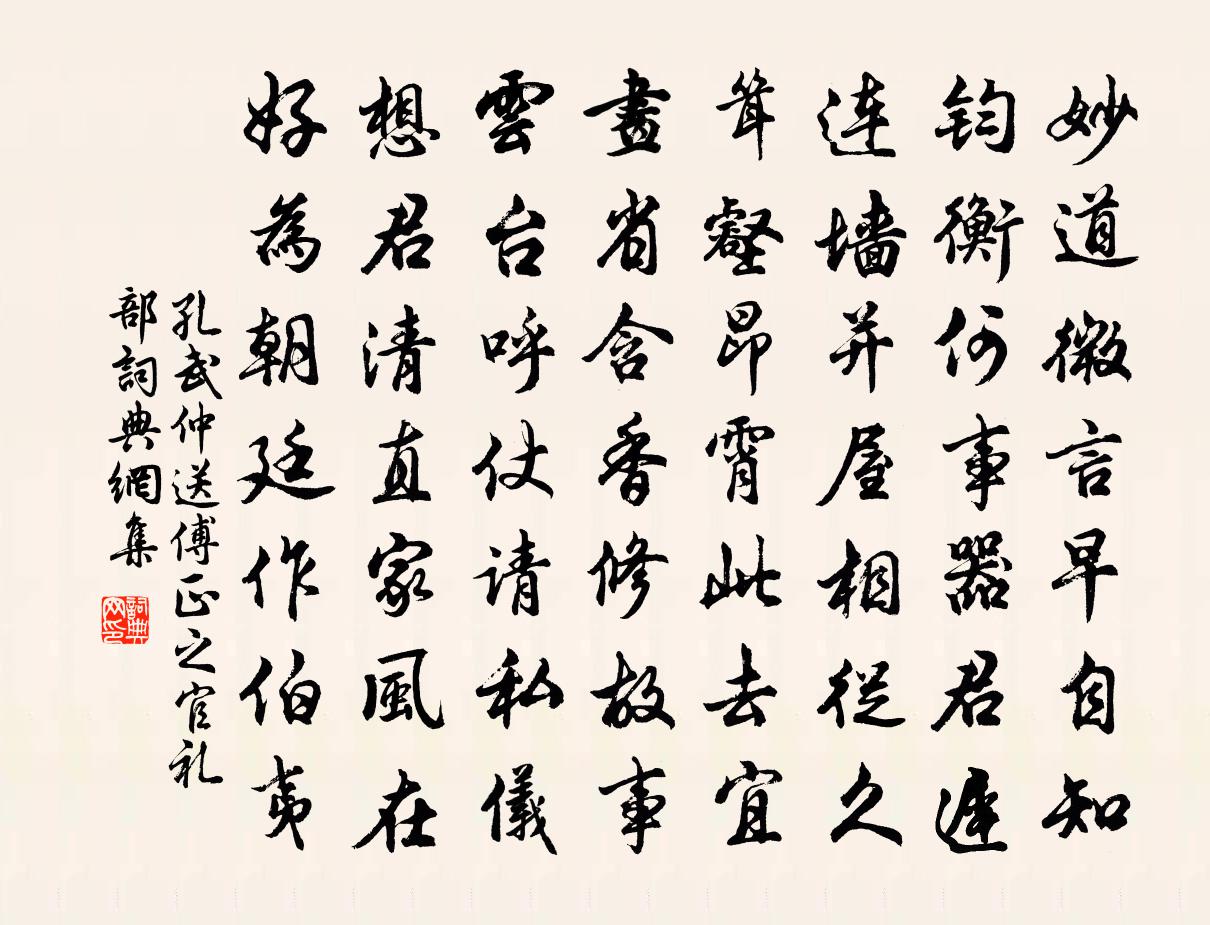 詩詞名句歷史字典書法欣賞書法字典國語詞典說文解字康熙字典古漢語字典標 題 作 者 詩 句 送傅正之官禮部作者:孔武仲 朝代:宋代送傅正之官禮部原文妙道微言早自知,鈞衡何事器君遲。連牆並屋相從久,聳壑昂霄此去宜。畫省含香修故事,雲台呼仗請私儀。想君清直家風在,好為朝廷作伯夷。詩詞問答問:送傅正之官禮部的作者是誰?答:孔武仲問:送傅正之官禮部寫於哪個朝代?答:宋代孔武仲送傅正之官禮部書法欣賞送傅正之官禮部書法作品詩詞推薦炭泉險道文同〔宋代〕一澗呀然截亂峰,更於何處問途窮。高深出井又入井,曲直上弓還下弓。絕底乍臨渾偪仄,危顛才徹似飛沖。我來補史十忠詩樞密閩廣宣撫使陳公劉壎〔宋代〕淳熙名宰孫,比德粹如玉,決科魁偉英,駸駸廌冠肅。{左婁右頁}田煩諫疏,相嗔俄嗾逐。補郡仍免歸,黃流已詠朱墨齋山茶花金朋說〔宋代〕誰掇孤根牆解栽,天然農艷襯瑤台。歲寒松柏如相問,一點丹紅雪裡開。釣鰲台李春叟〔宋代〕誰把漁竿老渭濱,撥開塵鞅對清薰。乾坤洗盪台非舊,湖海淒涼我接君。有客攜家來上冢,無人載酒共論文。山陰喜不思上人來貫休〔唐代〕沃州那不住,一別許多時。幾度懷君夜,相逢出夢遲。瓶擔千丈瀑,偈是七言詩。若向羅浮去,伊余亦願隨。江樓寫望釋文珦〔宋代〕危欄朝獨倚,千里望中閒。旭日穿層浪,明霞際斷山。京華襟帶里,于越有無間。鼓枻知誰子,長歌去不還。曾公岩劉克莊〔宋代〕廣室內嵌空,層峰外巍嵬。仰視駭懸石,俯踐愁滑苔。古竇風肅肅,陰澗泉洄洄。飛梁跨其間,上可陳尊罍。愛涼偈傾一百六十九首釋智朋〔宋代〕禮自已佛,燒自已香。容顏甚奇妙,光明照十方。春日絕句陸游〔宋代〕故園蛺蠂最多種,百草長時花亂開。窮巷春風元不到,一雙誰遣過牆來?孟津汪元量〔宋代〕寒蘆風颯颯,時節近昏黃。木脫千山瘦,江空一水長。雲高鵬北運,天闊雁南翔。讀盡焚舟賦,持觴酹子桑。賀新涼/賀新郎吳泳〔宋代〕碧嶂花青紅路。花近重陽、不寒不暖,不風不雨。杜宇花殘銀杏過,猶有秋英未吐。但日對、南山延佇。碧落仙人睡起二首舒邦佐〔宋代〕蝶夢驚回思尚迷,起煎蟹眼試新旗。桃花貼地楊花起,正是江南二月時。青玉案(新涼)毛滂〔宋代〕芙蕖花上濛濛雨。又冷落、池塘暮。何處風來搖碧戶。捲簾凝望,淡煙疏柳,翡翠穿花去。玉京人去無由駐。恁獨過列山廟下陳郁〔宋代〕撾鼓民旗向石頭,列山山下使人愁。風前獨倚危檣立,遙認西淮四五州。送范寺丞林逋〔宋代〕林中蕭寂款吾廬,亹亹猶欣接緒餘。去棹看當辨江樹,離尊聊為摘園蔬。馬卿才大常能賦,梅福官卑數上書。黼座和丞相晨謁書所見宋祁〔宋代〕北闕天深報漏遲,台鸞雍鷺共逶迤。廷風細引趨班佩,宮日遙烘簇仗旗。侍史有香來洞案,直郎無奏伏丹墀。殊鄰梓人傳柳宗元〔唐代〕裴封叔之第,在光德里。有梓人款其門,願傭隙宇而處焉。所職,尋、引、規、矩、繩、墨,家不居礱斫之器。問題贈吳門邕上人皇甫曾〔唐代〕春山唯一室,獨坐草萋萋。身寂心成道,花閒鳥自啼。細泉松徑里,返景竹林西。晚與門人別,依依出虎溪。江樓獨酌懷從叔李群玉〔唐代〕水國發爽氣,川光靜高秋。酣歌金尊醁,送此清風愁。楚色忽滿目,灘聲落西樓。雲翻天邊葉,月弄波上鉤。芳意偈頌七首釋亮〔宋代〕九旬禁足今朝滿,漆桶掀翻快活人。莫怪點胸夸獨步,只緣過夏在清真。名句推薦朝為越溪女,暮作吳宮妃。王維《西施詠》 出塞入塞寒,處處黃蘆草。王昌齡《塞下曲四首》 霸圖今已矣,驅馬復歸來。陳子昂《燕昭王》 碧溪影里小橋橫,青簾市上孤煙起。謝逸《踏莎行·柳絮風輕》 回頭流水小橋東,煙掃畫樓出。雷應春《好事近·梅片作團飛》 飛鳥盡,良弓藏;狡兔死,走狗烹。司馬遷《史記·越王勾踐世家》 人生百年有幾,念良辰美景,休放虛過。元好問《驟雨打新荷》 不挾長,不挾貴,不挾兄弟而友。孟子《孟子·萬章章句下·第三節》 離多最是,東西流水,終解兩相逢。晏幾道《少年游·離多最是》 從來幽怨應無數?鐵馬金戈,青冢黃昏路。納蘭性德《蝶戀花·出塞》