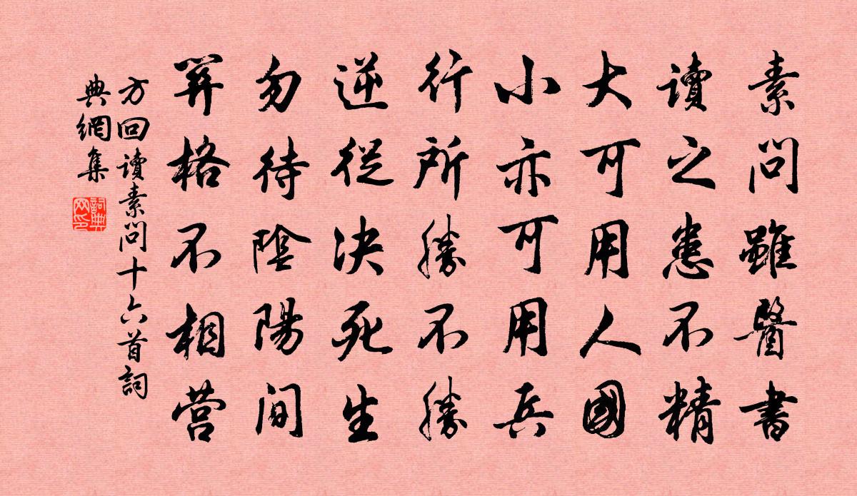 詩詞名句歷史字典書法欣賞書法字典國語詞典說文解字康熙字典古漢語字典標 題 作 者 詩 句 讀素問十六首作者:方回 朝代:宋代讀素問十六首原文素問雖醫書,讀之患不精。大可用人國,小亦可用兵。行所勝不勝,逆從決死生。勿待陰陽間,關格不相營。詩詞問答問:讀素問十六首的作者是誰?答:方回問:讀素問十六首寫於哪個朝代?答:宋代方回讀素問十六首書法欣賞讀素問十六首書法作品詩詞推薦題子瞻寺壁小山枯木二首黃庭堅〔宋代〕爛腸五斗對獄吏,白髮千丈渥滄浪。卻來獻納雲台表,小山桂枝不相忘。餞湖南趙提舉劉黻〔宋代〕丹肖偉人維南城,胸中有老東真甲兵。挈來庾江鎮魚壘,坐令□□□無驚。峒獠習斗不識機,亦出出草為常程。痛奉和襲美新秋言懷三十韻次韻陸龜蒙〔唐代〕身閒唯愛靜,籬外是荒郊。地僻憐同巷,庭喧厭累巢。岸聲搖舴艋,窗影辨蠨蛸。徑只溪禽下,關唯野客敲。竹岡句李伯祥〔宋代〕夜過修竹院,醉打老僧門。贈垂光同年徐夤〔唐代〕丹桂攀來十七春,如今始見茜袍新。須知紅杏園中客,終作金鑾殿里臣。逸少家風惟筆札,玄成世業是陶鈞。他時讀書有感戴表元〔宋代〕魯女悲嗟起夜深,當年枉卻淚沾襟。如今已免鄰人笑,老大知無欲嫁心。六弟親詣松楸時祭韓維〔宋代〕上冢還家古所榮,白頭今日倍傷情。懷今又出高陽里,夾道爭看太守旌。應念少游嘗有語,可能疏氏獨高明。昔湖謝純甫惠筆強至〔宋代〕管勁毫尖匠制宜,故人珍贈我何為。分殊定遠初投日,得似文通舊夢時。大手愧無才翰用,正心惟見友朋規。紛紛次韻文以正趙文〔宋代〕家住荒寒野水濱,老來無處避風塵。裸人至境有不裸,臣族幸然非亂臣。鬢影半因憂世白,眉端時為得詩伸。盛衰玉真公主山居儲光羲〔唐代〕山北天泉苑,山西鳳女家。不言沁園好,獨隱武陵花。曬蓑亭趙蕃〔宋代〕欲買寬閒結釣庵,一竿投老寄江南。是州亦在經營里,先手落君無可談。春日雜書十首 其一朱淑真〔宋代〕春來春去幾經過,不是今年恨最多。寂寂海棠枝上葉,照人清夜月如何。行飯暮歸陸游〔宋代〕宿疾去如掃,出門芒屨輕。菊叢寒蝶鬧,楓葉夕陽明。結陣看鴉集,銜衣喜犬迎。踟躇搔白首,詩句入經營。寄趙菊東山長三首熊禾〔宋代〕胡為此不採,卻采泮水芹。聖人望魯念,彼黍車轔轔。餘澤孟孫氏,管商何足論。新畲有陳根,猶是豐芑春。題余山人壁韓維〔宋代〕一室閉香林,蕭然物外心。棋聲敲月重,屐齒印苔深。竹徑茶煙細,山園鍛樹陰。會當逃世網,塵事締朋簪。次韻答少章陳師道〔宋代〕秦郎淮海士,才大難為弟。蔚然霜雪後,不受江漢洗。春畦不滿眼,采掇到芹薺。多病促餘年,秋光欲辭抵。儒林酹江月(題趙文炳枕屏)趙師俠〔宋代〕枕山平遠。記當年小閣,牙床曾展。圍幅高深春晝永,寂寂重簾不捲。棹檥西湖,人歸南陌,酒暈紅生臉。困來無戲答客問張鎡〔宋代〕桂隱芙蓉盛,柴門日日開。若無詩與酒,不請看花來。挽徐吏部二首劉克莊〔宋代〕昔過高陽里,宮牆許一窺。有樓藏冊子,無院處歌姬。羅雀閉窮巷,殺雞留晚炊。欲攜船鯽往,道遠嘆吾衰。覺公院施鳥石台李頎〔唐代〕石台置香飯,齋後施諸禽。童子亦知善,眾生無懼心。苔痕蒼曉露,盤勢出香林。錫杖或圍繞,吾師一念深。名句推薦火冷燈稀霜露下,昏昏雪意雲垂野。蘇軾《蝶戀花·密州上元》 山中夜來月,到曉不曾看。元好問《倪莊中秋》 微吟不道驚溪鳥,飛入亂雲深處啼。沈周《題畫》 修身者,智之府也;愛施者,仁之端也;取予者,義之符也;恥辱者,勇之決也;立名者,行之極也班固《漢書·傳·司馬遷傳》 露葉翻風驚鵲墜。暗落青林紅子。陳師道《清平樂·秋光燭地》 雲鬟綠鬢罷梳結,愁如回飆亂白雪。李白《久別離》 清鏡無雙影,窮泉有幾重。顧況《酅公合祔輓歌》 鼓吹助清賞,鴻雁起汀洲。蘇轍《水調歌頭·徐州中秋》 至今不會天中事,應是嫦娥擲與人。皮日休《天竺寺八月十五日夜桂子》 遊人記得承平事,暗喜風光似昔年。韋莊《長安清明》