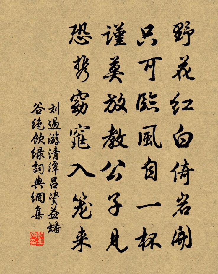 野花紅白倚岩開,只可臨風自一杯。謹莫放教公子見,恐攜窈窕入籠來。