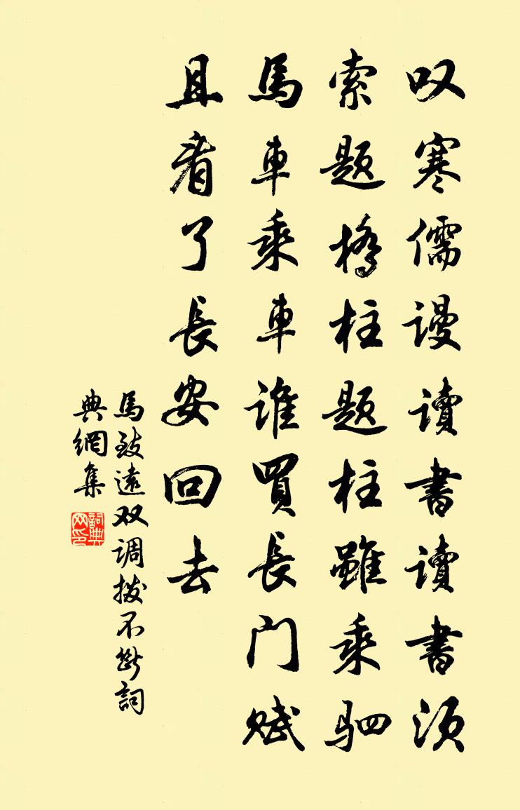 嘆寒儒,謾讀書,讀書須索題橋柱。題柱雖乘駟馬車,乘車誰買《長門賦》?且看了長安回去!