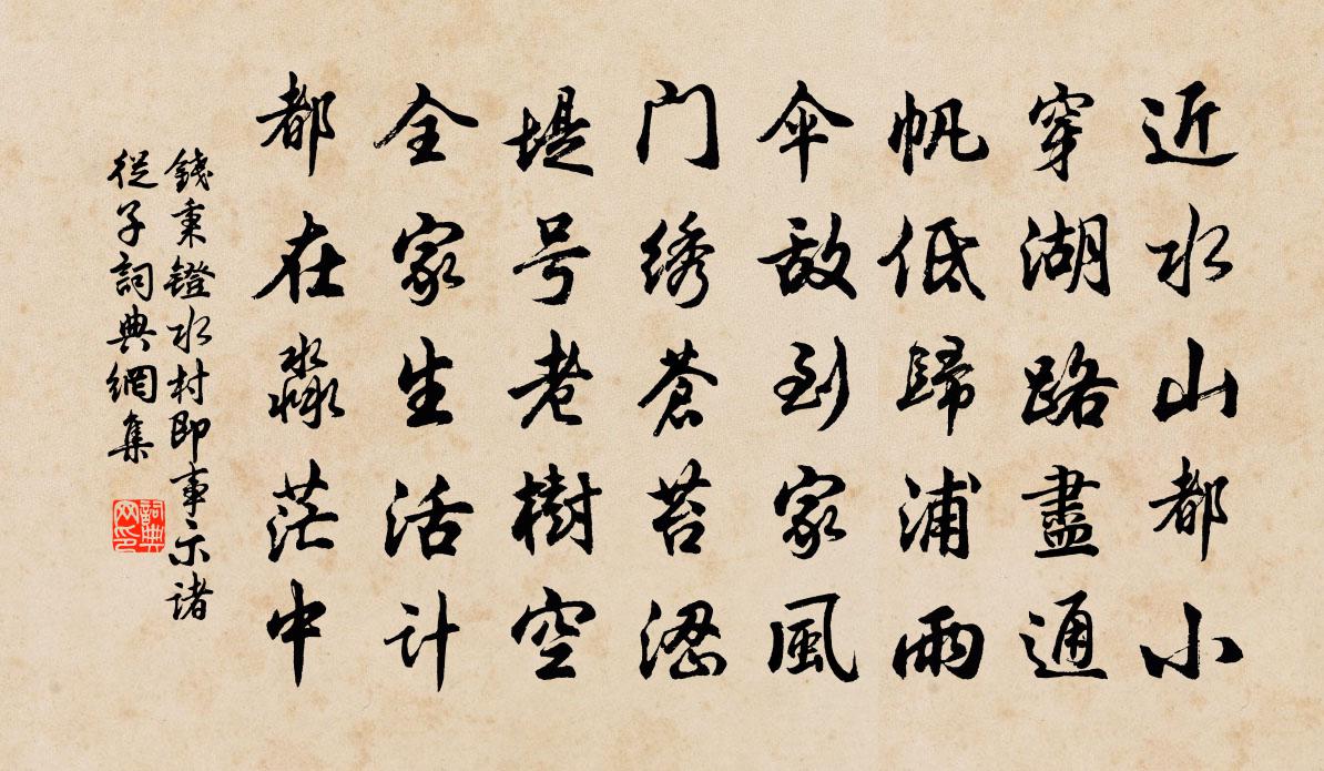 - 平岸小橋千嶂抱。柔藍一水縈花草。王安石《漁家傲·平岸小橋千嶂抱》
