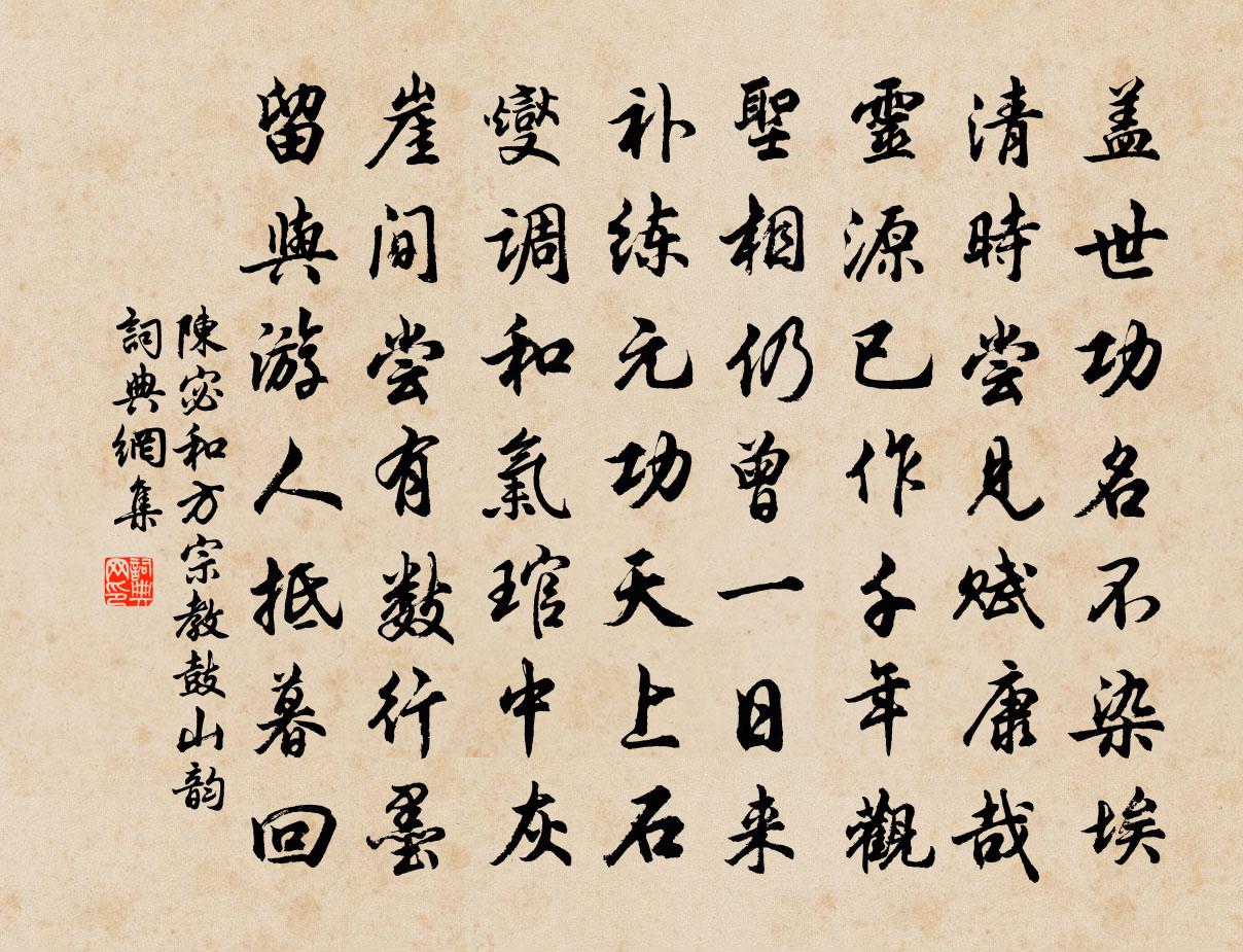 詩詞名句歷史字典書法欣賞書法字典國語詞典說文解字康熙字典古漢語字典標 題 作 者 詩 句 和方宗教鼓山韻作者:陳宓 朝代:宋代和方宗教鼓山韻原文蓋世功名不染埃,清時嘗見賦康哉。靈源已作千年觀,聖相仍曾一日來。補練元功天上石,燮調和氣琯中灰。崖間嘗有數行墨,留與遊人抵暮回。詩詞問答問:和方宗教鼓山韻的作者是誰?答:陳宓問:和方宗教鼓山韻寫於哪個朝代?答:宋代陳宓和方宗教鼓山韻書法欣賞和方宗教鼓山韻書法作品詩詞推薦瑞龍吟(和王聖與壽韻)劉辰翁〔宋代〕老人語。曾見昨日開爐,墜天花否。生年不合荒荒,枯根薄命,嬋娟誤汝。那知許。女樂如煙點點,江南處處。何金雞峰釋延壽〔宋代〕松蘿高鎮夏長寒,透出群峰書恐難。造化功成彰五德,洞天雲散露花冠。楊監又出畫鷹十二扇杜甫〔唐代〕近時馮紹正,能畫鷙鳥樣。明公出此圖,無乃傳其狀。殊姿各獨立,清絕心有向。疾禁千里馬,氣敵萬人將。憶昔終南山王維〔唐代〕太乙近天都,連山接海隅。白雲回望合,青靄入看無。分野中峰變,陰晴眾壑殊。欲投人處宿,隔水問樵夫。晨起三首趙文〔宋代〕山寒日不光,舉目斷人腸。兒童莫問路,怕是小篔簹。洋州三十景二樂榭鮮于侁〔宋代〕珍躋積翠外,絺結穹隆間。軒檻最佳處,四顧惟江山。新居用韓昌黎詩辛勤三十年以有此屋廬為韻蔡戡〔宋代〕南軒款佳客,北堂奉高年。兩廡辟數舍,幼累聊伏跧。未能大門閭,豈暇週牆垣。求足何時足,萬事姑隨緣。歸田詹初〔宋代〕歸田漫雲苦,田野樂有餘。忙去一犂黍,閒來萬卷書。食贍忘帝力,現見識心虛。隨地平生意,從今可自如。會昌二年春題池西小樓白居易〔唐代〕花邊春水水邊樓,一坐經今四十秋。望月橋傾三遍換,採蓮船破五回修。園林一半成喬木,鄰里三分作白頭。蘇李贈潁陽知縣劉燁著作魏野〔宋代〕門風是相門,積慶豈須論。祖德書儀在,科名榜帖存。政聲聞牧豎,墨跡見花村。物論將徵用,多應入諫垣。雙溪錢時〔宋代〕奔走袞雪夾中洲,聲撼危欄趾欲浮。冷眼青山青不斷,狂瀾千古自爭流。春日懷帥初舒岳祥〔宋代〕夜雨流如澗,春風響似雷。千愁芳草遠,一笑百花開。白髮痴貪酒,昏眸懶上台。懷人不可見,應棹剡船回。晦日陪顏使君白蘋洲集皎然〔唐代〕南朝分古郡,山水似湘東。堤月吳風在,湔裾楚客同。桂寒初結旆,蘋小欲成叢。時晦佳游促,高歌聽未終。次韻元發弟秋日德余庵書事二首王之道〔宋代〕十載江湖嘆斷蓬,夢魂時到帝王宮。珠簾高捲蝦須日,寶扇斜開雉尾宮。勿誚趙堯刀筆吏,須憐竇鞏囁嚅翁。兒童和相國元老邵雍〔宋代〕豈台未經慶,瑞雪下雲端。雖地盡成白,而天不甚寒。有年豐可待,盈尺潤難乾。畎畝無忘處,追蹤擊壤歡。題晝公院(一作四明蘭若贈寂禪師)周賀〔唐代〕叢木開風徑,過從白晝寒。舍深原草合,茶疾竹薪乾。夕雨生眠興,禪心少話端。頻來覺無事,盡日坐相看。種竹了題愛山亭范成大〔宋代〕灑掃宣華舍此君,煙中月下綠生塵。他年葉葉清風滿,莫忘今年借宅人。寄李不危張耒〔宋代〕憶昨東風吹馬蹄,瓦關分袂涕交揮。淮陽風物應如舊,獨在柯山送雁歸。和陶貧士七首蘇軾〔宋代〕夷齊恥周粟,高歌誦虞軒。產祿彼何人,能致綺與園。古來避世士,死灰或余煙,末路益可羞,朱墨手自研。淵明傳舍中竹一首王阮〔宋代〕澀蕊浮花不足看,歲寒獨與此君觀。籜龍滿野今千變,翔鳳何時下一餐。日對吏文瀟灑在,天生官地保全難。明年名句推薦楚鄉飛鳥沒,獨與碧雲還。錢起《送夏侯審校書東歸》 夜寒不近流蘇,只憐他、後庭梅瘦。毛滂《上林春令·十一月三十日見雪》 欲覺聞晨鐘,令人發深省杜甫《游龍門奉先寺》 人間有味是清歡。蘇軾《浣溪沙·細雨斜風作曉寒》 蓬頭稚子學垂綸,側坐莓苔草映身。胡令能《小兒垂釣》 錦江近西煙水綠,新雨山頭荔枝熟。張籍《成都曲》 吳興才人怨春風,桃花滿陌千里紅。李賀《送沈亞之歌·並序》 別院深深夏席清,石榴開遍透簾明。蘇舜欽《夏意》 松葉堪為酒,春來釀幾多。張九齡《答陸澧》 相思不管年華,喚酒吳娃市。吳文英《荔枝香近·送人游南徐》