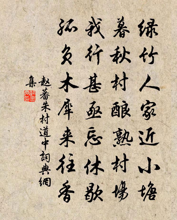 詩詞名句歷史字典書法欣賞書法字典國語詞典說文解字康熙字典古漢語字典標 題 作 者 詩 句 朱村道中作者:趙蕃 朝代:宋代朱村道中原文綠竹人家近小塘,暮秋村釀熟村場。我行甚亟忘休歇,孤負木犀來往香。詩詞問答問:朱村道中的作者是誰?答:趙蕃問:朱村道中寫於哪個朝代?答:宋代趙蕃朱村道中書法欣賞朱村道中書法作品詩詞推薦送楊敬之倅湖南李涉〔唐代〕久嗟塵匣掩青萍,見說除書試一聽。聞君卻作長沙傅,便逐秋風過洞庭。酒熟憶皇甫十白居易〔唐代〕新酒此時熟,故人何日來?自從金谷別,不見玉山頹。疏索柳花碗,寂寥荷葉杯。今冬問氈帳,雪裡為誰開?次韻孫興宗秋懷王之道〔宋代〕秋山赫赫明丹楓,秋天隱隱分玄鴻。不知眼界闊多少,九華突兀撐晴空。嗟予老病百事懶,誰能強勉追兒童。讀書書法家歐陽詢佚名〔〕歐陽詢嘗行,見古碑,晉索靖所書。駐馬觀之,良久乃去。數百步復反,下馬佇立,及疲,乃布裘坐觀,因宿其旁送張都官江南東路提刑司馬光〔宋代〕楚俗號難治,司刑尤擇賢。危疑片言決,舒慘一方專。松不彫寒色,絲曾斷直弦。清風過江外,應在下車前。村獠劉克莊〔宋代〕村獠席地睡,咍噎喚不知。老夫將北面,渠莫是希夷。次韻和盛博士寄贈虞部李郎中之什楊億〔宋代〕門牆日已駿,德望闇然彰。弟草西垣詔,身為南省郎。塤箎歡並奏,龍虎儼成行。宴客牛心炙,朝天雞舌香。曲池雜詩二十七首曹勛〔宋代〕道人身在水雲鄉,誦罷楞伽日乍長。滿坐好風驅熱惱,一庭濃綠作清涼。上十四吟十首劉克莊〔宋代〕黠兒蒙蔽聚群陰,豈料雲收杲日臨。壞證遺憂與宗社,捷書分喜到山林。擎天畢竟還高手,偃月從初謬用心。客自合下會食贈張文潛孔武仲〔宋代〕錦帶貂裘亦不惡,宿酒移春入顏角。人憐枳棘棲鳳凰,誰許青山入雲閣,為我坐誦離騷篇,森羅屈宋俱眼前。卻歸酬樂天嘆窮愁見寄元稹〔唐代〕病煎愁緒轉紛紛,百里何由說向君。老去心情隨日減,遠來書信隔年聞。三冬有電連春雨,九月無霜盡火雲。並與哭方主簿伋劉克莊〔宋代〕鶉衣不似擁千金,用破燈窗一世心。太學空聞能賦久,春官未察讀書深。柴車巾出身猶健,槐簡拈歸病已侵。寂寞龍池寺望月寄韋使君閻別駕司空曙〔唐代〕清光此夜中,萬古望應同。當野山沈霧,低城樹有風。花宮紛共邃,水府皓相空。遙想高樓上,唯君對庾公。知仁宗皇帝輓歌詞二首司馬光〔宋代〕霧曉銅魚躍,霜寒閶闔開。哀聲際海發,靈仗拂天來。雖寢嚴虛位,重閽閽夜台。柏城空有路,無復屬車回。祁山歌上制帥聞敵退清水縣作吳泳〔宋代〕祁山之西當太白,戰士彎弓抱明月。散燒煙火夜宿兵,遙見狼頭一星滅。明朝探騎前來報,為言敵死秦川道。牌使江亭晚思二首史彌寧〔宋代〕風煙酬酢費吟箋,剩句殘章尚滿前。際晚奚囊收未盡,一時寄在白歐邊。端硯六絕陳宓〔宋代〕至寶非關少識真,都緣未睹十城珍。如何絕域窮南地,卻有唐朝輔相人。巴陵贈賈舍人李白〔唐代〕賈生西望憶京華,湘浦南遷莫怨嗟。聖主恩深漢文帝,憐君不遣到長沙。西湖獨步沈說〔宋代〕平湖開霽色,寒碧照空心。小立背橋影,緩行隨柳陰。向年勞遠夢,到日記曾吟。荷盪成茭地,蕭蕭秋意深。三里塘掐梅葉樾〔宋代〕扶疏不耐繁華,意足自然清絕。壁間幻出橫斜,祗欠紗窗明月。名句推薦潤逼琴絲,寒侵枕障,蟲網吹黏簾竹。周邦彥《大酺·越調春雨》 萬物靜觀皆自得,四時佳興與人同。程顥《秋日》 況故人新擁,漢壇旌節。辛棄疾《滿江紅·漢水東流》 成事不說,遂事不諫,既往不咎。孔子弟子《論語·八佾篇》 雌雄空中鳴,聲盡呼不歸。白居易《燕詩示劉叟》 遺廟丹青落,空山草木長。杜甫《武侯廟》 滿地蘆花和我老,舊家燕子傍誰飛?文天祥《金陵驛二首·其一》 夫天地者,萬物之逆旅也;光陰者,百代之過客也。李白《春夜宴桃李園序 / 春夜宴從弟桃花園序》 誰憐散髻吹笙,天涯芳草關情。納蘭性德《清平樂·孤花片葉》 八百里分麾下炙,五十弦翻塞外聲。辛棄疾《破陣子·為陳同甫賦壯詞以寄之》