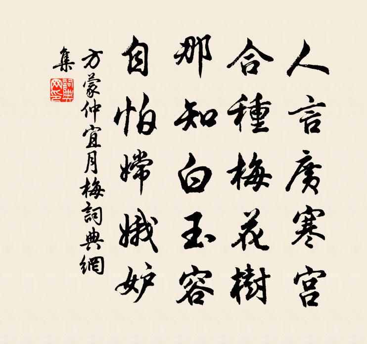 詩詞名句歷史字典書法欣賞書法字典國語詞典說文解字康熙字典古漢語字典標 題 作 者 詩 句 宜月梅作者:方蒙仲 朝代:宋代宜月梅原文人言廣寒宮,合種梅花樹。那知白玉容,自怕嫦娥妒。詩詞問答問:宜月梅的作者是誰?答:方蒙仲問:宜月梅寫於哪個朝代?答:宋代方蒙仲宜月梅書法欣賞宜月梅書法作品詩詞推薦魏氏園林人賦一物得秋亭萱草陳子昂〔唐代〕昔時幽徑里,榮耀雜春叢。今來玉墀上,銷歇畏秋風。細葉猶含綠,鮮花未吐紅。忘憂誰見賞,空此北堂中。大有·九日潘希白〔宋代〕戲馬台前,採花籬下,問歲華、還是重九。恰歸來、南山翠色依舊。簾櫳昨夜聽風雨,都不似、登臨時候。一片宋送致仕沈彬郎中游茅山李中〔唐代〕掛卻朝冠披鶴氅,羽人相伴恣遨遊。忽因風月思茅嶺,便挈琴樽上葉舟。野寺宿時魂夢冷,海門吟處水雲秋。華陽題徐氏書院黃庭堅〔宋代〕學書但學溪老鵝,讀書可觀樵父歌。紫髯將軍不復見,空餘岩桂綠婆娑。驀山溪朱敦儒〔宋代〕元來塵世。放著希奇事。行到路窮時,果別有、真山真水。登臨任意,隨步白雲生,三秀草,九花藤,滿袖瓊瑤蕊宿楊塘店楊萬里〔宋代〕吾生行路何時了,舊館重來身漸老。路旁松桂只十年,如今修修舊小小。昨宵宿處又雲邊,來宵還似今宵然。陳跡晚晴出行近村閒詠景物陸游〔宋代〕雪雲吹盡木陰移,正是先生曳杖時。老挬行將新長犢,空桑臥出寄生枝。醫翁暮過囊探藥,筮叟晨占手布蓍。誰謂菩薩蠻馮延巳〔唐代〕欹鬟墮髻搖雙槳,採蓮晚出清江上。顧影約流萍,夢歌嬌未成。相逢顰翠黛,笑把珠□解。家住柳陰中,畫橋東復小舟游近村舍舟步歸陸游〔宋代〕不識如何喚作愁,東阡南陌且閒遊。兒童共道先生醉,折得黃花插滿頭。送強甫赴漳粹二首劉克莊〔宋代〕平生受用語,祖道試重拈。御下慈親恕,持身處女嚴。民歌齊相靜,守說許丞廉。寬作期年別,吾衰勿久淹。讀陶淵明詩李復〔宋代〕淵明才力高,詩語最蕭散。矯首捐末事,闊步探幽遠。初若不相屬,再味意方見。曠然閒寂中,奇趣高蹇{左山右林文節參候帖贊岳珂〔宋代〕平甫之與荊公,蓋當同而異,而公則當異而同者也。當刺謁之相從,以朋友之切磋,極兄弟之友恭。使契約異之見青門飲曹組〔宋代〕山靜煙沈,岸空潮落。晴天萬里,飛鴻南渡。冉冉黃花,翠翅金鈿,還是倚風凝露。歲歲青門飲,盡龍山、高陽儔雜劇·立成湯伊尹耕莘鄭光祖〔元代〕楔子(沖末扮東華仙領仙童上,雲)玉闕光輝滿太玄,瓊樓霞彩自幽然。崑崙照徹靈虛境,別是蓬壺一洞天。貧道句薛紹彭〔宋代〕自然鷗鳥親,日與漁樵遇。僧清順新作垂雲亭蘇軾〔宋代〕江山雖有餘,亭榭苦難穩。登臨不得要,萬象各偃蹇。惜哉垂雲軒,此地得何晚。天功爭向背,詩眼巧增損。路窮一絡索·送蜀守蔣龍圖陳鳳儀〔宋代〕蜀江春色濃如霧。擁雙旌歸去。海棠也似別君難,一點點、啼紅雨。此去馬蹄何處。沙堤新路。禁林賜宴賞花時,有適釋文珦〔宋代〕破屋無兄弟,拙者所棲息。衡門未嘗啟,聲利詎能迫。資身不求備,百事遂省力。糞埽皆可衣,草木皆可食。春來桂隱紀詠山堂張鎡〔宋代〕誰無數椽屋,蓋成多是俗。如此亂山中,非關松石竹。海棠雪湖〔宋代〕君王勤儉御經筵,閒卻羊車今幾年。白髮宮人無職事,海棠花下曬西氈。名句推薦憶共人人睡魂蝶亂,夢鸞孤。趙長卿《更漏子·燭消紅》 亂則國危,治則國安。荀子《荀子·王霸》 貧而無諂,富而無驕孔子弟子《論語·學而篇》 笑漸不聞聲漸悄,多情卻被無情惱。蘇軾《蝶戀花·春景》 患名之不立,不患年之不長。陳壽《三國志·魏書·劉司馬梁張溫賈傳》 不見又思量,見了還依舊。李之儀《謝池春·殘寒銷盡》 奈南牆冷落,竹煙槐雨。吳文英《惜秋華·七夕前一日送人歸鹽官》 華而不實,恥也。左丘明《國語·晉語·秦伯享重耳以國君之禮》 有情不管別離久。情在相逢終有。晏幾道《秋蕊香·池苑清陰欲就》 丹漆不文,白玉不雕佚名《孔子家語·好生》