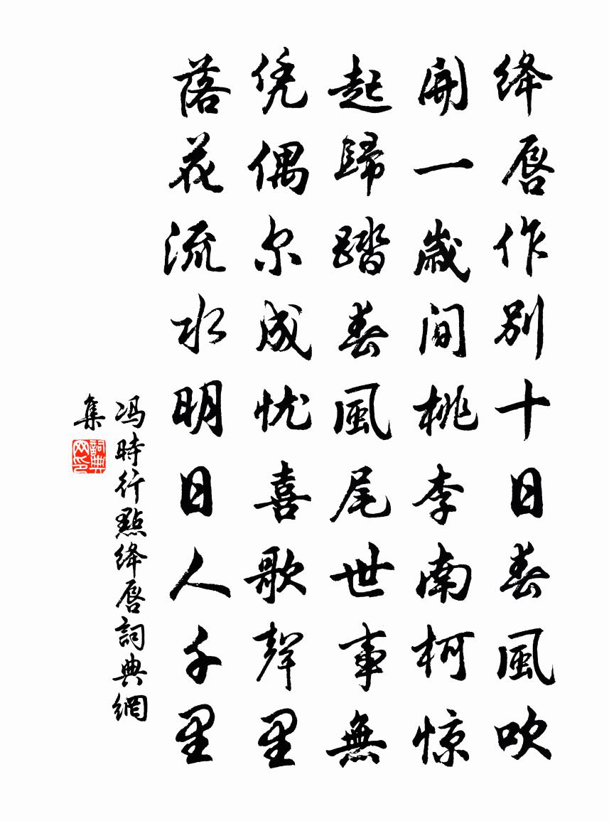 詩詞名句歷史字典書法欣賞書法字典國語詞典說文解字康熙字典古漢語字典標 題 作 者 詩 句 點絳唇作者:馮時行 朝代:宋代點絳唇原文絳唇作別十日春風,吹開一歲間桃李。南柯驚起。歸踏春風尾。世事無憑,偶爾成憂喜。歌聲里。落花流水。明日人千里。詩詞問答問:點絳唇的作者是誰?答:馮時行問:點絳唇寫於哪個朝代?答:宋代馮時行點絳唇書法欣賞點絳唇書法作品詩詞推薦桃木趙福元〔宋代〕神仙擁出蓬萊宮,羅幃繡幙圍香風。雲鬟繞繞梳翡翠,頳顏滴滴勻猩紅。千嬌百媚粲相逐,爛醉芳春逞芳馥。朝陽即事君子堂五首白玉蟾〔宋代〕自點雌黃改自詩,苧衣不著著蕉衣。前山何故枯松上,半月巢空鶴不歸。次韻養源避暑西湖高斯得〔宋代〕牆擁千竿竹,簾縈一穗香。避暄情散郎,懷舊意悲涼。小簟琉璃色,新醅琥珀光。夢回聞剝啄,渾欲懶衣裳。季夏郊墅即事程公許〔宋代〕性僻鄰牆亦懶過,日長何事可銷磨。雲藍展向風欞寫,恨未疏池養白鵝。過如春堂觀趙德麟詩貼因次趙成卿韻項安世〔宋代〕阿麟文采近西京,付與而分翰墨名。今日如春堂上看,當年遺貼子孫榮。元豐曲里承平話,小杜詩中戰伐情。濟上殘句:山州過夏如山寺王禹偁〔宋代〕山州過夏如山寺,銷盡機塵見道心。送人歸吳李頻〔唐代〕何人不歸去,君去是閒人。帝里求相識,山家即近鄰。交情吾道可,離思柳條新。未飲青門酒,先如醉夢身。蠶女司馬扎〔唐代〕養蠶先養桑,蠶老人亦衰。苟無園中葉,安得機上絲。妾家非豪門,官賦日相追。鳴梭夜達曉,猶恐不及時。但憂道人歌楊維楨〔元代〕道人飛來朗風岑,玄都上下三青禽。傅桑已作青海斷,鰲丘又逐羅浮沉。初見蜍精生月腹,前身搗藥婆娑明。還仙別周侍郎五首彭龜年〔宋代〕東家十畝橘,治蠹苛天獄。課童事剔決,生意長不足。不如西家農,末麥上已熟。一朝種子落,坐見天地綠。新昌道中林表民〔宋代〕殘村時有兩三家,繚繞清脂路更賒。客里不知春去盡,滿山風雨落桐花。書案上三種梅三首趙蕃〔宋代〕我貴當由知我希,蠟梅全不事芳菲。自非牢落山中士,誰可與之同一歸。題龍潭西齋李群玉〔唐代〕寂寞幽齋暝煙起,滿徑西風落松子。遠公一去兜率宮,唯有面前虎溪水。仲宣樓周弼〔宋代〕仲宣徙倚思歸後,又復誰傳獨步名。自昔城闉雖尚在,至今波浪未嘗平。半規赤日沈荒渚,一縷黃煙起廢城。梅落都下竹枝詞方文〔清代〕都門本是利名關,來去紛紛各不閒。亦有京官十數載,從無偷眼看西山。寄季申陳與義〔宋代〕雨歇城南泥未乾,遙知獨立整衣冠。舊時鄴下劉公幹,今日遼東管幼安。綠陰展盡身猶遠,黃鳥飛來節已闌。安得壽李悅齋五首和三勞使尹使君韻程公許〔宋代〕南薰諧玉軫,舜殿載賡歌。天憫蒼生苦,人如安石何。無心咄咄,有術辦多多。肯學癯山澤,楸枰詫爛柯。贈行腳僧子蘭〔唐代〕世界曾行遍,全無行可修。炎涼三衲共,生死一身休。片斷雲隨體,稀疏雪滿頭。此門無所著,不肯暫淹留。香爐峰下新置草堂,即事詠懷,題於石上白居易〔唐代〕香爐峰北面,遺愛寺西偏。白石何鑿鑿,清流亦潺潺。有松數十株,有竹千餘竿。松張翠傘蓋,竹倚青琅玕。其下約山中友仇遠〔宋代〕望極秋空無片雲,前山歷歷見遙岑。新鴻漸到邊城靜,舊雨不來汀草深。仙李有時曾入夢,伯桃死後少知心。如君名句推薦江山如畫,一時多少豪傑蘇軾《念奴嬌·赤壁懷古》 博觀而約取,厚積而薄發蘇軾《稼說送張琥》 謙似乎諂,然謙是虛心,諂是媚心;故處世貴謙,而不可諂。王永彬《圍爐夜話·第四三則》 平蕪盡處是春山,行人更在春山外。歐陽修《踏莎行·候館梅殘》 有不可及之志,必有不可及之功王永彬《圍爐夜話·第一三O則》 今人不見古時月,今月曾經照古人。李白《把酒問月·故人賈淳令予問之》 稽於眾,捨己從人,不虐無告,不廢困窮佚名《尚書·虞書·大禹謨》 慘慘時節盡,蘭葉復凋零。徐幹《室思》 一苦一樂相磨練,練極而成福者,其福始久洪應明《菜根譚·概論》 兵戈既未息,兒童盡東征。杜甫《羌村三首·其三》