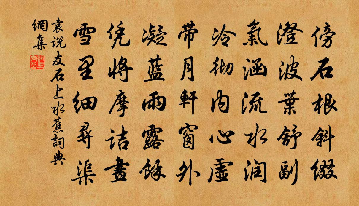 詩詞名句歷史字典書法欣賞書法字典國語詞典說文解字康熙字典古漢語字典標 題 作 者 詩 句 石上水蕉作者:袁說友 朝代:宋代石上水蕉原文傍石根斜綴,澄波葉舒副。氣涵流水潤,冷徹內心虛。帶月軒窗外,凝藍雨露余。憑將摩詰畫,雪裡細尋渠。詩詞問答問:石上水蕉的作者是誰?答:袁說友問:石上水蕉寫於哪個朝代?答:宋代袁說友石上水蕉書法欣賞石上水蕉書法作品詩詞推薦久不領衡州舅氏書以長句問動靜趙蕃〔宋代〕寥闊書題久不聞,可憐魚雁動成群。未傳春興衡陽紙,長憶江東日暮雲。見說風帆京口泊,又雲山色敬亭分。莫言偈頌一百二十三首釋普度〔宋代〕清明寒食節,韶光爛漫時。野花迷古逕,回首暮雲低。紙飛處杜鵑啼,不是苦心人不知。悶極有作陸游〔宋代〕貴已不如賤,狂應又勝痴。新寒壓酒夜,微雨種花時。堂下藤成架,門邊枳作籬。老人無日課,有興即題詩。句王鎬〔宋代〕仁心廣大麟難比,壽骨清奇鶴不知。病中絕句陸游〔宋代〕造物今年憫我勞,微痾得遂閉門高。黃紬被暖青氈穩,不怕郊原雪意豪。雨晴徐步陳與義〔宋代〕百年幾晴朝,徐步山徑濕。忽悟春已深,鳴禽飛相及。雪消眾綠淨,霧罷群峰立。澗邊千嵁岩,今日何復集。答趙尉陳宓〔宋代〕親友鄉閭恨少逢,多因遊宦得從容。他年儻過鳴珂里,只恐飛翰不許從。感春劉宰〔宋代〕隔溪啼鳥弄新音,繞岸蒲牙迸綠簪。花事只今強半在,不妨風雨攪春陰。送范令巽之赴陝縣強至〔宋代〕陝人西望眼,唯認馬蹄東。柳縣追陶令,棠郊謁召公。問農游手勸,聽訟下情通。千載萊蕪後,傳家有素風。虞美人·好風微揭簾旌起孫光憲〔五代〕好風微揭簾旌起,金翼鸞相倚。翠檐愁聽乳禽聲,此時春態暗關情,獨難平。畫堂流水空相翳,一穗香搖曳。教人到郡未浹日,登西樓見樂天題詩,因即事以寄劉禹錫〔唐代〕湖上收宿雨,城中無晝塵。樓依新柳貴,池帶亂苔青。雲水正一望,簿書來繞身。煙波洞庭路,愧彼扁舟人。和王種高遺丁求安二詩王洋〔宋代〕未扣玄關隱士居,曾尋舊繡理天吳。自從拭目來冰鑒,悔為兒啼拆海圖。宮詞長孫翱〔唐代〕一道甘泉接御溝,上皇行處不曾秋。誰言水是無情物,也到宮前咽不流。偈頌一百零二首釋慧遠〔宋代〕陝府鐵牛口門窄,嘉州石佛耳輪長。驚起暮天沙上雁,海門斜去兩三行。上冊寶十三首真宗〔宋代〕濯濯其英,殖殖其庭。有來群工,麥我思成。嘉肴既將,旨酒既清。雍和不遲,福祿來寧。寄懷南北故人黃滔〔唐代〕秋風昨夜落芙蕖,一片離心到外區。南海浪高書墮水,北州城破客降胡。玉窗挑鳳佳人老,綺陌啼鶯碧樹枯。嶺上寄題喻叔奇國傅郎中園亭二十六詠鉤磯楊萬里〔宋代〕烏龍灘下白雲堆,上有狂奴舊鉤台。一夕被君偷取去,至今猶帶漢莓苔。酬曾無逸架閣見寄張鎡〔宋代〕貪閒常怕拆人書,今日開緘病已無。數紙雲情動金石,一篇天籟集笙竽。心交物類相感志,願在衣冠盛事圖。稍稍題舜廟張濯〔唐代〕古都遺廟出河濆,萬代千秋仰聖君。蒲坂城邊長逝水,蒼梧野外不歸雲。寥寥象設魂應在,寂寂虞篇德已聞。向晚題吳郡王家雙竹曹勛〔宋代〕環碧亭前碧玉枝,森森連璧揖多姿。節涵宿雨蒼龍並,梢舞晴雲翠鳳差。架雪凌霜俱有志,懷仁抱義本同時。戚垣名句推薦一言足以召大禍,故古人守口如瓶,惟恐其覆墜也王永彬《圍爐夜話·第四八則》 過春風十里,盡薺麥青青。姜夔《揚州慢·淮左名都》 白鳥明邊帆影直。隔江聞夜笛。周密《聞鵲喜·吳山觀濤》 順天者存,逆天者亡。孟子《孟子·離婁章句上·第七節》 路出寒雲外,人歸暮雪時。盧綸《李端公 / 送李端》 審定有無與其實虛,隨其嗜欲以見其志意。王詡《鬼谷子·捭闔》 黃鸝囀處誰同聽,白菊開時且剩過。司空圖《白菊雜書四首》 願隨孤月影,流照伏波營。沈如筠《閨怨二首·其一》 乘我大宛馬,撫我繁弱弓。張華《壯士篇》 無求到處人情好,不飲任他酒價高。佚名《增廣賢文·上集》