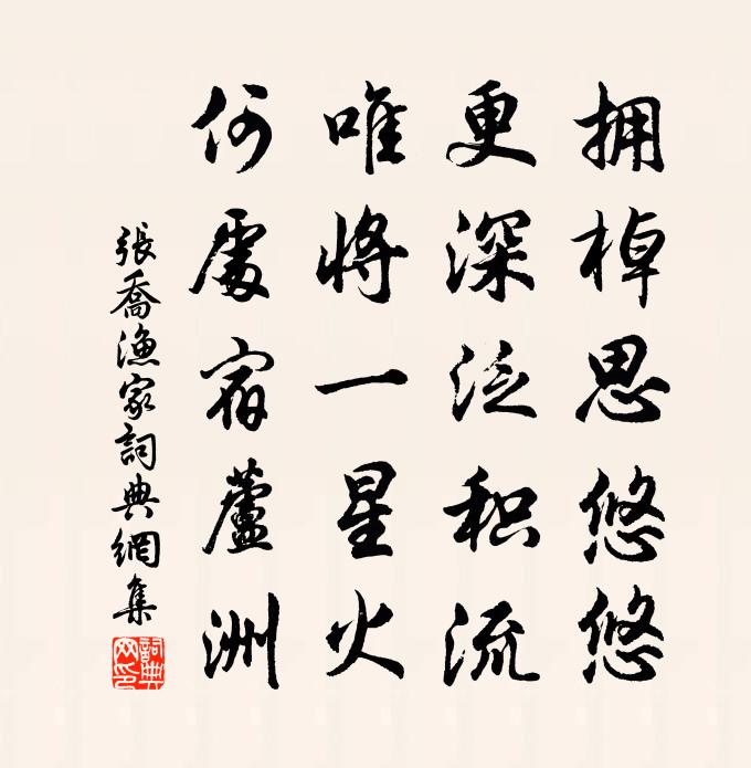 詩詞名句歷史字典書法欣賞書法字典國語詞典說文解字康熙字典古漢語字典標 題 作 者 詩 句 漁家作者:張喬 朝代:唐代漁家原文擁棹思悠悠,更深泛積流。唯將一星火,何處宿蘆洲。詩詞問答問:漁家的作者是誰?答:張喬問:漁家寫於哪個朝代?答:唐代問:漁家是什麼體裁?答:五絕張喬漁家書法欣賞漁家書法作品注釋全唐詩:卷639-19詩詞推薦呈陳和叔王安石〔宋代〕毀車為屋僅容身,三歲相要薄主人。晝寓槨磚常至夜,冬沿溝彴復尋春。南陔不洎公歸里,蒼墓垂成我喪親。後會飛雪釋智愚〔宋代〕黑風袞袞六花輕,天列陰岩勢欲傾。到此只知膚粟冷,夜深誰聽瀑泉聲。水龍吟蘇軾〔宋代〕萬里,不可到。天台有司馬子微,身居赤域,名在絳闕,可往從之。”自然乃還,受道於子微,白日仙去。子微著送菊潭王明府盧綸〔唐代〕組綬掩衰顏,輝光里第間。晚涼經灞水,清晝入商山。行境逢花發,彈琴見鶴還。唯應理農後,鄉老賀君閒。瑞鶴仙令徐似道〔宋代〕西子湖邊春正好,輸他公子王孫。落花香趁馬蹄溫。暖煙桃葉渡,晴日柳枝門。中有能詩狂處士,閒將一鶴隨軒。夜窗書事史彌寧〔宋代〕一燼銀燈兩架書,十年伴我夜窗虛。不因見性明心俊,定自人呼作蠹魚。和嚴惲落花詩王樞〔唐代〕花落花開人世夢,衰榮閒事且持杯。春風底事輕搖落,何似從來不要開。三使相楊維楨〔元代〕金床脫落龍作鼠,崔相陸相不敢語。銀撾畫地數罪名,奉璽前拜天子婦。上書進士空遑遑,桓文霸烈誰敢當?明年奉和滁州九詠九首庶子泉曾鞏〔宋代〕琅琊石泉清照人,里無泥沙無無塵。風翻日炙夏潦盡,古練一匹常奫淪。句楊徽之〔唐代〕開盡菊花秋色老,落殘桐葉雨聲寒。雪中見梅花二首李覯〔宋代〕數枝斜出短牆陰,密雪無端苦見侵。天意似憐群木妒,盡教枯朽作瑤林。浣溪沙(九月十二夜務亭作)毛滂〔宋代〕碧浸澄沙上下天。曲堤疏柳短長煙。月明不待十分圓。鑿落未空牙板鬧,闌乾久憑袷衣寒。嬋娟薄倖冷相看。曾節夫罷官歸旴江以小詩寄別張栻〔宋代〕俗隘寧為異,言深敢自欺。如何幕中辯,翻作暗投疑。行李秋將半,家園菊正滋。反躬端得味,當復有餘師。野興陸游〔宋代〕飽見人間行路難,暫陪鵷鷺意先闌。集仙院床三題石,神武門前兩掛冠。飢臥了無千里志,倦飛元怯九霄寒。客來舟次卷雪樓四首陶夢桂〔宋代〕虎豹從渠守九關,不求進步只求閒。歸裝幸有新時在,一字千金盡買山。乾明節祝聖壽四錫〔宋代〕日上扶桑第一枝,東方樓閣曙光時。萬幫將啟乾明宴,兩制應宣御製詩。樂感羽毛皆率舞,神和福祿自來宜。諫垣某數年前蒙集仙盛公慰薦今方用是改官近以啟強至〔宋代〕淮邊曾以此身歸,每見嘗寬使者威。一昨薦章蒙首上,十年墜翼恰重飛。功名未果時看劍,報效猶乖夜攬衣。聊向江南曲四首儲光羲〔唐代〕綠江深見底,高浪直翻空。慣是湖邊住,舟輕不畏風。逐流牽荇葉,緣岸摘蘆苗。為惜鴛鴦鳥,輕輕動畫橈。日暮病瘡白居易〔唐代〕門有醫來往,庭無客送迎。病銷談笑興,老足嘆嗟聲。鶴伴臨池立,人扶下砌行。腳瘡春斷酒,那得有心情。再用前韻袁甫〔宋代〕兩地參天命曰人,靈龜端合取諸身。笑渠到處間尋覺,直信人言井有仁。名句推薦飛光飛光,勸爾一杯酒。李賀《苦晝短》 闌乾風冷雪漫漫,惆悵無人把釣竿。姜夔《釣雪亭》 君子之道,暗然而日章;小人之道,的然而日亡。子思《中庸·第三十三章》 千里江山寒色遠,蘆花深處泊孤舟,笛在月明樓。李煜《望江南·閒夢遠》 不知則問,不能則學,雖能必讓,然後為德。荀子《荀子·非十二子》 君家何處住,妾住在橫塘。崔顥《長干行·君家何處住》 發號施令,若汗出於體,一出而不復也。吳兢《貞觀政要·卷八·論赦令》 兒女紛紛夸結束,新樣釵符艾虎。劉克莊《賀新郎·端午》 年年歲歲望中秋,歲歲年年霧雨愁。曾幾《癸未八月十四日至十六夜月色皆佳》 當斷不斷,反受其亂班固《漢書·傳·高五王傳》