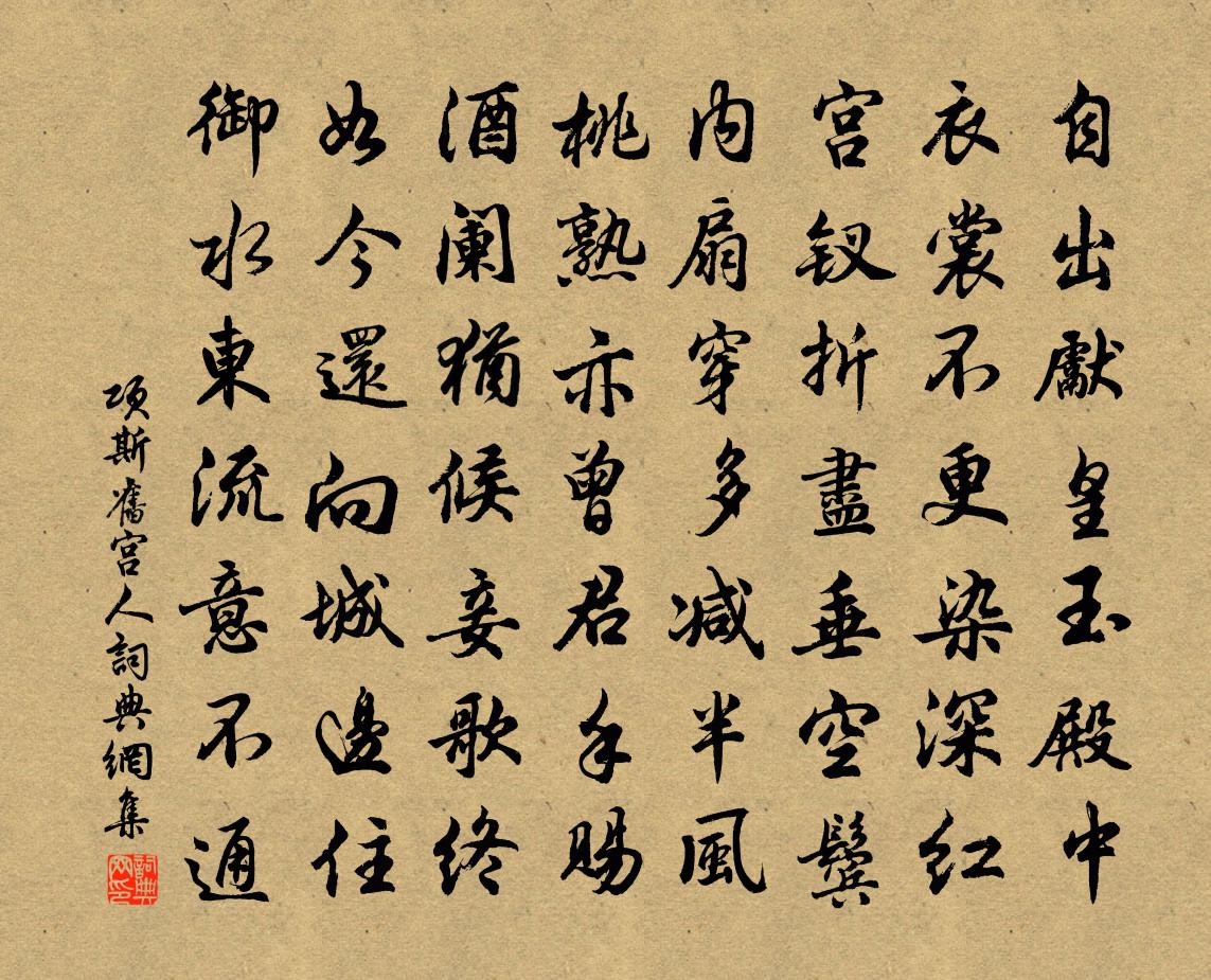 詩詞名句歷史字典書法欣賞書法字典國語詞典說文解字康熙字典古漢語字典標 題 作 者 詩 句 舊宮人作者:項斯 朝代:唐代舊宮人原文自出先皇玉殿中,衣裳不更染深紅。宮釵折盡垂空鬢,內扇穿多減半風。桃熟亦曾君手賜,酒闌猶候妾歌終。如今還向城邊住,御水東流意不通。詩詞問答問:舊宮人的作者是誰?答:項斯問:舊宮人寫於哪個朝代?答:唐代問:舊宮人是什麼體裁?答:七律項斯舊宮人書法欣賞舊宮人書法作品注釋全唐詩:卷554-89詩詞推薦淳熙四年二月既望靜江守臣張某奉詔勸農於郊張栻〔宋代〕惟國之法,燁燁其垂。使爾知避,豈欲爾施。奧村晚望黃公度〔宋代〕山逐寒雲斷,天隨暮靄低。稻畦迷上下,樵逕自東西。故國存書劍,他鄉尚鼓鼙。涓埃期補報,未敢卜幽棲。泊鴨步楊萬里〔宋代〕江流自在水風輕,雲去天來半欲晴。雨岸東西三十里,李花獨樹隔江明。寄聖水老法照林表民〔宋代〕五載禪林結淨緣,又飛一錫過甘泉。曉池洗缽雲常潤,夜閣繙經月自圓。碧眼誰能庭畔柏,赤身難並社中蓮。飽看恩門小諫雨中乞菊栽鄭谷〔唐代〕握蘭將滿歲,栽菊伴吟詩。老去慵趨世,朝回獨繞籬。遞香風細細,澆綠水瀰瀰。只共山僧賞,何當國士移。孤根余既和樂天詩而喜於年及之心猶不能自已又復吳芾〔宋代〕坐閱流年已七旬,從前憂道不憂貧。肯教世指為痴漢,只願鄉稱作善人。老去固應忘物我,歸來豈是負君親。嘗聞題清江胡民瞻忍堂楊萬里〔宋代〕俗物茫茫奈我何,兒女昵昵不用呵。先生笑問有酒麽,醉來得句自長喔。家風孝友春風軟,床無黃金且青簡。君不詠懷阮籍〔魏晉〕二妃游江濱,逍遙順風翔。交甫懷環佩,婉孌有芬芳。猗靡情歡愛,千載不相忘。傾城迷下蔡,容好結中腸。感激洞仙歌(癸亥生朝和居厚弟韻,題謫仙像)劉克莊〔宋代〕上林全樹,曾借君棲宿。朝過瑤台暮群玉。忽翩然、脫下宮錦袍來,□□□,卻向齊州受籙。等閒揮醉筆,咳唾千熙台王洋〔宋代〕不將台榭壓城闉,爭奈長淮四面春。聞道公餘一吟嘯,滿天風月助精神。石洞二首李流謙〔宋代〕香霧團成蓋,茶花白勝酥。對書閒境界,覓句靜工夫。客信因魚得,歸程約雁俱。庭前海棠樹,尚及一看無。和劉賓客玉蕣薛濤〔唐代〕瓊枝玓瓅露珊珊,欲折如披雲彩寒。閒拂朱房何所似,緣山偏映日輪殘。滿江紅 玉簪次班彥功韻張雨〔元代〕玉導纖長,頓化作、雲英香莢。風弄影、錄鬟撩亂,搔頭斜插。璞小還思釵燕並,叢幽略比蕉心狹。看柔須、點綴曾少卿約飲即席賦魏了翁〔宋代〕深院簾旌晝掩門,海牛掛出好乾坤。日烘花影漲春膩,風撼柳絲明醉痕。極目翦來齊翠嶂,關心看不斷青原。明朝右軍祠堂高祖之〔宋代〕一麾東晉守,八體入神書。墨水傳遺蹟,蘭亭表舊居。掛冠高興逸,坦腹舊床虛。峻岭崇山景,依然想似初。廬山唐寅〔明代〕匡廬山高高几重,山雨山濃復濃。燒丹未住屏風迭,騎驢來看香爐峰。江上烏帽誰渡水,岩際白衣人采松。古句又答袁卿相子一首劉克莊〔宋代〕百篇端可補詩亡,形穢何堪在玉傍。方薴蘿山尤覺艷,入旃檀國不知香。一枝我欲簪蓬葆,七字君宜和柏梁。臥雪句尤袤〔宋代〕胸中襞積千般事,到得相逢一語無。廬山五猗洪咨夔〔宋代〕猗若人兮深衣,萬鍾不為泰兮一簞而遁肥。溪之清兮不受淄,月離離兮風披披。芙蓉兮涉采,欲淡兮心夷。駕言兮端午朱淑真〔宋代〕縱有靈符共采絲,心情不似舊家時。榴花照眼能牽恨,強切菖蒲泛酒卮。名句推薦盡無言、閒品秦箏,淚滿參差雁呂渭老《薄倖·青樓春晚》 又疑瑤台鏡,飛在青雲端。李白《古朗月行》 醉舞梁園夜,行歌泗水春杜甫《寄李十二白二十韻》 常將有日思無日,莫待無時思有時。馮夢龍《警世通言·卷二十五》 辜負我,悔憐君,告天天不聞。牛嶠《更漏子·春夜闌》 我醉君復樂,陶然共忘機。李白《下終南山過斛斯山人宿置酒》 雪後燕瑤池,人間第一枝。趙令畤《菩薩蠻·春風試手先梅蕊》 土花曾染湘娥黛,鉛淚難消。納蘭性德《採桑子·土花曾染湘娥黛》 賞罰不可輕行,用人彌須慎擇。吳兢《貞觀政要·卷三·論擇官》 國之興也,天遺之賢人與極言之士;國之亡也,天遺之亂人與善諛之士。呂不韋《呂氏春秋·覽·先識覽》