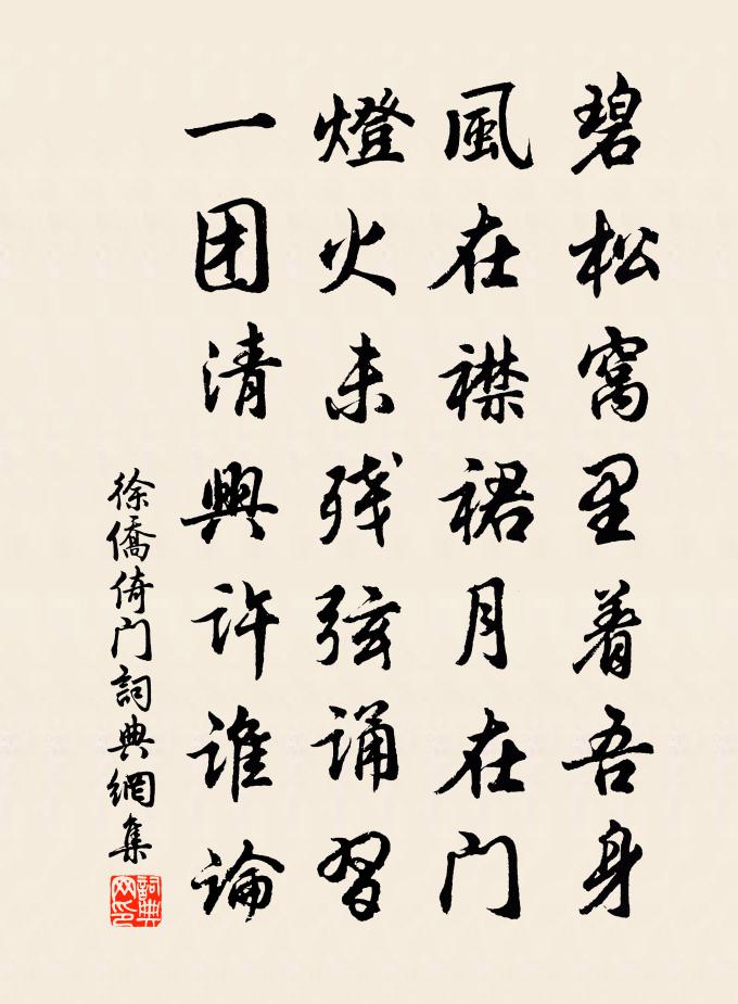 詩詞名句歷史字典書法欣賞書法字典國語詞典說文解字康熙字典古漢語字典標 題 作 者 詩 句 倚門作者:徐僑 朝代:宋代倚門原文碧松窩裡著吾身,風在襟裙月在門。燈火未殘弦誦習,一團清興許誰論。詩詞問答問:倚門的作者是誰?答:徐僑問:倚門寫於哪個朝代?答:宋代徐僑倚門書法欣賞倚門書法作品詩詞推薦李總乾遺詩十四句師於一句之下加頌七句釋印肅〔宋代〕便道福相隨,生末果未遲。力盡簡還墜,來生不如意。假施滿七寶,不如發真歸。布施有為者,觀來真自迷。白蓮楊萬里〔宋代〕花頭素片剪成冰,葉背青瓊刻作棱。珍重兒童輕手摺,綠針剌手卻渠憎。到胡道士草庵二首王炎〔宋代〕綠陰啼鳥戶庭幽,解帶聊為一夕留。行李未知何日了,轉蓬方覺此生浮。市朝役役兔三窟,今古悠悠貉一丘。得似頌古五十三首釋文禮〔宋代〕即心便是佛,姮娥不畫眉。才將脂粉污,妍好卻成媸。念昔游四首胡仲弓〔宋代〕昔游虎邱山,滿天飽風雪。氈帽騎款段,瘦嶺衰草歇。下馬獨支筇,十步 * 蹶。石呼古木僵,鐵花露土骨。生公好事近(紹興辛未病起見梅)向子諲〔宋代〕多病臥江乾,過盡春花秋葉。又見橫斜疏影,弄階前明月。呼兒取酒據胡床,尚喜知時節。宜與老夫情厚,有鬢邊鵲橋仙 同欽叔欽用賦梅元好問〔金代〕孤根漸暖,芳魂乍返,待吐檀心又懶。未先拈出一枝香,算只是、司花會揀。情緣未斷,韶華易減,早去尋芳已晚懷玉山舊遊寄王彥博徐審知趙蕃〔宋代〕南山白塔高何許,弄日摩穹相與曾。放歌直下清溪去,落日半銜漁木燈。吳山汪元量〔宋代〕海枯龍去雨淋淋,羯鼓喧譁山禁林。虎士墮弢兵力倦,雞人罷箭漏聲沈。鶯搖御柳春猶鬧,燕蹴宮花霧轉深。腸斷上巳謝王豐父惠酒劉旦〔宋代〕風雩三月初三日,禊事宣和勝永和。又見會稽王內史,蘭亭對酒愛新鵝。從軍有苦樂行(時從司空魚公北征)李益〔唐代〕勞者且莫歌,我欲送君觴。從軍有苦樂,此曲樂未央。仆居在隴上,隴水斷人腸。東過秦宮路,宮路入鹹陽。時逢和潘德久舍人見惠姜特立〔宋代〕詩人擁節古來稀,郊島詩窮彼一時。愛子篇章孤鶴唳,愧予門戶兩狼垂。遙知靖節閒栽菊,不見儀休慍拔葵。別去醉中紀事題辰州淨因寺廖行之〔宋代〕山城春半時,底事風作惡。小隱杜書帷,暗想花蕭索。命駕訪林藪,尋芳到叢薄。漫山粲百英,隨分有餘樂。縈迴妾薄命許志仁〔宋代〕雙雙林間鳥,雌雄相併棲。驚風忽吹散,各自東西飛。妾意如斷弦,斷弦猶可續。君心似流水,流水何當復。何當送張交代琮趙蕃〔宋代〕歷數旴江士,推君父子間。夷途有霄漢,蹇步乃荊蠻。薦牘方爭上,交情勿重攀。無緣更州縣,小試亦編刪。水仙子佚名〔宋代〕浮家泛宅生涯好。聚米堆鹽多積寶。煙波得趣樂江湖,宜乘興,尋安道。不負軒轅當日造。初度喜逢維夏早。孔釋海棠落盡次謝司法韻方岳〔宋代〕花前誰與東西玉,但遣能詩一夔足。雨寒無奈雪飄零,酒醒卻愁香陸續。阿嬌深貯黃金屋,阿環初出華清浴。騎{雜詠一百首儒仲妻劉克莊〔宋代〕彼雛飾容服,吾穉業耕鋤。不以貧慚富,賢哉婦儆夫。鄂渚留別李二十一表臣大夫劉禹錫〔唐代〕高檣起行色,促柱動離聲。欲問江深淺,應如遠別情。送進士田卓入華山姚合〔唐代〕何物隨身去,六經與一琴。辭家計已久,入谷住應深。偶坐僧同石,閒書葉滿林。業成須謁帝,無貯白雲心。名句推薦而今識盡愁滋味,欲說還休。辛棄疾《醜奴兒·書博山道中壁》 金陵津渡小山樓,一宿行人自可愁。張祜《題金陵渡》 林壑斂暝色,雲霞收夕霏。謝靈運《石壁精舍還湖中作》 不畏浮雲遮望眼,只緣身在最高層王安石《登飛來峰》 鷦鷯尚存一枝,狡兔猶藏三窟羅貫中《三國演義·第六十回》 夜寒不近流蘇,只憐他、後庭梅瘦。毛滂《上林春令·十一月三十日見雪》 夜月一簾幽夢,春風十里柔情。秦觀《八六子·倚危亭》 西北望鄉何處是,東南見月幾回圓。白居易《八月十五日夜湓亭望月》 身似浮雲,心如飛絮,氣若遊絲。徐再思《折桂令·春情》 貧士之腸習黎莧,富人之口厭膏梁。程登吉《幼學瓊林·卷三·貧富》
