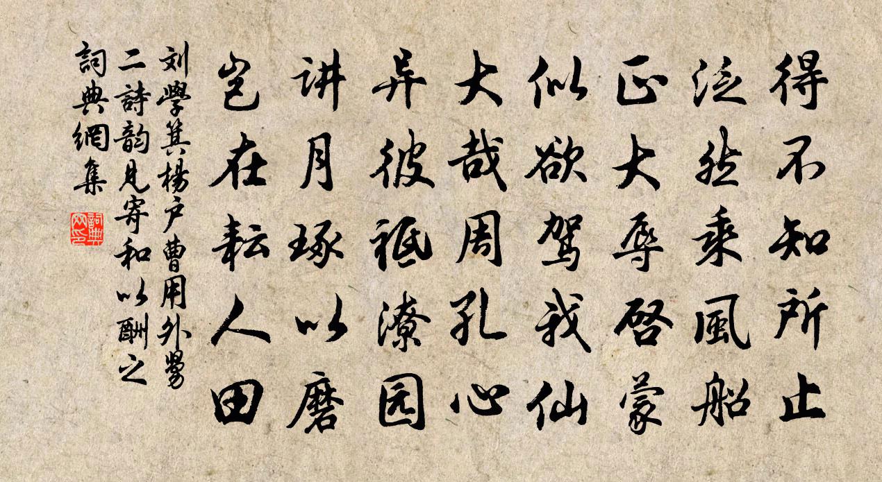 詩詞名句歷史字典書法欣賞書法字典國語詞典說文解字康熙字典古漢語字典標 題 作 者 詩 句 楊戶曹用外舅二詩韻見寄和以酬之作者:劉學箕 朝代:宋代原文得不知所止,泛然乘風船。正大辱啟蒙,似欲駕我仙。大哉周孔心,異彼祗潦園。講月琢以磨,豈在耘人田。詩詞問答問:《楊戶曹用外舅二詩韻見寄和以酬之》的作者是誰?答:劉學箕問:該詩寫於哪個朝代?答:宋代書法欣賞楊戶曹用外舅二詩韻見寄和以酬之書法作品詩詞推薦謝王司戶惠紙被李新〔宋代〕霧中楮皮厚一尺,岷溪秋浪如藍碧。山僧夜抄山鬼愁,白雪千番沍牆壁。裁成素被劣繒綺,故人聊助蘇門癖。經年憶秦娥倪瓚〔元代〕參差玉。笙砷暮起瑤台曲。瑤台曲。輕風香浸,夜涼肌粟。黃雲巧綴飛霞綠。清吟未斷秋霖續。秋霖續。恐辜花意州將按行堤上宋祁〔宋代〕十萬堤封限迅流,騰裝清曉徑春疇。駐車楚老漿盈野,勸築睢陽杵有謳。梅暖晚香薰宿館,雪天零霰犯輕裘。桑郊孟子善信美大陳普〔宋代〕善得於心皆實有,本根植立已無虧。美而且大並神聖,熟後工夫出不期。和主司王起(一作和主司酬周侍郎)丘上卿〔唐代〕常將公道選諸生,不是鴛鴻不得名。天上宴回聯步武,禁中麻出滿寰瀛。簪裾盡過前賢貴,門館仍叨舊學榮。看著金盞子吳文英〔宋代〕賞月梧園,恨廣寒宮樹,曉風搖落。莓砌掃珠塵,空腸斷、熏爐燼銷殘萼。殿秋尚有餘花,鎖煙窗雲幄。新雁又、薄命女文同〔宋代〕夭夭東鄰姝,艷色如春柔。去嫁不得偶,羅衣空自羞。輕埃掩菱花,不分鉛華休。回首視庸奴,寂寞還卷收。贈虔州術士謝君蘇軾〔宋代〕屬國新從海外歸,君平且莫下簾帷。前生恐是盧行者,後學過呼韓退之。死後人傳戒定慧,生時宿直鬥牛箕。憑君次酬陳雲谷劉黻〔宋代〕書空咄咄懶題詩,深愧敲門客問奇。向晚小窗閒遠眺,西風吹霧出秋峗。探春令趙佶〔宋代〕簾旌微動,峭寒天氣,龍池冰泮。杏花笑吐香猶淺。又還是、春將半。清歌妙舞從頭按。等芳時開宴。記去年、對宿寶寧寺李洪〔宋代〕畏暑征塗倦,僧窗借榻眠。聚蚊雷隱隱,夢蝶晝翩翩。喜斷梅黃雨,慵參柏樹禪。潮生富春渚,重泛謝公船。好事近王惲〔元代〕宮殿曲江頭,漠漠輕陰開徹。花柳都城三月,正禁菸時節。阿鳴**玉泉游,故老向人說。一片春風簫鼓,盪黎花蝶戀花仲殊〔宋代〕北固山前波浪遠。鐵瓮城頭,畫角殘聲短。促酒濺金催小宴。燈搖蠟焰香風軟。落日煙霞晴滿眼。欲仗丹青,巧筆次韻元發弟秋日德余庵書事二首王之道〔宋代〕飽諳世事轉疏慵,投老猶能向佛宮。危坐遂移桑蔭日,清談仍對菊花風。憑君為我追歡伯,自此游山作醉翁。聞說文獻太子輓歌辭五首徐鉉〔唐代〕出處成交讓,經綸有大功。淚碑瓜步北,棠樹蒜山東。百揆方時敘,重離遂不融。故臣偏感咽,曾是嘆無三窮。漁父詞宋高宗〔宋代〕一湖春水夜來生,幾疊春山遠更橫。煙艇小,釣絲輕,贏得閒中萬古名。春日行鮑照〔南北朝〕獻歲發,吾將行。春山茂,春日明。園中鳥,多嘉聲。梅始發,柳始青。泛舟艫,齊棹驚。奏《采菱》,歌《鹿鳴紹興以後蜡祭四十二首佚名〔宋代〕幾十二月,祀有常典。祭列司檣,言反其本。酌彼泰尊,百未蘭生。承神嘉虞,翳此德聲。兵火後野望艾可翁〔宋代〕江村兵火復,月色似長淮。鼓角連秋思,風塵帶客懷。諸公朝漠北,一老哭天涯。猶幸舂陵夜,蔥蔥氣尚佳。詠牛應制許圉師〔唐代〕逸足還同驥,奇毛自偶麟。欲知花跡遠,雲影入天津。名句推薦五馬如飛龍,青絲結金絡。李白《陌上桑》 但願人長久,千里共嬋娟。蘇軾《水調歌頭·丙辰中秋》 無情有恨何人覺?月曉風清欲墮時。陸龜蒙《白蓮》 交淺而言深者,愚也;在賤而望貴者,惑也;未信而納忠者,謗也。范曄《後漢書·列傳·崔駰列傳》 朝作輕寒暮作陰,愁中不覺已春深。屈大均《壬戌清明作》 把酒對斜日,無語問西風。楊炎正《水調歌頭·把酒對斜日》 小姑織白紵,未解將人語。李白《湖邊採蓮婦》 無言暗將紅淚彈闌珊,香銷輕夢還納蘭性德《河傳·春淺》 偏借其權勢,則上下易位矣,此言人臣之不可借權勢。韓非及後人《韓非子·備內》 白日地中出,黃河天外來。張蠙《登單于台》