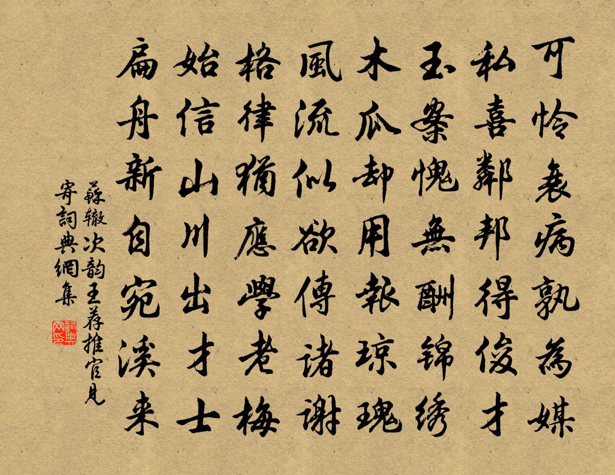 可憐衰病孰為媒,私喜鄰邦得俊才。玉案愧無酬錦繡,木瓜卻用報瓊瑰。