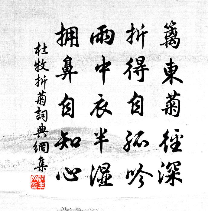 籬東菊徑深,折得自孤吟。雨中衣半濕,擁鼻自知心。