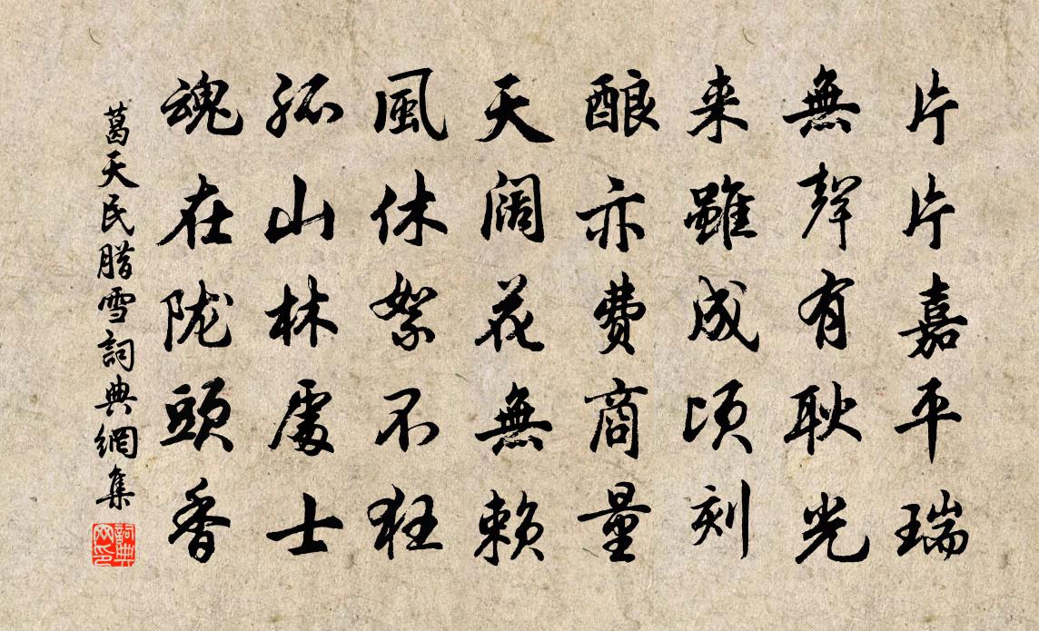 詩詞名句歷史字典書法欣賞書法字典國語詞典說文解字康熙字典古漢語字典標 題 作 者 詩 句 臘雪作者:葛天民 朝代:宋代臘雪原文片片嘉平瑞,無聲有耿光。來雖成頃刻,釀亦費商量。天闊花無賴,風休絮不狂。孤山林處士,魂在隴頭香。詩詞問答問:臘雪的作者是誰?答:葛天民問:臘雪寫於哪個朝代?答:宋代葛天民臘雪書法欣賞臘雪書法作品詩詞推薦奉和張大夫戲示青山郎韋應物〔唐代〕天生逸世姿,竹馬不曾騎。覽卷冰將釋,援毫露欲垂。金貂傳幾葉,玉樹長新枝。榮祿何妨早,甘羅亦小兒。洋州三十景二樂榭鮮于侁〔宋代〕珍躋積翠外,絺結穹隆間。軒檻最佳處,四顧惟江山。臘日四首張耒〔宋代〕園冷無人掃,門荒少客過。槐高庭日少,竹近野風多。霰雪催殘臘,山川對浩歌。飄蓬求季主,身世問如何。東陽郭希呂山園十詠閟雲關陳傅良〔宋代〕雲以無心出,雲歸亦何心。樵牧窺其藏,妄意此阻深。獅兒詞 賦梅次仇山村韻張雨〔元代〕含香弄粉,便句引、游騎尋芳,城南城北。別有西村、斷港冰澌微綠。孤山路熟。伴老鶴、晚先尋宿。怕凍損、三寄曼叔求酒張耒〔宋代〕青衫畿丞頑不羞,三十持板拜督郵。歸來無物與消愁,典衣沽酒寒無裘。囊空酒貴不可得,縮手愁坐凝雙眸。秋風錢丈處和和所寄韓子云約賞梅句復用前韻謝之吳芾〔宋代〕竹符驅我出山來,萬事無心付酒杯。又見江城春到也,傷情卻憶故園梅。冬晚送友人使西蕃陳羽〔唐代〕驛使向天西,巡羌復入氐。玉關晴有雪,砂磧雨無泥。落淚軍中笛,驚眠塞上雞。逢春鄉思苦,萬里草萋萋。楚甸江頭望雪晴二首馮時行〔宋代〕晴天開澤國,江渚匝煙圍。鷺靜蕭蕭立,梅孤默默飛。岸荒群虎過,村迥一人歸。愁緒如相惱,帆收徑典衣。送演侄三首李昴英〔宋代〕五常百行異其名,腔子源頭一個誠。數馬似愚寧過謹,懸魚雖矯卻真清。寬和愛眾眾同愛,驕倨輕人人所輕。詩好烏江東鄉往還馬上作二首之二賀鑄〔宋代〕悠悠東去欲何之,草莫西還可是歸。殘日雨竿荒戍遠,青山滿眼故園非。江田經雨菰蔣熟,石路無風蠛蠓飛。回羨哨遍曹冠〔宋代〕聊寫達觀之懷,寓超然之興雲壬戌孟秋,蘇子夜遊,赤壁舟輕漾。觀水光、彌渺接遙天,月出於東山之上。與客同偈頌二十四首釋智遇〔宋代〕外闔不閉,跨天下而無蘄。會得許你,升其堂入其室。和慎思未試即事雜書率用秋日同文館為首句蔡肇〔宋代〕取士漁鹽出,傳經戶牖開。驚濤簾外起,聚雨筆端來。人競懸金鑒,書方貴玉杯。太平元有象,勿遣賦良媒。書懷呈曾性之胡仲參〔宋代〕覽鏡嘆頭顱,梅花一樣臞。病因吟後有,愁到醉邊無。心事歸梁燕,年華過隙駒。世途難看腳,況復是江湖。主薦後喧訟不已宋庠〔宋代〕昔賁丘園聘,今嗟勢利趨。何嘗輕九九,自欲較銖銖。鉤百勞筋敗,朝三怒氣粗。因聲謝鄉校,真賞愧非夫。羅漢洞杜范〔宋代〕攢空巨石太崔嵬,踴躍山巔亦壯哉。誰把斧斤揮直下,斫開洞戶許人來。和友人新陽韻衛宗武〔宋代〕生機天地寧終藏,剝極復反開新陽。陽明漸進陰濁散,輝光萬象熏佳祥。不必晷驗度合表,不必風問來何方。朝廷朝天行梅堯臣〔宋代〕大車高蓋徐方來,天子雙日延英開。犀靴踏玉升東陛,從臣賜對論宮市。諫官御史如指排,捧土未能障濁水。大夫冬至二首劉克莊〔宋代〕慈顏幽翳幾星霜,猶記斑衣共舉觴。老弟頗憐伯仁短,小孫突過阿宜長。親朋不至諳時態,兒女無知競曉妝。老退名句推薦鐵衣霜露重,戰馬歲年深。戎昱《塞下曲·其六》 博學篤志,切問近思,此八字是收放心的工夫王永彬《圍爐夜話·第一七六則》 雖使鬼神請亡,此猶可以合歡聚眾,取親於鄉里。墨子《墨子·31章 明鬼(下)》 自古逢秋悲寂寥,我言秋日勝春朝。劉禹錫《秋詞》 石欄斜點筆,桐葉坐題詩杜甫《重過何氏五首》 民無廉恥,不可治也;非修禮義,廉恥不立。劉安及其門客《淮南子·泰族訓》 深林人不知,明月來相照。王維《竹里館》 白雲千里萬里,明月前溪後溪。劉長卿《謫仙怨·晴川落日初低》 離堂思琴瑟,別路繞山川。陳子昂《春夜別友人二首·其一》 縱使文章驚海內,紙上蒼生而已。龔自珍《金縷曲·癸酉秋出都述懷有賦》