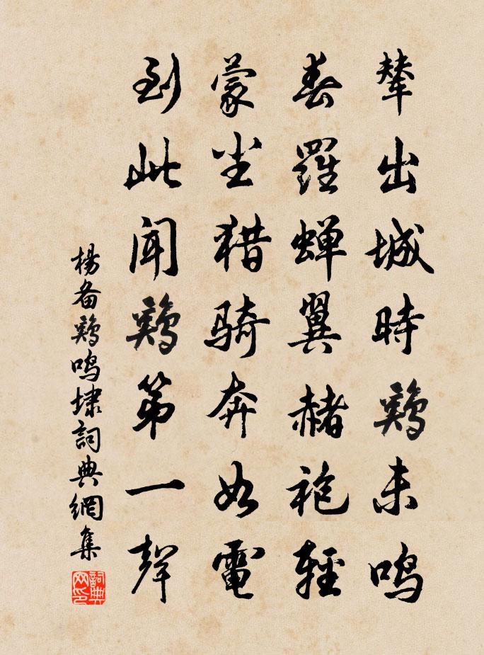 詩詞名句歷史字典書法欣賞書法字典國語詞典說文解字康熙字典古漢語字典標 題 作 者 詩 句 雞鳴埭作者:楊備 朝代:宋代雞鳴埭原文輦出城時雞未鳴,春羅蟬翼赭袍輕。蒙塵獵騎奔如電,到此聞雞第一聲。詩詞問答問:雞鳴埭的作者是誰?答:楊備問:雞鳴埭寫於哪個朝代?答:宋代楊備雞鳴埭書法欣賞雞鳴埭書法作品詩詞推薦賦陳太史所築凌雲亭四首劉宰〔宋代〕太史曾題仲舉輿,子虛賦就壓蓬盧。終然不負凌雲志,會向蓬萊頂上居。觀燒宋祁〔宋代〕白草開平野,炎暉照暮雲。商原寧易嚮,崑玉怯同焚。田燭宵俱遠,邊烽曉不分。方陽休自任,阮瑀久從軍。青銅香鴨詩周端臣〔宋代〕誰把工夫巧鑄成,銅青依綠綠毛輕。自歸騷客文房後,無復王孫金彈驚。沙觜莫追薦葦暖,灰心聊吐蕙蘭清。回頭奉送李戶部侍郎自河南尹再除本官歸闕劉禹錫〔唐代〕昔年內署振雄詞,今日東都結去思。宮女猶傳洞簫賦,國人先詠袞衣詩。華星卻復文昌位,別鶴重歸太乙池。想到六月十三日壽陳子徽太博十首以無官一身輕有戴表元〔宋代〕朝游剡山巔,暮戲剡山足。英英丹霞洞,不受塵土辱。飛仙得何許,諸子如立鵠。酌君滄浪泉,和君紫芝曲。內生日張耒〔宋代〕從我賓士走四方,清貧殊不厭糟糠。黔婁環堵貧常醉,壽母高堂老亦康。夷險百為吾有命,窮通一意子真剛。今年菩薩蠻(五)王齊愈〔宋代〕酒中愁說人留久。久留人說愁中酒。歸夢要遲遲。遲遲要夢歸。舊衣香染袖。袖染香衣舊。封短托飛鴻。鴻飛托短贈琴客陸元章白玉蟾〔宋代〕手持一枚寒水晶,十指擊戛如玉鳴。曲彈白雪陽春調,調有高山流水聲。松梢鶴唳恰夜半,寒煙寂寂風泠泠。紙衾無題章甫〔宋代〕碁局機心在,詩篇習氣余。去來旋磨螘,生死蠹書魚。閱世雙蓬鬢,還山一草廬。苦無食衣計,不是故躊躇。送張常侍西歸白居易〔唐代〕二年花下為閒伴,一旦尊前棄老夫。西午橋街行悵望,南龍興寺立踟躕。洛城久住留情否,省騎重歸稱意無。出鎮和詠雪二首衛宗武〔宋代〕飛霙應冬候,誌喜屬詩人。遠岫千尖沒,寒林一色新。年豐呈上瑞,天巧占先春。比屋銀成屋,民貧豈療貧。卜居飛英坊李洪〔宋代〕束書辭都門,整棹還苕川。羈游二十春,寓農安一廛。家無卓錐地,三挈囊衣遷。移居古城隅,開門枕漪漣。容膝道中四絕鄭剛中〔宋代〕敗篋沖霜思往歲,舊遊如夢慨平生。鬢華已逐心事老,溪水祗如前日清。六舅以詩來覓銅犀用長句持送舅氏學古之餘復黃庭堅〔宋代〕海牛壓紙寫銀鉤,阿雅守之索自收。長防玩物敗兒性,得歸老成散百憂。先生古心冶金鐵,堂堂一角誰能折。兒言七歲吟潘佑〔唐代〕朝游滄海東,暮歸何太速。只因騎折白龍腰,謫向人間三十六。餘寒劉克莊〔宋代〕老子今年八十三,怕寒渾未試春衫。尚存晉宋間人意,折得南枝帶雪簪。寓富池雙泉寺三首董嗣杲〔宋代〕晚來抱懶炙孤燈,臨水禪樓獨自登,鳥道草深雲宛宛,魚湖波定月澄澄。詩聯呈佛方堪讀,俗語污人不可應。歸隱至揚州文天祥〔宋代〕城上兜鍪按劍看,四郊胡騎繞團團。平生不解楊朱泣,到此方知進退難。讀通鑑雜興孫應時〔宋代〕南山擊缶正烏烏,東市匆匆坐一書。說道中興無過事,太陽侵蝕總緣渠。寓江州分司衙隨筆五首董嗣杲〔宋代〕掀簾掣吾肘,偶牽衫袖裂。腐縷積汗垢,欲紉向誰說。忙起易衣披。不暇惜疊雪。試新反相惱,轉覺身觸熱。天涼名句推薦跨馬出郊時極目,不堪人事日蕭條杜甫《野望》 為惜故人去,復憐嘶馬愁。高適《送魏八》 明月黃河夜,寒沙似戰場。李流芳《黃河夜泊》 太乙近天都,連山接海隅王維《終南山》 午夢初回,捲簾盡放春愁去。周晉《點絳唇·訪牟存叟南漪釣隱》 春遊之盛,西湖未能過也。姜夔《琵琶仙·雙槳來時》 重重蕊葉相憐,似青帔艷妝神仙侶。曹勛《夾竹桃花·詠題》 去年夜半橫江夢,倚危檣,參差曾賦劉辰翁《桂枝香· * 人去》 大丈夫相時而動。曹雪芹《紅樓夢·第四回》 擬借寒潭垂釣,又恐鷗鳥相猜,不肯傍青綸。蘇舜欽《水調歌頭·滄浪亭》