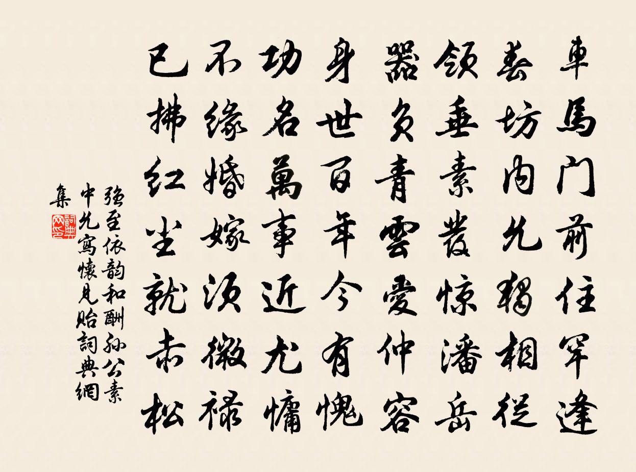 詩詞名句歷史字典書法欣賞書法字典國語詞典說文解字康熙字典古漢語字典標 題 作 者 詩 句 依韻和酬孫公素中允寫懷見貽作者:強至 朝代:宋代原文車馬門前住罕逢,春坊內允獨相從。領垂素髮驚潘岳,器負青雲愛仲容。身世百年今有愧,功名萬事近尤慵。不緣婚嫁須微祿,已拂紅塵就赤松。詩詞問答問:《依韻和酬孫公素中允寫懷見貽》的作者是誰?答:強至問:該詩寫於哪個朝代?答:宋代書法欣賞依韻和酬孫公素中允寫懷見貽書法作品詩詞推薦鴛鴦湖棹歌·一百首選二朱彝尊〔清代〕穆湖蓮葉小於錢,臥柳雖多不礙船。兩岸新苗才過雨,夕陽溝水響溪田。屋上鳩鳴穀雨開,橫塘游女蕩船回。桃花太山篇楊維楨〔元代〕巍乎高哉,太山之山三萬八千丈兮,五嶽之伯、萬山之宗。上有雲官、霞伯、明皇、玉女、金台、石室高重重。三李仁甫除喪作詩問之晁公溯〔宋代〕閉門讀喪禮,荒庭蓬藋深。愁雲聚隴首,悲風吹棘心。隣里昨甚憂,哭踴恐不任。近除二月禫,初御五日琴。雖復子華兄生日五首韓維〔宋代〕白鶴群飛散作陰,方春膏雨一犁深。只知萬物含芳潤,誰識清通造化心。和微之林亭王安石〔宋代〕為有檀欒占雒陽,憶歸杖策此徜徉。觀魚得意還知樂,入鳥忘機肯亂行。未敢許君輕去國,不應如我漫為郎。中園暮過山村賈島〔唐代〕數里聞寒水,山家少四鄰。怪禽啼曠野,落日恐行人。初月未終夕,邊烽不過秦。蕭條桑柘外,煙火漸相親。忍笑韓偓〔唐代〕宮樣衣裳淺畫眉,晚來梳洗更相宜。水精鸚鵡釵頭顫,舉袂佯羞忍笑時。曉寄芙蓉俓二首楊萬里〔宋代〕芙蓉佳處不勝佳,花不中藏秪外斜。恰似曲江聞喜宴,綠衣半醉戴宮花。慈谿道中樓鑰〔宋代〕雙櫓真成鵝鸛鳴,客愁厭苦夢魂驚。須臾寖覺耳根熱,一覺醒來天已明。送張將軍征西(一作西征)錢起〔唐代〕長安少年唯好武,金殿承恩爭破虜。沙場烽火隔天山,鐵騎征西幾歲還。戰處黑雲霾瀚海,愁中明月度陽關。玉笛擬古吳思齊〔宋代〕平原布一遺老,布九重未知布名。臨危觀勁節,相視膽為驚。折陊猶舉手,籲天閩無成。九隕期報國,萬古猶光晶送劉{弓弓夂}秘校赴婺源梅堯臣〔宋代〕雲木蔥蘢處,雞鳴古縣城。山高地多險,源近水偏清。斫漆資商貨,栽茶雜賦征。案頭龍尾硯,切莫苦求精。蒼次山晚出聞汀寇之什利登〔宋代〕山齋無一事,步到白蘋洲。灘近溪聲夜,雲寒石氣秋。煙塵深冉冉,天地入悠悠。回首東南路,干戈半白頭。虞美人元好問〔金代〕櫻桃元是仙郎種。次第芳菲動。開殘山杏沒都紅。一樹梨花如雪月明中。三生蝶化南華夢。只有情緣重。曲蘭幽徑春深三首蘇轍〔宋代〕偶有茅檐潩水陰,近依城市淺非深。幽居每自比陳寔,古學何人貴杜林。鄰父時來陪小飲,兒曹頗解續微吟。前年古樂府釋斯植〔宋代〕一入經戰場,白馬不足數。白馬不敢嘶,春風在場圃。水調歌頭(上沈倅)盧炳〔宋代〕再拜識英度,喜氣覺飛浮。神清骨秀,元是蓬萊謫仙流。盍去沖摩霄漢,剛向平分風月,半刺嶺南州。素蘊未施展讀曲歌佚名〔宋代〕一夕就郎宿,通夜語不息。黃檗萬里路,道苦真無極。召伯停舟辟雨陳造〔宋代〕窗度荷芰風,舟艤鴛鴦浦。落帆憩篙師,辟此白淙雨。長征取愜快,留滯不雲苦。適喜縣麻勢,為盪鑠石暑。去年大子夜歌二首陸龜蒙〔唐代〕歌謠數百種,子夜最可憐。慷慨吐清音,明轉出天然。絲竹發歌響,假器揚清音。不知歌謠妙,聲勢出口心。名句推薦大廈將顛,非一木所支也。王通《中說·卷三·事君篇》 年年歲歲望中秋,歲歲年年霧雨愁。曾幾《癸未八月十四日至十六夜月色皆佳》 回日樓台非甲帳,去時冠劍是丁年溫庭筠《蘇武廟》 桃花塢裏桃花庵,桃花庵裏桃花仙。唐寅《桃花庵歌》 田夫荷鋤至,相見語依依。王維《渭川田家》 裊裊兮秋風,洞庭波兮木葉下。屈原《九歌·湘夫人》 清濁,小大,短長,疾徐,哀樂,剛柔,遲速,高下,出入,周疏,以相濟也。左丘明《左傳·昭公·昭公二十年》 恐是仙家好別離,故教迢遞作佳期。李商隱《辛未七夕》 千門開鎖萬燈明,正月中旬動帝京。張祜《正月十五夜燈》 驚起卻回頭,有恨無人省。蘇軾《卜運算元·黃州定慧院寓居作》