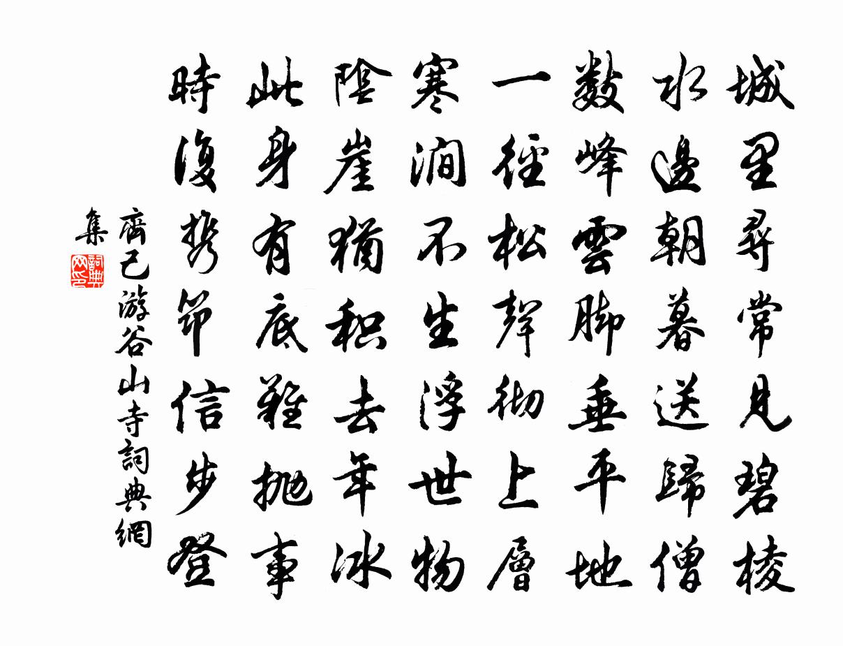 城裡尋常見碧棱,水邊朝暮送歸僧。數峰雲腳垂平地,一徑松聲徹上層。