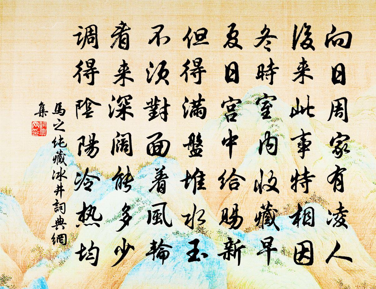 詩詞名句歷史字典書法欣賞書法字典國語詞典說文解字康熙字典古漢語字典標 題 作 者 詩 句 藏冰井作者:馬之純 朝代:宋代藏冰井原文向日周家有凌人,後來此事特相因。冬時室內收藏早,夏日宮中給賜新。但得滿盤堆水玉,不須對面著風輪。看來深闊能多少,調得陰陽冷熱均。詩詞問答問:藏冰井的作者是誰?答:馬之純問:藏冰井寫於哪個朝代?答:宋代馬之純藏冰井書法欣賞藏冰井書法作品詩詞推薦吳學士席上作王令〔宋代〕塵沙欺客日冥冥,喜對賢豪耳目清。爛漫共夸文字飲,歡娛誰憶管弦聲。風牽翠幕燈相照,月掛朱簾酒屢傾。後夜述松王貞白〔唐代〕遠谷呈材幹,何由入棟樑。歲寒虛勝竹,功績不如桑。秋露落松子,春深裛嫩黃。雖蒙匠者顧,樵採日難防。正月十五日夜東林寺學禪偶懷藍田楊主簿因呈智禪師白居易〔唐代〕新年三五東林夕,星漢迢迢鍾梵遲。花縣當君行樂夜,松房是我坐禪時。忽看月滿還相憶,始嘆春來自不知。不覺有所嗟二首(一作元稹詩,題作所思)劉禹錫〔唐代〕庾令樓中初見時,武昌春柳似腰肢。相逢相笑盡如夢,為雨為雲今不知。鄂渚濛濛煙雨微,女郎魂逐暮雲歸。只應賜蕭瑀李世民〔唐代〕疾風知勁草,板蕩識誠臣。勇夫安識義,智者必懷仁。朝雲姜特立〔宋代〕東坡真天人,萬事早超悟。生死固瞭然,刀鋸不足怖。方其謫嶺海,負瓢歌道路。此已遺形骸,死埋隨到處。朝雲七月十月五夜一再夢故舒州使君侍御公宛如平趙蕃〔宋代〕弟過江東得附辭,奠猶乖往沖奚為。情真未覺幽明負,貧病牢人甚縶維。讀謝章奏疏賦朝陽吟高斯得〔宋代〕岷峨禿如赭,江漢濁如泔。云何只隔夜,潑黛挼青藍。得非氣沆碭,祝融困西戡。秋風抗手謝,天公吾敢貪。此邦泛舟游虎丘周南〔宋代〕水繞朱門宿海槎,山沉海月上晨霞。鳥啼煙樹雨初歇,鍾度雲楣日未斜。僧俯劍池看貝葉,人追寒食袞楊花。西子太湖詩明月灣皮日休〔唐代〕曉景澹無際,孤舟恣迴環。試問最幽處,號為明月灣。半岩翡翠巢,望見不可攀。柳弱下絲網,藤深垂花鬘。松癭春曉聞鶯武元衡〔唐代〕寥寥蘭台曉夢驚,綠林殘月思孤鶯。猶疑蜀魄千年恨,化作冤禽萬囀聲。狀江南仲秋沈仲昌〔唐代〕江南仲秋天,D 鼻大如船。雷是樟亭浪,苔為界石錢。曉郭印〔宋代〕客宵無一事,達曉夢魂安。窗隙檐光入,更籌漏水乾。田園終計決,遊宦久心闌。懶起趨朝謁,從渠困馬鞍。昭君曲姚寬〔宋代〕漢宮深鎖千蛾眉,妒寵爭妍君不知。昭君自恃色殊眾,畫師忍為黃金欺。當時望幸君不顧,淚濕花枝怨無主。一朝偈頌五首釋了悟〔宋代〕昨日栽茄子,今日種冬瓜。一聲河滿,和月落誰家。【商調】望遠行_紫燕金鶯弄佚名〔元代〕紫燕金鶯弄也喉舌,我這裡妝點得。西園內紅英兒翠重疊。梅香你與我掩上門兒著,瘦龐兒不耐春風烈。霎時間花又次韻羅商卿七夕雷雨項安世〔宋代〕早秋 * 暗涼生,門巷歡呼見物情。時節自令兒女愛,年華潛遣鬢毛驚。一聲霹靂開銀漢,萬丈雲濤下太清。析木應符讀韓評論以齪詩教其歲月乃三十二所作今孫應符〔宋代〕咄咄汝為子,念之心可寒。慕則非所慕,難則非所斂。愚生乃擊俗,達人斯大觀。大明高照耀,滄海足波瀾。不求訴衷情(又和秀老·五之五)王安石〔宋代〕莫言普化祗顛狂。真解作津梁。驀然打個筋斗,直跳過羲皇。臨濟處,德山行。果承當。將他建立,認作心誠,也題昭上人房皇甫冉〔唐代〕沃州傳教後,百衲老空林。慮盡朝昏磬,禪隨坐臥心。鶴飛湖草迥,門閉野雲深。地與天台接,中峰早晚尋。名句推薦關山別盪子,風月守空閨。薛道衡《昔昔鹽》 稚子金盆脫曉冰,彩絲穿取當銀錚。楊萬里《稚子弄冰》 軍氣橫大荒,戰酣日將入。王昌齡《從軍行二首》 酒酣應對燕山雪,正冰河月凍,曉隴雲飛。周密《高陽台·送陳君衡被召》 書痴者文必工,藝痴者技必良。蒲松齡《聊齋志異·卷二·阿寶》 下馬登鄴城,城空復何見。岑參《登古鄴城》 布穀飛飛勸早耕,舂鋤撲撲趁春睛。姚鼐《山行·布穀飛飛勸早耕》 笑漸不聞聲漸悄,多情卻被無情惱。蘇軾《蝶戀花·春景》 巧笑倩兮,美目盼兮。佚名《碩人》 利之所在,雖千仞之山無所不上,深源之下,無所不入焉。管仲《管子·禁藏》