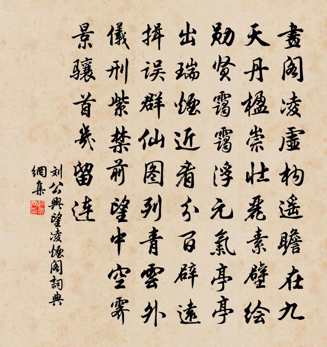 詩詞名句歷史字典書法欣賞書法字典國語詞典說文解字康熙字典古漢語字典標 題 作 者 詩 句 望凌煙閣作者:劉公興 朝代:唐代望凌煙閣原文畫閣凌虛構,遙瞻在九天。丹楹崇壯麗,素壁繪勛賢。靄靄浮元氣,亭亭出瑞煙。近看分百辟,遠揖誤群仙。圖列青雲外,儀刑紫禁前。望中空霽景,驤首幾留連。詩詞問答問:望凌煙閣的作者是誰?答:劉公興問:望凌煙閣寫於哪個朝代?答:唐代問:望凌煙閣是什麼體裁?答:五排劉公興望凌煙閣書法欣賞望凌煙閣書法作品注釋全唐詩:卷781-6詩詞推薦淒其歲晚不勝鄉國墳墓之情再得四篇贈宗之敖陶孫〔宋代〕鄰曲竟還往,歲除當餽分。作我淡生活,小龍破密雲。天機亦良勤,錯綜合瘁芬。松柏青始獨,苕華黃已芸。雨中花長筌子〔元代〕急急蛩音,似箭暗催,人物菸草茫茫。塞鴻悲秋晚,敗葉飄黃。萬里關山牢落,一天風雨淒涼。這蕭閒活計,向誰採蓮曲張玉孃〔宋代〕女兒采提收船,船擔水動波搖天。春風笑隔荷花面,面對荷花更可耿。登西樓懷湯損之陳允平〔宋代〕楊柳飄飄春思長,綠橋流水繞宮牆。碧雲望斷空回首,一半闌乾無夕陽。楊州瓊花陳天麟〔宋代〕仿佛猶稱是漢妝,五花刻玉傳輕黃。隔江坐想紅樓裹,插鬢應宜錦瑟傍。疑似聚仙非我類,近鄰芍藥許同芳。將軍新定望湖樓張伯玉〔宋代〕龍盤山影倒寒流,十里屏風翠入樓。畫筆肯歸涵碧手,湖光疑對涌金秋。主翁愛客排三雅,漁父忘機任直鉤。為訪胭脂井楊維楨〔元代〕井無水,荒龍倚。不知如,巴馬子。仰天夜見黃姑星,水底嘍嘍話紅鬼,長繩捲起天河水。井中人,不殉死,宮人平蕃曲三首劉長卿〔唐代〕吹角報蕃營,回軍欲洗兵。已教青海外,自築漢家城。渺渺戍煙孤,茫茫塞草枯。隴頭那用閉,萬里不防胡。絕漠昊天有成命佚名〔先秦〕昊天有成命,二後受之。成王不敢康,夙夜基命宥密。於緝熙!單厥心,肆其靖之。【正宮】塞鴻秋_蘇卿寫下金劉庭信〔元代〕蘇卿寫下金山恨,雙生得個風流信。亞仙不是夫人分,元和到受十年困。馮魁到底村,雙漸從來嫩,思量惟有王魁送莫子齊知溫州十韻李洪〔宋代〕左省塗歸地,嶄然德望優。夕辭清禁月,高掛白苹洲,丹扆深求舊,東嘉慶選侯。玉堂曾視草,滄海豈乘桴。奕葉浣溪沙杜甫〔唐代〕麻葉層層葉光,誰家煮繭一村香?隔籬嬌語絡絲娘。垂白杖藜抬醉眼,捋青搗軟飢腸,問言豆葉幾時黃。史鎮江丐得請仍進職趙汝鐩〔宋代〕帝念承流欲報功,力祈閶闔請琳宮。固知槐鼎身將愛,卻愛蓴鱸味不同。寶閣風雲雖學士,滄洲煙雨且漁翁。到家齒落書懷楊時〔宋代〕身上蕭條事事空,齒牙凋落剩衰翁。渴心尚欠冰凌解,病骨長思藥力攻。文幾倦親塵土暗,斷編慵理蠹魚封。南床過潤陂橋三首楊萬里〔宋代〕卻憶庚寅侍板輿,過橋橋斷費人扶。重來一見新橋了,淚濕秋風眼欲枯。唐文權郡見前作和韻見教乃賦計三首答之程公許〔宋代〕陰陽無停機,寒暑迭更代。迅商俄慄憀,炎官亟斂退。岩壑有餘妍,雨晴皆可愛。迫迮紅塵海,適喜翠屏對。鄒處置第一百二十七文天祥〔宋代〕東郊暗長戟,死地脫斯須。庾公興不淺,居然屈壯圖。偈頌一百零二首釋紹曇〔宋代〕憎金以黃,謗沈無香。達磨不會,歷魏游梁。更有不識好惡底,齊腰立雪,寄食窮鄉,巴峽聞猿空斷腸。往知袁州道經末山阮閱〔宋代〕斜陽騎馬末山隈,淡碧晴空雁字回。一片愁懷似黃葉,晚風吹送九峰來。幽居陸游〔宋代〕青門不種故侯瓜,揀得湖山便寄家。老境一廛依水竹,壯遊萬里犯風沙。氣衰那辦飲無算,病著更知生有涯。莫道名句推薦十月江南天氣好,可憐冬景似春華。白居易《早冬》 堪笑楚江空渺渺,不能洗得直臣冤。文秀《端午》 人歸落雁後,思發在花前。薛道衡《人日思歸》 便做春江都是淚,流不盡,許多愁。秦觀《江城子·西城楊柳弄春柔》 無善而致人譽,不如無惡而致人毀。洪應明《菜根譚·概論》 清風徐來,水波不興。蘇軾《前赤壁賦》 狐死首丘,代馬依風。范曄《後漢書·列傳·班梁列傳》 松竹翠蘿寒,遲日江山暮。曹組《卜運算元·蘭》 淚眼不曾晴,眉黛愁還聚游次公《卜運算元·風雨送人來》 人過留名,雁過留聲。佚名《增廣賢文·下集》