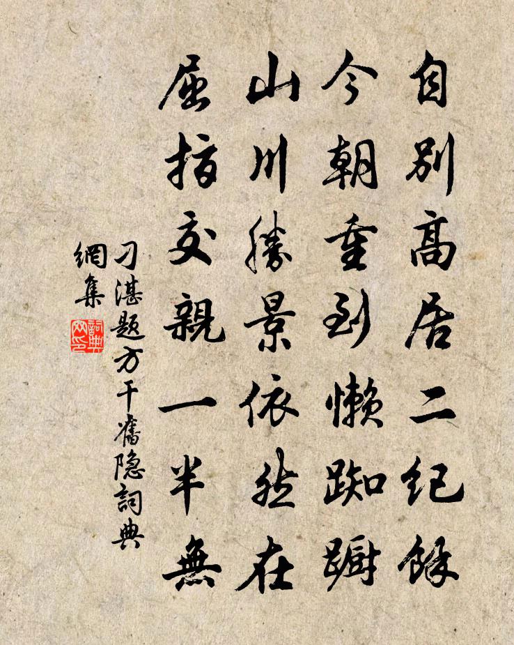 詩詞名句歷史字典書法欣賞書法字典國語詞典說文解字康熙字典古漢語字典標 題 作 者 詩 句 題方乾舊隱作者:刁湛 朝代:宋代題方乾舊隱原文自別高居二紀余,今朝重到懶踟躕。山川勝景依然在,屈指交親一半無。詩詞問答問:題方乾舊隱的作者是誰?答:刁湛問:題方乾舊隱寫於哪個朝代?答:宋代刁湛題方乾舊隱書法欣賞題方乾舊隱書法作品詩詞推薦寄呈漳守李侍郎元善四首王邁〔宋代〕侍郎佛地位中人,一飯何嘗不念民。涇渭同流須有別,雪霜殺物乃為仁。揚清可使貪夫愧,去惡能令善者伸。自笑漁父 以上十六首見珊瑚網名畫題跋卷九吳鎮〔元代〕桃花波起五湖春。一葉隨風萬里身。釣絲細,香餌勻。元來不是取魚合溪座上錢時〔宋代〕深碧沉沉冷欲秋,此時亭上飽追游。溪分溪合關何事,尚欠圜機訂九流。南歌子趙希蓬〔宋代〕玉立亭亭樹,水澌小小池。園林遍地幻珍奇。戰罷奇鱗無數、滿天飛。雲凍風威慘,天低月色微。紅綃暖帳淺斟時題靈岩寺(寺即吳館娃宮,鳴屟廊硯池采香徑遺蹟在焉)白居易〔唐代〕娃宮屟廊尋已傾,硯池香徑又欲平。二三月時何草綠,幾百年來空月明。使君雖老頗多思,攜觴領妓處處行。今愁湘寇曾鞏〔宋代〕衡湘有寇未誅剪,殺氣凜凜圍江潯。北兵居南匪便習,若以大舶乘高岑。傖人操兵快如鶻,千百其旅巢深林。超突夜登城樓陸游〔宋代〕上天何蒼蒼,四序浩旋斡。異哉今年熱,炊鬻不可活。夜分睡復起,搖箑腕欲脫。強登城西樓,月露渺空闊。憑欄謝潘端叔惠紅梅樓鑰〔宋代〕不學江頭玉樹寒,壽陽紅粉舊妝殘。嬋娟可是慙隨俗,莫作金沙鎖骨看。愧謝詩河湄鬼〔唐代〕我本邯鄲士,祇役死河湄。不得家人哭,勞君行路悲。詠史上魏相陳普〔宋代〕賈生晁錯總佻輕,博陸營平亦好兵。地節三年誰作相,胡天漢地各春生。頌古十二首釋智深〔宋代〕古渡無風下直鉤,絲綸意在得鯨鰲。馬師言下揚家醜,千古兒孫草里游。臨江仙朱敦儒〔宋代〕直自鳳凰城破後,擘釵破鏡分飛。天涯海角信音稀。夢回遼海北,魂斷玉關西。月解重圓星解聚,如何不見人歸。浣溪沙 廣陵席上賦別三首張翥〔元代〕偶約尊前已目成。琵琶私語更分明。如今翻作斷腸聲。彩扇舊歌憐楚楚,青樓薄倖怨卿卿。海枯石爛古今情。題秋堂四蘭釋紹曇〔宋代〕幽石封白,深要掩芳。隱德不耀,何矜色香。奉謝芸居清供之招周端臣〔宋代〕生平愧彼蒼,得飽非耘種。自揆蔑寸長,居然叨薄俸。朅來桂玉地,幸了藜藿奉。日昨訪芸居,見我如伯仲。劇談壽寧節祝聖壽王禹偁〔宋代〕祗為憂民感上玄,玉京今日集群仙。更教添注吾君壽,直過人皇萬八千。晚秋宿李軍道所居皎然〔唐代〕清溪路不遙,都尉每相招。落日休戎馬,秋風罷射鵰。朮花生野徑,柏實滿寒條。永夜依山府,禪心共寂寥。西興馬上戴表元〔宋代〕去時風雨客匆匆,歸路霜晴水樹紅。一抹淡山天上下,馬蹄新出浪花中。老柏圖為張心田賦王冕〔元代〕高堂素壁無纖埃,上有老柏參天來。銅柯旁奮龍爪出,密葉暗擁玄雲堆。江乾水落見白石,小竹無聲弄秋碧。君不祀先蠶六首佚名〔宋代〕化日初長,時當暮春。簪事方興,惟後惟巡。絲曠御冬,殘生濟人。敢忘報本,篚幣是陳。名句推薦不似秋光,只與離人照斷腸。蘇軾《減字木蘭花·春月》 死亦我所惡,所惡有甚於死者,故患有所不辟也。孟子《孟子·告子章句上·第十節》 乍咽涼柯,還移暗葉,重把離愁深訴王沂孫《齊天樂·蟬》 牧人驅犢返,獵馬帶禽歸。王績《野望》 大樹底下好遮陰張南莊《何典·第十回》 公子王孫逐後塵,綠珠垂淚滴羅巾。崔郊《贈去婢》 逍遙以針勞,談笑以藥倦劉勰《文心雕龍·養氣》 桃李春風一杯酒,江湖夜雨十年燈。黃庭堅《寄黃幾復》 雨過一蟬噪,飄蕭松桂秋。杜牧《題揚州禪智寺》 布被秋宵夢覺,眼前萬里江山。辛棄疾《清平樂·獨宿博山王氏庵》