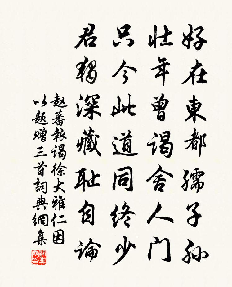 詩詞名句歷史字典書法欣賞書法字典國語詞典說文解字康熙字典古漢語字典標 題 作 者 詩 句 報謁徐大雅仁因以題贈三首作者:趙蕃 朝代:宋代報謁徐大雅仁因以題贈三首原文好在東都孺子孫,壯年曾謁舍人門。只今此道同終少,君獨深藏恥自論。詩詞問答問:報謁徐大雅仁因以題贈三首的作者是誰?答:趙蕃問:報謁徐大雅仁因以題贈三首寫於哪個朝代?答:宋代趙蕃報謁徐大雅仁因以題贈三首書法欣賞報謁徐大雅仁因以題贈三首書法作品詩詞推薦頌古釋道顏〔宋代〕狸奴白牯念摩訶,爭似南泉打粥鍋。雖然佛法無多子,天下叢林不柰何。送曇穎歸廬山歐陽修〔宋代〕吾聞廬山久,欲往世俗拘。昔歲貶夷陵,扁舟下江湖。八月到湓口,停帆望香爐。香爐雲霧間,杳靄疑有無。忽值次韻邵公濟尋梅三首郭印〔宋代〕獨與幽人臭味同,細看詩句酒杯中。霜林萬木無顏色,只有孤標傲曉風。輞川集斤竹嶺王維〔唐代〕檀欒映空曲,青翠漾漣漪。暗入商山路,樵人不可知。無題馮小青〔明代〕冷雨幽窗不可聽,挑燈閒看牡丹亭。人間亦有痴於我,豈獨傷心是小青!內人斜二首張嵲〔宋代〕當日承恩向壁門,今同傖鬼落荒村。丘墳埋沒生秋草,人事如斯詎可論。論語絕句一百首張九成〔宋代〕欲逃陽貨遇諸塗,在我之言亦未疏。大抵行藏非汝事,孰雲夫子主癰疽。三月出城別張唐公會玉仙觀蔡襄〔宋代〕隴麥青青溝柳新,春歸聚落少逢人。如何試與持鞭手,拂卻向來身上塵。夜坐二首劉克莊〔宋代〕依約前生是蠹魚,坐窗不覺曉鍾餘。都忘還笏休官了,渾是擔簦應舉初。亥豕安能承謬誤,雪螢尚欲補空疏。玄花陳鎮江生辰陳棣〔宋代〕著物薰然一氣和,溫溫眉宇得春多。腰黃眼赤渾閒事,柳綠花紅奈樂何。舊事幾經銅狄話,佳詞慣聽雪兒歌。一杯寓宿南宮言懷宋庠〔宋代〕始寓南台直,偏驚素簽霜。悲秋真騎省,出沐愧山郎。自許鷗機息,誰矜鶴脛長。塵緇洛客袂,枌老漢人鄉,篝燭和採石趙希逢〔宋代〕平生李白幾詩歌,傳載存亡事不訛。捉月浪傳何所據,欲將遺恨比湘娥。東園小飲陸游〔宋代〕入東又見幾春風?茆屋蘆藩寂寞中。道業雖如詩不進,世緣已與夢俱空。高枝濯濯辛夷紫,密葉深深躑躅紅。村巷一庵釋道璨〔宋代〕萬法須從皈處參,難將皈處與人談。檐頭昨夜風和雨,說得分明落二三。鳳來朝陳允平〔宋代〕百媚春風面。鳳簫催、綠么舞遍。玉鸞釵、半溜烏雲亂。悄疑是、夢中見。曲嘆弓彎袖斂。繡芙蓉、香塵未斷。買春意郊行黎廷瑞〔宋代〕卯酒醒來欲午天,意行平陸自悠然。近山欲雨有遠意,老樹得春還少年。蝶化不知何宇宙,蝸爭難到好林泉。令人贈同席李昌符〔唐代〕四座列吾友,滿園花照衣。一生知幾度,後到擬先歸。急管侵諸樂,嚴城送落暉。當歡莫離席,離席卻歡稀。驛舍海棠已過有感陸游〔宋代〕淒涼古驛官道傍,朱門沈沈春日長。暄妍光景老海棠,顛風吹花滿空廊。物生榮悴固其常,惜哉無與持一觴。游蜂順風過湖二首項安世〔宋代〕帆影如酲左右傾,水聲似戰聒天鳴。傍人只道船行快,不道船中客更驚。衰感宋祁〔宋代〕眩罷目還暗,花殘鬢益稀。長吟病莊舄,孤憤老韓非。坊酒叨常秩,鵰花濫賜衣。家田耕熟未,元亮欲言歸。名句推薦一去二三里,煙村四五家。邵雍《山村詠懷》 茶有九難:一曰造,二曰別,三曰器,四曰火,五曰水,六曰炙,七曰末,八曰煮,九曰飲。陸羽《茶經·六之飲》 黃河西來決崑崙,咆哮萬里觸龍門。李白《公無渡河》 堂上遠於百里,堂下遠於千里,門庭遠於萬里。管仲《管子·法法》 白頭搔更短,渾欲不勝簪。杜甫《春望》 君子不重則不威,學則不固。主忠信,無友不如己者,過,則勿憚改。孔子弟子《論語·學而篇》 如來是真語者。實語者。如語者。不誑語者。不異語者。鳩摩羅什譯《金剛經·離相寂滅》 君看六幅南朝事,老木寒雲滿故城。韋莊《金陵圖》 危橋屬幽徑,繚繞穿疏林。柳宗元《巽公院五詠·苦竹橋》 亦有白骨歸鹹陽,營家各與題本鄉。王建《渡遼水》