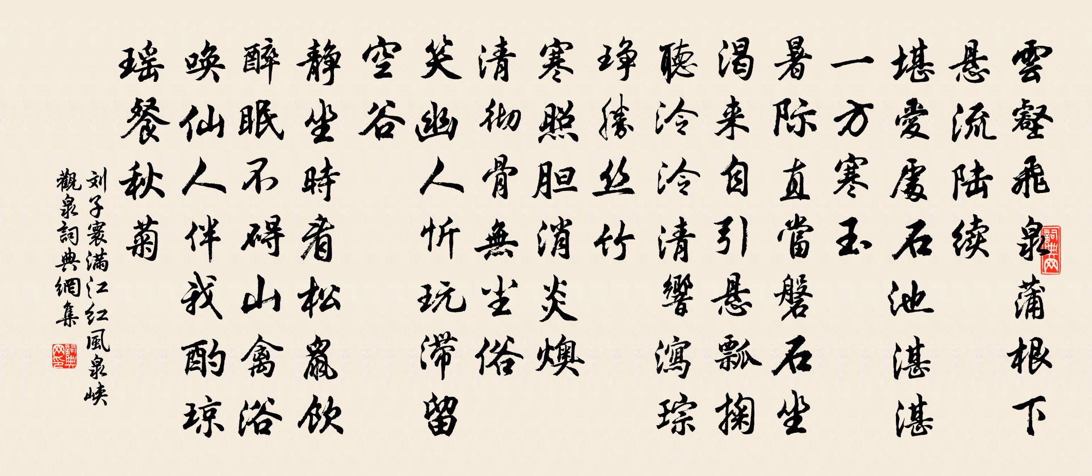 詩詞名句歷史字典書法欣賞書法字典國語詞典說文解字康熙字典古漢語字典標 題 作 者 詩 句 滿江紅(風泉峽觀泉)作者:劉子寰 朝代:宋代滿江紅(風泉峽觀泉)原文雲壑飛泉,蒲根下、懸流陸續。堪愛處、石池湛湛,一方寒玉。暑際直當磐石坐,渴來自引懸瓢掬。聽泠泠、清響瀉琮琤,勝絲竹。寒照膽,消炎燠。清徹骨,無塵俗。笑幽人忻玩,滯留空谷。靜坐時看松鼠飲,醉眠不礙山禽浴。喚仙人、伴我酌瓊瑤,餐秋菊。詩詞問答問:滿江紅(風泉峽觀泉)的作者是誰?答:劉子寰問:滿江紅(風泉峽觀泉)寫於哪個朝代?答:宋代問:滿江紅(風泉峽觀泉)是什麼體裁?答:詞劉子寰滿江紅(風泉峽觀泉)書法欣賞滿江紅(風泉峽觀泉)書法作品詩詞推薦道邊竹曾豐〔宋代〕騰身已往化為龍,未化先拔濟物功。六月乾坤塵撲火,行人無個不清風。又謝予京惠贄見陳文蔚〔宋代〕少日深期造孔門,於今老矣嘆無聞。自憐大業乖傳授,賴有遺編可討論。君贈名章多過譽,我慚衰配不勝文。誓言春殘陳著〔宋代〕出門隨意踏蒼苔,過眼時光一笑陪。二十四風清繡地,兩三點雨試輕雷。纈空舞絮隨春去,鈿水嬌荷闖夏開。對景三疊仇遠〔宋代〕禁酤限十日,忘何能幾何。流光徒荏苒,老眼自挼莎。江浙歸心切,山林醒眼多。富家憂勸率,役後欲重科。淮南遊故居感舊,酬西川李尚書德裕王播〔唐代〕昔年獻賦去江湄,今日行春到卻悲。三徑僅存新竹樹,四鄰惟見舊孫兒。壁間潛認偷光處,川上寧忘結網時。更見陳動之秘丞輓辭二首王安石〔宋代〕年高漢賈誼,官過楚荀卿。望古君無憾,論今我未平。有風吹畫翣,無日照佳城。空復文章在,流傳世上名。臨江仙(明日小雨,已而風大作,復晚晴,遂見月,與客再登)葉夢得〔宋代〕捲地驚風吹雨去,卻看香霧輕浮。遙知清影遍南州。萬峰橫玉立,誰為此山留。邂逅一歡須共惜,年年長記今秋。從人覓小胡孫許寄杜甫〔唐代〕人說南州路,山猿樹樹懸。舉家聞若駭,為寄小如拳。預哂愁胡面,初調見馬鞭。許求聰慧者,童稚捧應癲。武陵春(元若虛總管席上)仲並〔宋代〕門巷烏衣應好在,風韻尚依然。知是蓬瀛第幾仙。秀色粲當筵。索句濡毫雲閣里,清坐裊爐煙。誰賦回文第二篇。使東川好時節元稹〔唐代〕身騎驄馬峨眉下,面帶霜威卓氏前。虛度東川好時節,酒樓元被蜀兒眠。關尹子教射列子〔先秦〕 列子學射,中矣。請於關尹子。尹子曰:“子知子之所以中者乎?”對曰:“弗知也。”關尹子曰:“未可。御園耕種乾隆〔清代〕弄田播種近臣從,不比親耕典秩宗。布穀有聲春已暮,看花無興草全茸。勞躬漫謂勤民亟,愁意多緣望雨濃。豐澤題鬼字軸姚勉〔宋代〕玉衡杓建天之綱,枕參魁耀森寒芒。總提眾星環侍傍,仰望熠熠開神光。有美俊容分天章,收入翰墨何淋浪,一筆綠字韻施樞〔宋代〕曉帳香銷閒畫燭,夢回山斷屏風曲。輕煙細雨客情多,南浦草隨新漲綠。過綠楊橋陸游〔宋代〕過縣東馳十里遙,行吟不覺度溪橋。磑輪激水無時息,酒旆迎風盡日搖。半掩店門燈煜煜,橫穿村市馬蕭蕭。秦吳重九日游南山峽覺海寺李昴英〔宋代〕恰重陽日到南山,小摘黃花供綠樽。鍾叩一聲蕭寺晚,移舟載月過前灣。和題劍門韓昭〔唐代〕閉關防老寇,孰敢振威稜。險固疑天設,山河自古憑。三川奚所賴,雙劍最堪矜。鳥道微通處,煙霞鎖百層。和陶詠貧士七首吳芾〔宋代〕淵明抱歸興,未老辭華軒。應謂役於人,豈如歸田園。在家貧亦好,滿眼是風煙。親戚可晤晤,書史可精研。妻子贊三十六祖頌釋印肅〔宋代〕莊嚴聖王子,僧回號難提。棄國避世榮,便入三摩底。寄子虡兼示子遹陸游〔宋代〕書生賦命艱,舉步得憂患;敢論得意事,一笑亦有限。南征度閩嶺,西戍歷蜀棧,吳江聽唳鶴,淮浦送歸雁。歸來名句推薦能脫身牢籠外,便是大英雄。王永彬《圍爐夜話·第二八則》 遊絲冉冉花枝靜,青壁迢迢白鳥過。王守仁《春晴》 今朝有酒今朝醉,明日愁來明日憂。佚名《增廣賢文·上集》 不知香積寺,數里入雲峰王維《過香積寺》 東風有信無人見,露微意、柳際花邊。蘇軾《一叢花·今年春淺侵年》 何日功成名遂了,還鄉,醉笑陪公三萬場。蘇軾《南鄉子·和楊元素時移守密州》 幾多情,無處說,落花飛絮清明節。魏承班《漁歌子·柳如眉》 秋風萬里動,日暮黃雲高。岑參《鞏北秋興寄崔明允》 安得倚天劍,跨海斬長鯨。李白《臨江王節士歌》 殷勤昨夜三更雨,又得浮生一日涼。蘇軾《鷓鴣天·林斷山明竹隱牆》