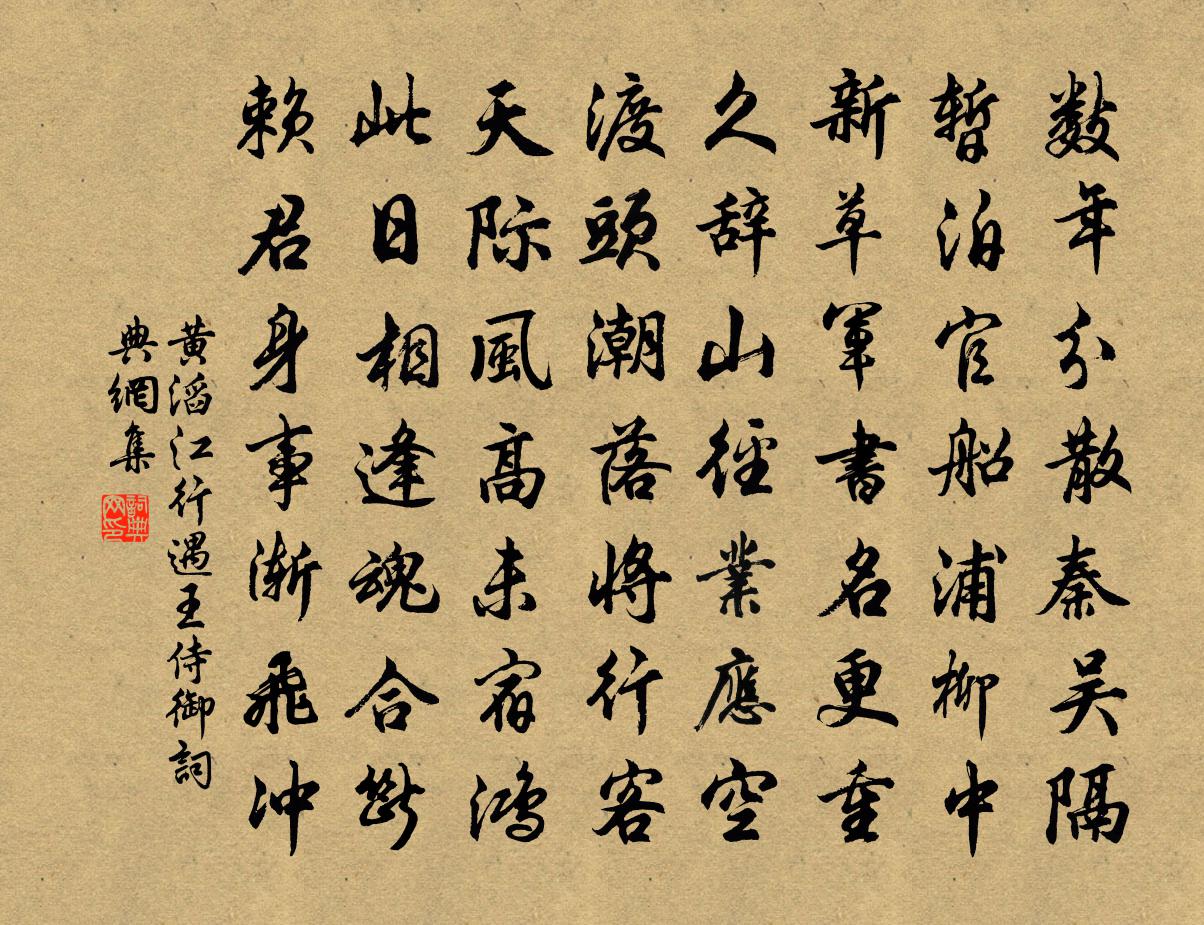 詩詞名句歷史字典書法欣賞書法字典國語詞典說文解字康熙字典古漢語字典標 題 作 者 詩 句 江行遇王侍御作者:黃滔 朝代:唐代江行遇王侍御原文數年分散秦吳隔,暫泊官船浦柳中。新草軍書名更重,久辭山徑業應空。渡頭潮落將行客,天際風高未宿鴻。此日相逢魂合斷,賴君身事漸飛沖。詩詞問答問:江行遇王侍御的作者是誰?答:黃滔問:江行遇王侍御寫於哪個朝代?答:唐代問:江行遇王侍御是什麼體裁?答:七律黃滔江行遇王侍御書法欣賞江行遇王侍御書法作品注釋全唐詩:卷705-31詩詞推薦調笑令李呂〔宋代〕眼尾。寄深意。一點蘭膏紅破蕊。鈿窩淺淺雙痕媚。背面銀床斜倚。燭花先報今宵喜。管定知人心裡。可愛詩鮑照〔南北朝〕風帷閃珠帶。月幌垂霧羅。魏粲縫秋裳。趙艷習春秋。偈頌一百零九首釋可湘〔宋代〕頑鈍以此銷鎔,偏涉以此彈擊。直中曲,曲中直。老盧不會,達磨不識。送儲邕之武昌李白〔唐代〕黃鶴西樓月,長江萬里情。春風三十度,空憶武昌城。送爾難為別,銜杯惜未傾。湖連張樂地,山逐泛舟行。諾為四明山記游八十韻孫應時〔宋代〕平生抱遐尚,撫劍遠行游。跡謝聲利牽,心與岩壑謀。東征泛滄海,南驚逾丹丘。西登峨峨嘯,北望關隴愁。匡廬同段吉甫汎湖仇遠〔宋代〕西湖春碧淨無泥,畫舫朱簾傍岸移。寒食清明初過後,杏花楊柳乍晴時。後從西日催歌鼓,莫放東風轉酒旗。只恐雪中作徐鉉〔唐代〕賦分多情客,經年去國心。疏鍾寒郭晚,密雪水亭深。影迥鴻投渚,聲愁雀噪林。他鄉一尊酒,獨坐不成斟。送直閣劉郎中知平江府沈繼祖〔宋代〕星郎星使兩俱優,三輔黃圖帝選侯。萬里登滬超弱水,一輪有月照蘇州。刀飛雪縷夸鱸膾,雲作奇峰簇虎丘。太守東皋十首晁補之〔宋代〕登登策策不須呼,時動圓荷觸短蒲。五步濠梁亦堪樂,相忘何必是江湖。何仁甫作室日生男方回〔宋代〕築室肇聞開吉卜,弄璋恰喜共良辰。千間廣廈連雲起,一顆明珠入掌新。撰上樑文焉用我,作湯餅客可無人。門閭閿鄉送上官秀才歸關西別業岑參〔唐代〕風塵奈汝何,終日獨波波。親老無官養,家貧在外多。醉眼輕白髮,春夢渡黃河。相去關城近,何時更肯過。池蓮四詠分韻花劉子翬〔宋代〕孤紅低映岸,並艷遠連汀。露浥層層展,風披葉葉零。梅釋行海〔宋代〕二分明月是揚州,況有春風在樹頭。莫怪當年何水部,歲寒心事向誰愁。複次韻四首袁說友〔宋代〕昔上瞿塘灩澦堆,盤渦如井放舡開。山行歡喜今非錯,備見捎濆漩來。無題薛師石〔宋代〕平生愛菊與梅花,菊比淵明梅似逋。誰知此道今寥落,愛菊愛梅人也無。讀陶集愛其致意於菊者八因作八首七曰秋菊方回〔宋代〕飲酒成詩二十篇,詩成多在菊花邊。秋英掇取枝頭露,想見朝趄起卯前。再用陀字韻洪咨夔〔宋代〕煙霏深處萬山羅,閒裹工夫歲月磨。上采緯書乾鑿度,下搜雜誌薛延陀。手披不厭薰沉水,心悟何妨涉貝多。若問和王有道二首曹勛〔宋代〕泉南幕府峻華遷,不涉銓曹已自賢。悟物頗聞才半偈,受知顧豈待三篇。青連山頂行行去,香度蓮腮細細傳。郊外【越調】小桃紅_壽筵添上小盧摯〔元代〕壽筵添上小桃紅,妝點壺天供,茜蕊冰痕半浮動。彩雲中,生香喚醒羅浮夢。銀杯綠蟻,瓊枝清唱,金勝醉鰲峰。次韻朱希真贈別黃彥平〔宋代〕偶伴浮雲出,還尋倦翼歸。泝流扶楚柂,長夏及荊扉。故園荒喬木,勞歌厭採薇。本非求獨往,要自隔群飛。名句推薦勞歌一曲解行舟,紅葉青山水急流。許渾《謝亭送別》 還怕掩、深院梨花,又作故人清淚。吳文英《無悶·催雪》 不力行,但學文。長浮華,成何人。李毓秀《弟子規·餘力學文》 一點烽傳散關信,兩行雁帶杜陵秋。陸游《秋晚登城北樓》 澤國江山入戰圖,生民何計樂樵蘇。曹松《己亥歲二首·僖宗廣明元年》 寒山轉蒼翠,秋水日潺湲。王維《輞川閒居贈裴秀才迪》 雖有戈矛之刺,不如恭儉之利也。荀子《荀子·榮辱》 美言可以市尊,美行可以加人。老子《老子·德經·第六十二章》 榮螈,蜥蜴。佚名《爾雅·釋魚》 颯颯東風細雨來,芙蓉塘外有輕雷。李商隱《無題·颯颯東風細雨來》