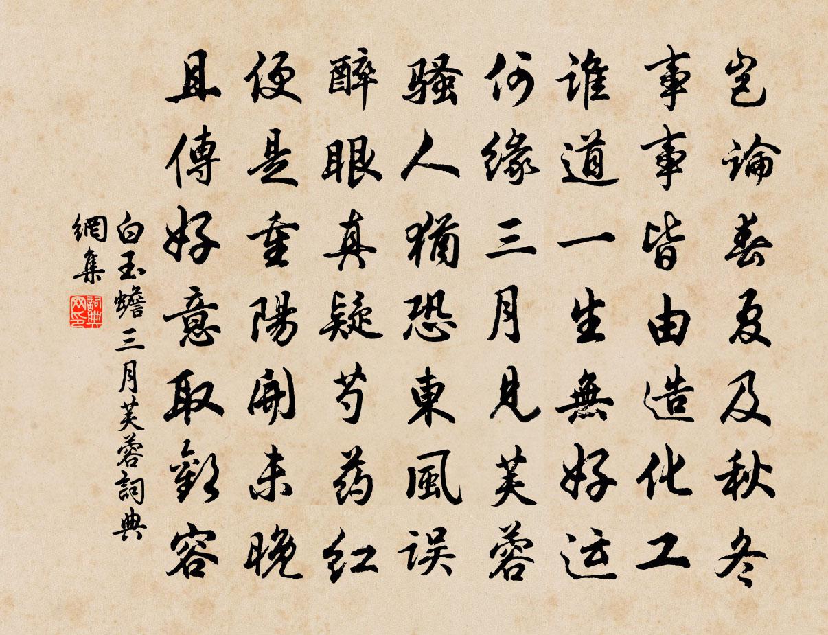 詩詞名句歷史字典書法欣賞書法字典國語詞典說文解字康熙字典古漢語字典標 題 作 者 詩 句 三月芙蓉作者:白玉蟾 朝代:宋代三月芙蓉原文豈論春夏及秋冬,事事皆由造化工。誰道一生無好運,何緣三月見芙蓉。騷人猶恐東風誤,醉眼真疑芍藥紅。便是重陽開未晚,且傳好意取歡容。詩詞問答問:三月芙蓉的作者是誰?答:白玉蟾問:三月芙蓉寫於哪個朝代?答:宋代問:三月芙蓉是什麼體裁?答:七律白玉蟾三月芙蓉書法欣賞三月芙蓉書法作品詩詞推薦鹿泉成士王覺民頗有杜子美不徹之惱和東坡憶王之道〔宋代〕鹿泉居士身若槁,不慣看花夢顛倒。桐廬有客燕新錯,妄托嬌痴重伊惱。凍雲垂地雪欲落,斷雁叫群天尚早。一枝句伊夢昌〔唐代〕惟有松杉空弄月,更無雲鶴暗迷人。(題攸縣司空觀仙台)露凝金盞滴殘酒,檀點佳人噴異香。(題黃蜀葵)又三絕文天祥〔宋代〕人間萬事轉頭空,皂帽飄蕭一病翁。不學孟嘉狂落魄,故將白髮向西風。和陳傳道秋日十詠之四秋曉賀鑄〔宋代〕未卷半簾霜,猶疑在庭月。倚樹汲清泉,疏風獵華發。好事近(以梅為壽)佚名〔宋代〕昨夜探寒梅,先報訊息。天遣花神妝點,襯賢侯清白。試將玉蕊比修齡,算枝頭千百。更有不凡風味,付調羹仙客題時覺寺在在堂十二首舒坦〔宋代〕六國干戈擅霸圖,先生談笑有工夫。不知當日縱橫夢,曾識水聲山色無。寄湖上黃教葉紹翁〔宋代〕門幽緣近寺,官冷未成家。樓借山為障,風吹水作花。詩方酬北磵,經又節南華。聞說新雛鳳,賓來解喚茶。借明秀軒韻送趙推入幕二首劉宰〔宋代〕七澤波濤筆下吞,相逢曉日上天門。祗今出處難同調,慚愧高軒幾訪存。華山慶雲見佚名〔唐代〕聖主祠名岳,高風發慶雲。金柯初繚繞,玉葉漸氛氳。氣色含珠日,光明吐翠雰。依稀來鶴態,仿佛列仙群。萬樹雷峰釋文珦〔宋代〕不定似飛蓬,還來宿此峰。霜斯孤客枕,風亂四山鍾。好夢如冰薄,歸心與酒濃。舊房誰占住,門有最長松。送范少約二首項安世〔宋代〕高低互騰凌,先後更唱和。密密驕有餘,斜斜困無奈。翔空久未集,到地期不墮。雲惜暗遮圍,風欺惡掀簸。林光十詠 領邊繡沈約〔南北朝〕縴手制新奇。剌作可憐儀。縈絲飛鳳子。結縷坐花兒。不聲如動吹。無風自褭枝。麗色儻未歇。聊承雲鬢垂。梅四首劉鑒〔宋代〕除香除影賦梅花,方許詩中擅作家。怕俗似嫌羔作酒,高人頗稱雪煎茶。參橫屋角霜初人,人倚闌乾月欲斜。夜冷寄兩道原詩二首楊維楨〔元代〕信公令住竹林寺,曾寄吳鹽道起居。戴家泊上收秣米,凌湖門外好鱸魚。緇衣宰相日給告,清客道人新著書。若問送張端明赴召周必大〔宋代〕家傳圯上一編書,二紀論思只緒餘。此去籌帷方倚重,赤松那得便從渠。和張功父梅詩十絕句楊萬里〔宋代〕淡淡梅花不要裝,真珠樓閣水精鄉。騷人詞客猶愁冷,紫蝶黃蜂更敢忙。勞畲耕范成大〔宋代〕峽農生甚艱,斫畲大山巔。赤埴無土膏,三刀財一田。頗具穴居智,占雨先燎原。雨來亟下種,不爾生不蕃。麥穗趙賓暘唐師善見和涌金城望次韻五首方回〔宋代〕猶存徑菊已無荷,城上霜風疋馬過。廝養前行疑叵可,徼巡側睨暗誰何。感時詩客推敲苦,逃俗編氓剃落多。只為通天岩歐演〔宋代〕每逢勝境便留神,一路桃花別漢秦。繞剎苔封高士蹟,臨溪客問野人津。紆迴松竹看非俗,羅列山川識有真。踏遍呈李景山華岳〔宋代〕居靜心嘗樂,愁多鬢不禁。買舟和月載,把酒對花斟。白水有深淺,青山無古今。從茲得真趣,消盡利名心。名句推薦都雲作者痴,誰解其中味。曹雪芹《紅樓夢·第一回》 柏台霜威寒逼人,熱海炎氣為之薄。岑參《熱海行送崔侍御還京》 野曠天低樹,江清月近人。孟浩然《宿建德江》 不見襄陽登覽,磨滅遊人無數,遺恨黯難收。陸游《水調歌頭·多景樓》 黑髮不知勤學早,轉眼便是白頭翁。佚名《增廣賢文·上集》 傷心故人去後,冷落新詩。晁沖之《漢宮春·梅》 數聲風笛離亭晚,君向瀟湘我向秦。鄭谷《淮上與友人別》 誰謂傷心畫不成,畫人心逐世人情。韋莊《金陵圖》 泉聲咽危石,日色冷青松。王維《過香積寺》 荊吳相接水為鄉,君去春江正淼茫。孟浩然《送杜十四之江南 / 送杜晃進士之東吳》