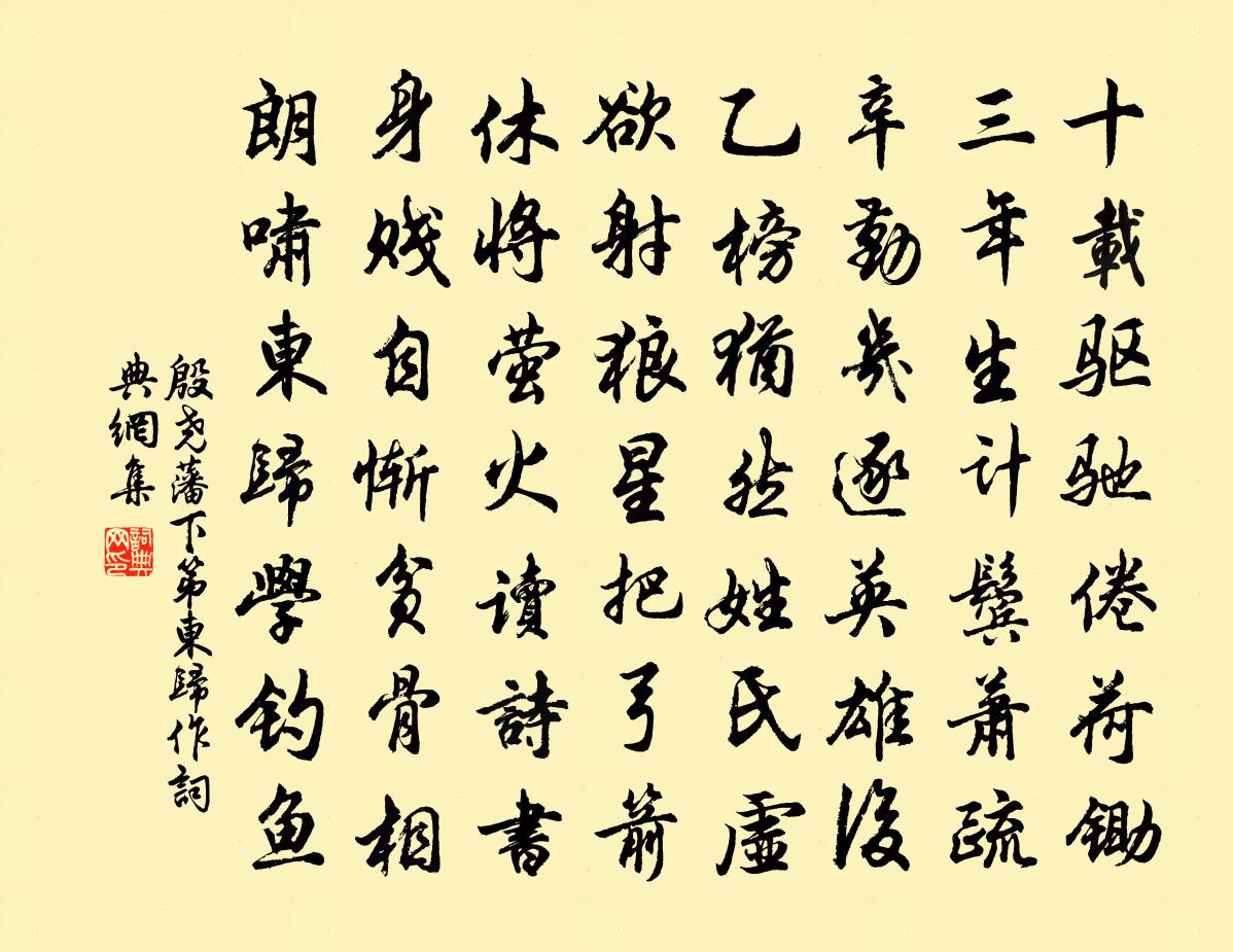 詩詞名句歷史字典書法欣賞書法字典國語詞典說文解字康熙字典古漢語字典標 題 作 者 詩 句 下第東歸作作者:殷堯藩 朝代:唐代下第東歸作原文十載驅馳倦荷鋤,三年生計鬢蕭疏。辛勤幾逐英雄後,乙榜猶然姓氏虛。欲射狼星把弓箭,休將螢火讀詩書。身賤自慚貧骨相,朗嘯東歸學釣魚。詩詞問答問:下第東歸作的作者是誰?答:殷堯藩問:下第東歸作寫於哪個朝代?答:唐代問:下第東歸作是什麼體裁?答:七律殷堯藩下第東歸作書法欣賞下第東歸作書法作品注釋全唐詩:卷492-31詩詞推薦次韻何伯溫三首洪咨夔〔宋代〕出門夾徑松,春盡花滿林。毿毿塵尾黃,裊裊雲氣深。仙人左元放,騎龍夜相尋。飯我花杪露,實腹虛其心。剡溪竹紙三首曾幾〔宋代〕會稽竹箭東南美,來伴陶泓住管城。可惜不逢韓吏部,相從但說楮先生。春日田園雜興五首陳希聲〔宋代〕梨鑰彷野沸耕農,血吻鵑聲一樹紅。畦矗秧針青剡剡,隴翻麥浪翠芃芃。難鳴畫寂花村雨,蛤吠朝寒草岸風。溪外贈溧陽宋少府陟李白〔唐代〕李斯未相秦,且逐東門兔。宋玉事襄王,能為高唐賦。常聞綠水曲,忽此相逢遇。掃灑青天開,豁然披雲霧。葳蕤夏日江行余靖〔宋代〕解組趨宸闕,扁舟泛江練。健艫雁齊鳴,輕帆雲一片。水闊煙難收,雨昏風易轉。曲浦逗留多,修程夢魂倦。舟子古南苑馬之純〔宋代〕常時南苑最新奇,勝似其他東復西。多少園亭行不到,從橫石徑動成迷。香風十里荷花盪,翠影千行柳樹堤。伊被又代孫檢討作二首司馬光〔宋代〕湖澄翠岫孤,勝地古東吳。氣象常時秀,英靈何世無。金閨演王綍,玉帳綰兵符。煒燁鄉曲,從茲益重儒。有警辭晃逈〔宋代〕圖上華夷能盡記,未始經行一步地。博聞強識總周知,心不能行亦如是。露坐陸游〔宋代〕落月無留照,殘河亦已傾。墬枝雙鵲裊,黏草一螢明。暑令忘三伏,涼颼逼五更。為憐荷瀉露,故起繞池行。題尹商卿自信齋魏了翁〔宋代〕虛靈一寸心,至遠而至近。真能位天地,信可為堯舜。不以利慾熏,則為羽俗焮。怗怗弄文墨,若若夸綬印。聖賢緣識宋太宗〔宋代〕麗句冥搜得,灰心大道尊。從人言澹薄,古僻是玄門。和艮齋贈輪道者韻袁說友〔宋代〕血指濡毫字字工,赤髭白足會常同。從今定了沙彌相,總為先生一語中。感詠十解寄呈楊安撫白玉蟾〔宋代〕伊昔為句漏,其心在丹砂。丹成遽仙去,不且判鶯花。車駕過重華宮和陳止齋韻袁說友〔宋代〕曉到觚稜簇仗齋,千官星拱馬無嘶。清塵警蹕來宮闕,夾道觀聲浹耄倪。孝治未應夸鄭隧,皇威今已竦邊鼙。小臣十二月大雨裘萬頃〔宋代〕一冬都無五日寒,赤日杲杲后土乾。水官丐歸帝弗許,詰朝不雨吾戮汝。斯須便放大瓢傾,一洗萬里塵埃清。不妨雪中登姑蘇台楊萬里〔宋代〕我亦閒來散病身,遊人不用避車塵。插天四塔雲中出,隔水諸峰雪後新。道是遠瞻三百里,如何不見六千人。吳亡句歐陽景〔宋代〕清明時節正稼芳。次韻張守塗中逢節二首陳造〔宋代〕塗中歲遒盡,江影暮澄凝。柏酒惟宗武,河梁似李陵。問津田叟傲,捩柂長年能。系纜才沙觜,人家已上燈。次韻曾丈探梅白玉蟾〔宋代〕夜半風吹雪滿階,頭巾不裹把窗開。南枝暗就江頭髮,一點香從月下來。世事陸游〔宋代〕世事說來猶可厭,宦情夢裡亦應無。山林已結三生願,朝市誰非九折途?醉舞杯盤無藉在,狂吟風月不枝梧。何人名句推薦七夕今宵看碧霄,牽牛織女渡河橋。林傑《乞巧》 江河之水,非一水之源也;千鎰之裘,非一狐之白也。墨子《墨子·01章 親士》 造物無言卻有情,每於寒盡覺春生。張維屏《新雷》 名豈文章著,官應老病休。杜甫《旅夜書懷》 人見利而不見害,魚見食而不見鉤。李汝珍《鏡花緣·第九十二回》 微雨眾卉新,一雷驚蟄始。韋應物《觀田家》 疏星淡月鞦韆院,愁雲恨雨芙蓉面。張可久《塞鴻秋·春情》 疏條交映,有時見日。吳均《與朱元思書》 江水漾西風,江花脫晚紅。王安石《江上》 自重者然後人重,人輕者便是自輕。佚名《增廣賢文·下集》