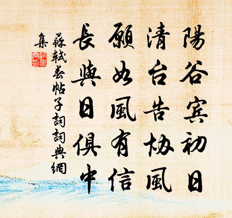 詩詞名句歷史字典書法欣賞書法字典國語詞典說文解字康熙字典古漢語字典標 題 作 者 詩 句 春帖子詞作者:蘇軾 朝代:宋代春帖子詞原文陽穀賓初日,清台告協風。願如風有信,長與日俱中。詩詞問答問:春帖子詞的作者是誰?答:蘇軾問:春帖子詞寫於哪個朝代?答:宋代問:蘇軾的名句有哪些?答:蘇軾名句大全蘇軾春帖子詞書法欣賞春帖子詞書法作品詩詞推薦自楞伽寺晨起泛舟,道中有懷許渾〔唐代〕碧樹蒼蒼茂苑東,佳期迢遞路何窮。一聲山鳥曙雲外,萬點水螢秋草中。門掩竹齋微有月,棹移蘭渚淡無風。欲知別王監簿林景熙〔宋代〕玄發相逢雪滿顛,一番欲別一悽然。離亭落日馬嘶渡,舊國西風入喚船。湖海已空彈鋏夢,山林猶有著書年。蓬萊頌古十一首釋普濟〔宋代〕肩擔口叫,曉夜撐船。道路各別,養家一般。題觀城驛壁李若水〔宋代〕半篙寒碧秋垂釣,一笛疏風夜倚樓。多少巫山舊家事,老來分付與東流。送李季允赴召魏了翁〔宋代〕是是非非各有心,以同為愛異為憎。誓餚秦穆旋修怨,在莒薺威卒震矜。事急求言常易入,位高從諫最難能。原公漁家傲引(破子)洪适〔宋代〕漁父飲時花作蔭。羹魚煮蟹無它品。世代太平除酒禁。酒父飲。綠蓑藉地勝如錦。漁父醉時收釣餌。魚梁セ翅閒烏水竹野十詠盟鷗葉茵〔宋代〕同此江湖心,有盟非知已。我亦畏機人,莫入驚波裹。西河 和王潛齋韻曹豳〔宋代〕今日書事。何人書弄得如此書。漫漫白書骨蔽川原,恨何日已。關河萬里寂無煙,月明空照蘆葦。謾哀痛,無及矣武林書事九首方回〔宋代〕狐狸夜號歌舞地,荊棘非復向朱門。有人政自不可測,一斛檳榔五百褌。留題澹岩張滉〔宋代〕天然一穴透融光,廣闊能容萬頃篁。翻念塵寰苦炎熱,人人付與一襟涼。贈戴彥衡吳可〔宋代〕病來謾喜折釵股,老去尚懷雙脊龍。他日扁舟會乘興,摩挲圭璧小從容。木蘭花慢(為靜春賦)張炎〔宋代〕幽棲身懶動,邃庭悄、日偏長。甚不隱山林,不喧車馬,不斷生香。澄心淡然止水,笑東風、引得落花忙。慵對魚答韓使同在邊陳子昂〔唐代〕漢家失中策,胡馬屢南驅。聞詔安邊使,曾是故人謨。廢書悵懷古,負劍許良圖。出關歲方晏,乘障日多虞。虜入和見夢張耒〔宋代〕青山將白髮,奔走倦埃塵。與物拙難合,惟君心獨親。相思成夜夢,得句寄游鱗。未得親談笑,書來莫厭頻。題鶴林宮江南劍客〔宋代〕暑往寒來造化間,誰將大藥駐朱顏。騎鯨客去天連水,跨鶴人歸月滿山。爐火焰燒 * 境,劍峰割斷利名關。煙花石刻詩佚名〔宋代〕雨滴空階曉,無心換心香。井桐花落盡,一半在銀床。金沙台蘇轍〔宋代〕待罪東軒僅兩秋,搉酤事了且夷猶。獎崇善類詢輿論,過訪仁賢棹小舟。契合通家心異姓,情敦同氣邁凡流。金沙通禪客進納釋智愚〔宋代〕衲僧肘後個靈符,誰管從前有與無。片板不能擔到底,又來依樣畫葫蘆。戲贈陸游〔宋代〕簾幕陰陰晝漏遲,鵝黃雪白絡新絲。只應笑殺東鄰女,不見鞦韆到拆時。秋懷十首韓元吉〔宋代〕閉戶跏趺意已清,爐香燒盡一燈明。空庭葉落知多少,一任西風百種聲。名句推薦秋冬雪月,千里一色;蘇軾《放鶴亭記》 因可勢,求易道。韓非及後人《韓非子·觀行》 故不登高山,不知天之高也;不臨深溪,不知地之厚也;荀子《勸學》 白日來深殿,青雲滿後塵杜甫《寄李十二白二十韻》 夜發清溪向三峽,思君不見下渝州。李白《峨眉山月歌》 非得賢之難,用 之難。非用之難,信之難。房玄齡《晉書·列傳·第二十二章》 過五關,斬六將馮夢龍《喻世明言·卷三十一》 錦里開芳宴,蘭缸艷早年。盧照鄰《十五夜觀燈》 靜夜沉沉,浮光靄靄,冷浸溶溶月。丘處機《無俗念·靈虛宮梨花詞》 笑指吾廬何處是?一池荷葉小橋橫。陳繼儒《浣溪沙·初夏夜飲歸》