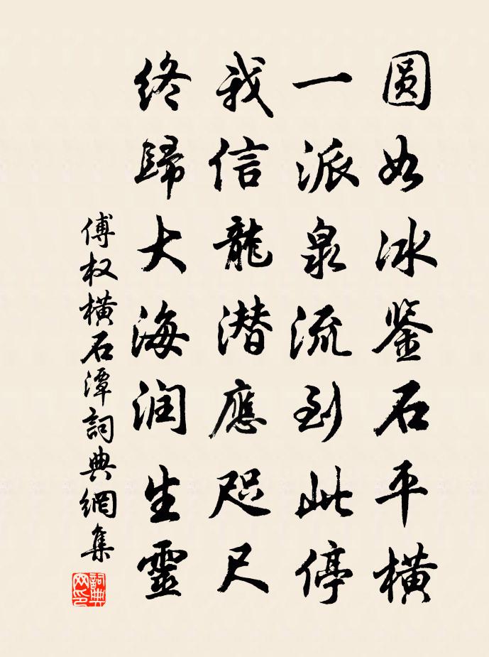 詩詞名句歷史字典書法欣賞書法字典國語詞典說文解字康熙字典古漢語字典標 題 作 者 詩 句 橫石潭作者:傅權 朝代:宋代橫石潭原文圓如冰鑒石平橫,一派泉流到此停。我信龍潛應咫尺,終歸大海潤生靈。詩詞問答問:橫石潭的作者是誰?答:傅權問:橫石潭寫於哪個朝代?答:宋代傅權橫石潭書法欣賞橫石潭書法作品詩詞推薦冬至小雨踏泥出謁葛立方〔宋代〕葭灰動玉琯,絲雨慘良辰。幽巷未通屐,高人猶墊巾。底忙持爵里,沖冷候比鄰。猶勝邯鄲驛,燈前影伴身。軍中樂二首王鎡〔宋代〕靼衫閃色織雲羅,白馬金鞍載翠娥。把盞醉歸營月上,胡琴捍撥採茶歌。捉月仙華岳〔宋代〕纜解西風拍岸顛,雁拖秋色上航船。掛帆未作乘風客,舉棹先驚捉月仙。楚些有淵心石殞,賀狂無井眼花眠。殷勤楊梅陳景沂〔宋代〕紅實綴青枝,爛漫照前塢。不及杏每時,林間有仙虎。桂枝香 楊潤之得家書吳景奎〔元代〕霜凝翠閣。漫獨翦燈花,斜照羅幕。點檢芳心舊事,幾多成錯。清愁正爾無聊賴,聽梅花、數聲殘角。小窗風細,香港感懷十首黃遵憲〔清代〕指北黃龍飲,從西天馬來。飛輪齊鼓浪,祝炮日鳴雷。中外通喉舌,縱橫積貨財。登高遙望海,大地故恢恢。次子中兄韻三首周必大〔宋代〕讀罷新詩暖似春,手搖食指舌生津。平生口腹何曾計,自笑如今枉累人。遣懷貢師泰〔元代〕日入柳風息,月上花露多。東軒頗幽敞,夜靜時一過。鳥散庭中樹,蟲鳴階下莎。北斗何低昂,疏星沒橫河。獨賞醜奴兒/採桑子 尋常中酒扶頭後辛棄疾〔宋代〕尋常中酒扶頭後,歌舞支持。歌舞支持。誰把新詞喚住伊。臨歧也有旁人笑,笑己爭知。笑己爭知。明月樓空燕子又和答雲岩李曾伯〔宋代〕翠箔香銷昨夢回,驚殘樓角動寒梅。夜來頗覺風霜薄,問訊南枝開未開。秦樓月/憶秦娥陳三聘〔宋代〕青膏集。新雷忽起龍蛇蟄。龍蛇蟄。柳塘風快,水流聲急。傷心有淚憑誰浥。尊前容易青衫濕。青衫濕。渡頭人去次韻袁起岩許浦按教水軍二絕句范成大〔宋代〕戈船戰棹疾如飛,莫遣潮沙淀海湄。草奏直須窮利病,奉身從此系安危。古航釋智朋〔宋代〕片帆不是等閒開,衝破洪波白浪堆。眨上眉毛千萬劫,有誰洗腳上船來。偈頌一百四十一首釋師範〔宋代〕雲門一曲,從來無譜。韻出五音,調高千古。就中妙旨許誰知,幾擬黃金鑄子期。答江虞仲機宜歸語鄭剛中〔宋代〕侯公說行高祖迎,趙璧在懷出秦庭。白首屬國還漢旌,印綬累累妻嫂驚。疏家叔侄辭公卿,彭澤柳外陶淵明。又如橫池蘇軾〔宋代〕明月入我池,皎皎鋪紵縞。何日變成緇?太玄吾懶草。百憂方回〔宋代〕病骨真如削,耕疇已盡捐。終隨萬形弊,何用百憂煎。常肯事如意,恐無詩可傳。屈伸判成敗,吾亦聽之天。重疊金(春思)趙善扛〔宋代〕玉關芳草黏天碧。春風萬里思行客。騎馬向風嘶。道歸猶未歸。南雲新有雁。望眼愁邊斷。膏沐為誰容。倚樓煙雨比干墓汪遵〔唐代〕國亂時危道不行,忠賢諫死勝謀生。一沉冤骨千年後,壟水雖平恨未平。贈喻景山陳宓〔宋代〕去時恨輕分,歸路喜忽值。如何七八月,兩作別離味。方沖臘雪還,可待秋風至。讀書我無訣,須君授奇秘。名句推薦爾來從軍天漢濱,南山曉雪玉嶙峋。陸游《金錯刀行》 懷舊空吟聞笛賦,到鄉翻似爛柯人。劉禹錫《酬樂天揚州初逢席上見贈》 辛勤好似蠶成繭,繭老成絲蠶命休。馮夢龍《醒世恆言·卷三十五》 樹大招風風撼樹,人為名高名喪人。吳承恩《西遊記·第三十三回》 草木雖無情,因依尚可生李白《樹中草》 恐鳳靴,挑菜歸來,萬一灞橋相見。史達祖《東風第一枝·詠春雪》 風雨牢愁無著處,那更寒蛩四壁。文天祥《酹江月·和友驛中言別》 盛而不驕,勞而不矜其功。左丘明《國語·越語·范蠡進諫勾踐持盈定傾節事》 無計奈情何,且醉金杯酒。晏幾道《生查子·輕勻兩臉花》 獨樹沙邊人跡稀,欲行愁遠暮鍾時韋應物《賦得沙際路送從叔象》