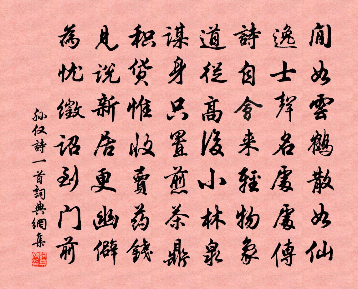 詩詞名句歷史字典書法欣賞書法字典國語詞典說文解字康熙字典古漢語字典標 題 作 者 詩 句 詩一首作者:孫僅 朝代:宋代詩一首原文閒如雲鶴散如仙,逸士聲名處處傳。詩自會來輕物象,道從高后小林泉。謀身只置煎茶鼎,積貨惟收賣藥錢。見說新居更幽僻,為憂徵詔到門前。詩詞問答問:詩一首的作者是誰?答:孫僅問:詩一首寫於哪個朝代?答:宋代孫僅詩一首書法欣賞詩一首書法作品詩詞推薦楓木塢楊蟠〔宋代〕太平雲外客,行采老山中。莫嘆秋霜早,君看世上楓。清心鏡 棄家馬鈺〔元代〕解名韁,敲利鑽。愛海恩山,一齊識破。棄家緣、路遠三千,似孤雲野鶴。有勝心,忒煞大。今日對眾,須當說過七十翁吟七言十絕方回〔宋代〕少陵詩詫古來希,老病餘生曷不歸。不信神仙不信佛,死時惟裹破深衣。公說再和並前十五篇輒複課六章用足前篇之闕蘇頌〔宋代〕皇華幾月案鹽池,鉤按從來未有知。隱伏無由逃計最,勤勞長足儆官師。事逢錯節皆投刃,利析秋毫類算棋。他日玉真台趙彥端〔宋代〕春色無窮巷,農鄉有太和。病嗟聞道晚,貧喜得閒多。草徑供徐步,鄰花獲屢過。層台宜抗榭,誰與 * 波。清涼國師真贊黃庭堅〔宋代〕寶月清涼,寂照法界。以沙門相,藏世間解。谷響入耳,性不可為。青蓮出水,深不可窺。萬象紛披,花開古錦。水亭陸游〔宋代〕莫道山翁老病侵,靜中理得舊傳琴。朝來有喜君知否:雨展芭蕉二尺心。贈吳氏甥二首袁燮〔宋代〕農夫力耕耘,歲功必倍疏。吾儒用心苦,學業亦有秋。聖賢有遺訓,好古敏以求。韋編至三絕,發憤窮深幽。寢食舊宮人張籍〔唐代〕歌舞梁州女,歸時白髮生。全家沒蕃地,無處問鄉程。宮錦不傳樣,御香空記名。一身難自說,愁逐路人行。過霸東石橋,桐花盡落楊萬里〔宋代〕老去能逢幾個春,今年春事不關人。紅千紫百何曾夢,厭尾桐花也作塵。送妻兄任以道赴房州竹山尉四首項安世〔宋代〕山東貴公孫,門戶何巍巍。秦川列冠蓋,蜀道羅旌麾。亭亭白玉樹,煜煜黃金芝。產於階庭間,不種而自奇。相送聯句何遜〔南北朝〕寸陰常可惜。別至倍傷神。子瞻天際水。予望路中塵。憫憫歧路側。去去平生親。一朝事千里。流涕向三春。鄴都懷古劉滄〔唐代〕昔時霸業何蕭索,古木唯多鳥雀聲。芳草自生宮殿處,牧童誰識帝王城。殘春楊柳長川迥,落日蒹葭遠水平。一望錢張宣慰三首王義山〔宋代〕貴介而能大耐官,留心翰墨此為難。龍蛇現影筆端活,風雨驚人紙上寒。教子一經文墨續,讀書萬卷夜燈殘。一門題羅溪李店二首楊萬里〔宋代〕棟宇整齊窗戶明,一峰對面一江橫。下程長是無佳店,佳店偏當未下程。乙丑十一月十一日決獄次日迎帥舟中賦二詩首曾豐〔宋代〕滯舟推若泥,逆水去如還。已歷三辰次,才行十裡間。千斯吾命薄,獨爾破天慳。所賴聖賢事,其初不厭艱。送張淑歸覲叔父李端〔唐代〕日慘長亭暮,天高大澤閒。風中聞草木,雪裡見江山。馬向塞雲去,人隨古道還。阮家今夜樂,應在竹林間。浣溪沙晏幾道〔宋代〕翠閣朱欄倚處危,夜涼閒捻彩簫吹。曲中雙鳳已分飛。綠酒細傾消別恨,紅箋小寫問歸期。月華風意似當時。黑漆弩 曲山亦作言懷一詞,遂繼韻戲贈王惲〔元代〕休官彭澤居閒久。縱清苦、愛吾子能守。幸年來、所事消磨,只有苦吟甘酒。平生道在初心,富貴浮云何有。恐此送姚評事入蜀各賦一物得卜肆張九齡〔唐代〕蜀嚴化已久,沉冥空所思。嘗聞賣卜處,猶憶下簾時。驅傳應經此,懷賢倘問之。歸來說往事,歷歷偶心期。名句推薦經年塵土滿征衣,特特尋芳上翠微。岳飛《池州翠微亭》 人有逆天之時,天無絕人之路。馮夢龍《醒世恆言·卷三十二》 夢繞神州路。張元乾《賀新郎·送胡邦衡待制赴新州》 貧賤之知不可忘,糟糠之妻不下堂。范曄《後漢書·列傳·伏侯宋蔡馮趙牟韋列傳》 前度綠陰載酒,枝頭色比舞裙同。王沂孫《慶清朝·榴花》 知者行之始。行者知之成。王陽明《傳習錄·卷上·門人陸澄錄》 低花樹映小妝樓,春入眉心兩點愁。白居易《春詞》 桃李風前多嫵媚,楊柳更溫柔。辛棄疾《武陵春·桃李風前多嫵媚》 陽春布德澤,萬物生光輝。佚名《長歌行》 山荒聊可田,錢鎛還易辦。王守仁《謫居糧絕請學於農將田南山詠言寄懷》