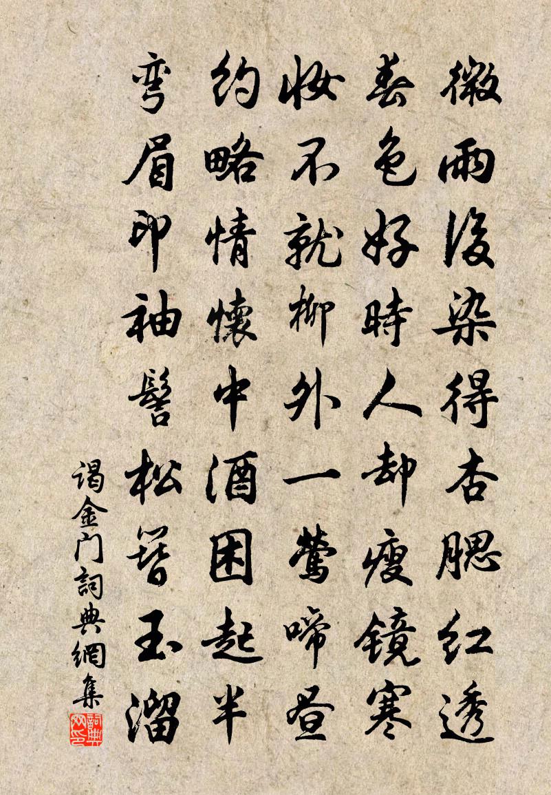 微雨後。染得杏腮紅透。春色好時人卻瘦。鏡寒妝不就。